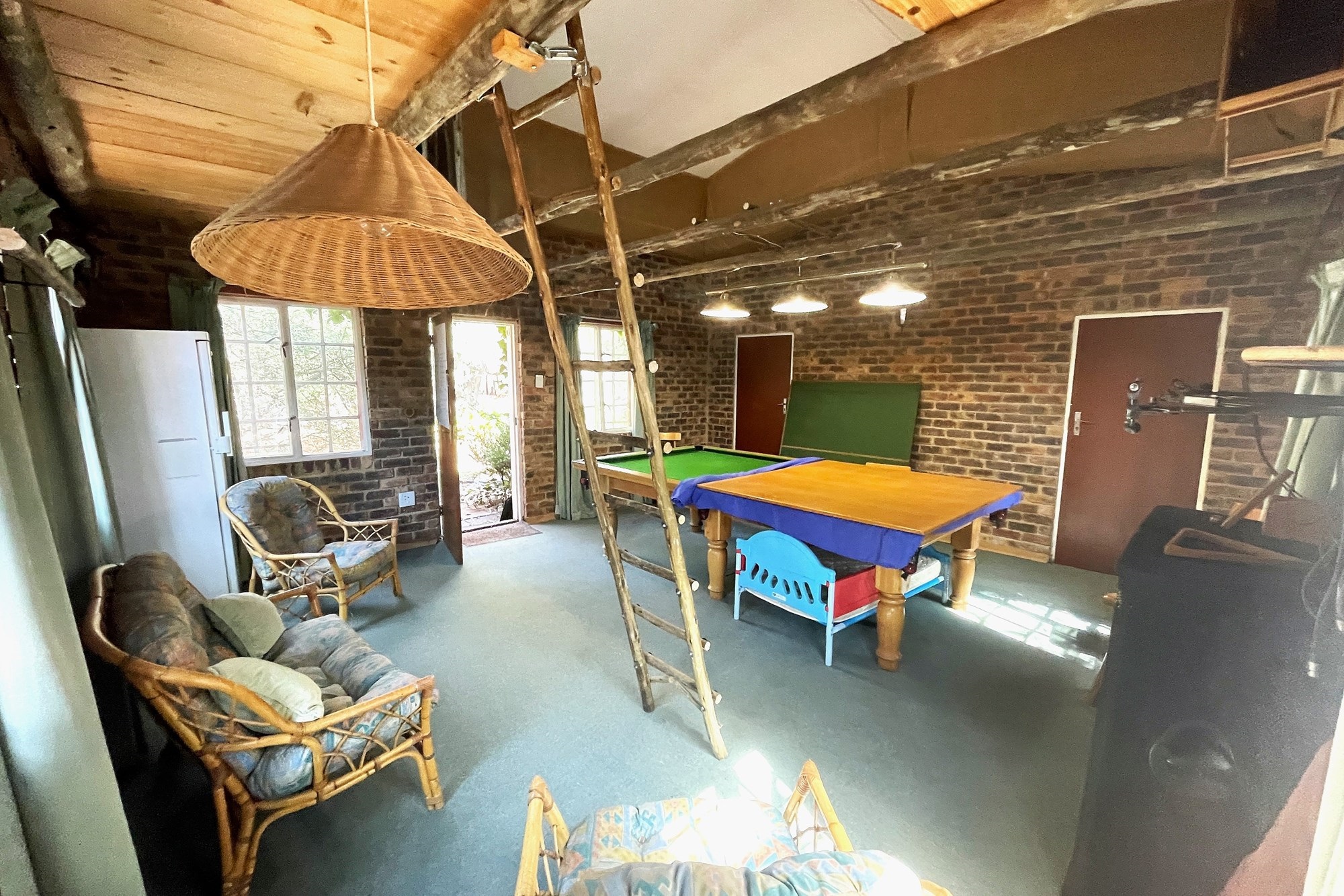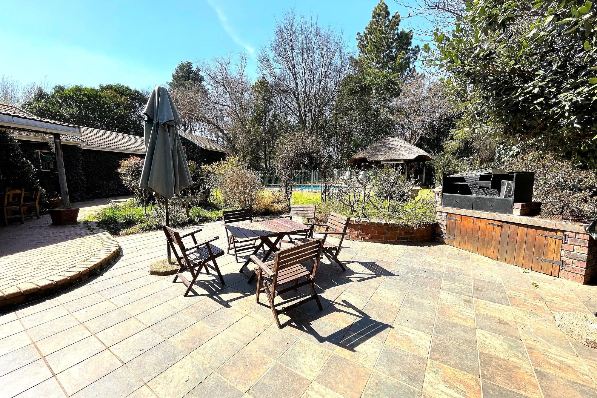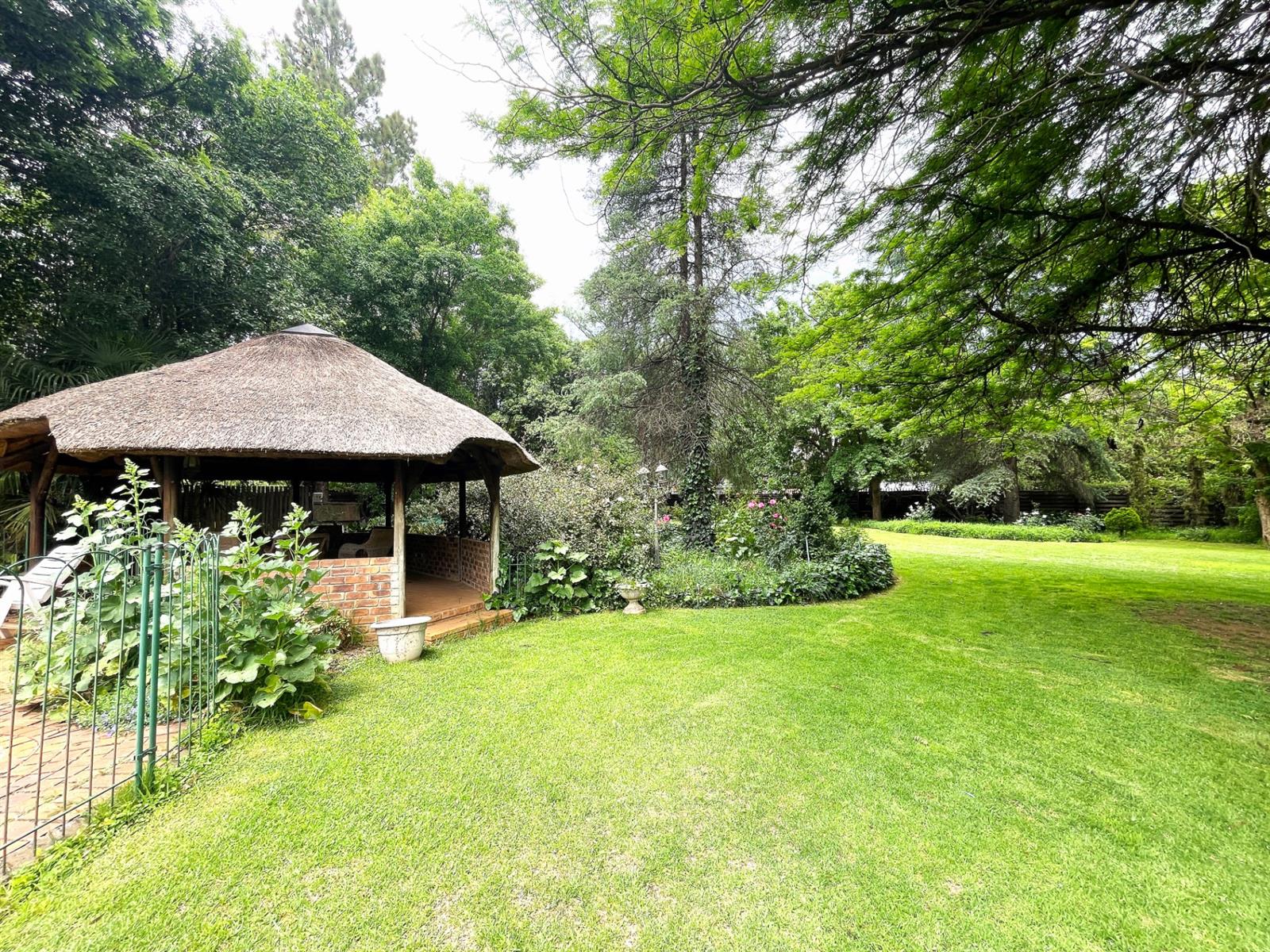 A 5000 litre Jojo storage tank, very strong borehole feeding 80 irrigation points on a computerized system, 10 off high-spec solar panels feeding a 5kW lithium battery through a 15 kW inverter, solar geyser, 8 camera CCTV surveillance system, alarm system, security gates, Trellidor gates inside the home, electrics and lights in the thatched lapa, Fibre-ready, 3 wendy house/storage rooms, one steel store, multi-level concrete water feature, two septic tanks, additional grey-water French drain and full set of approved municipal plans.