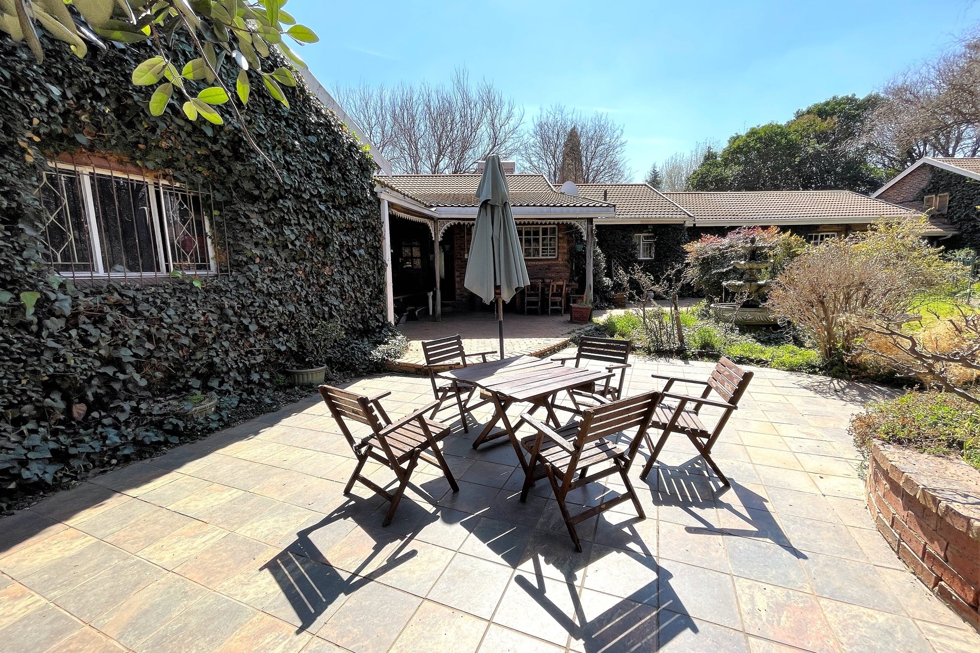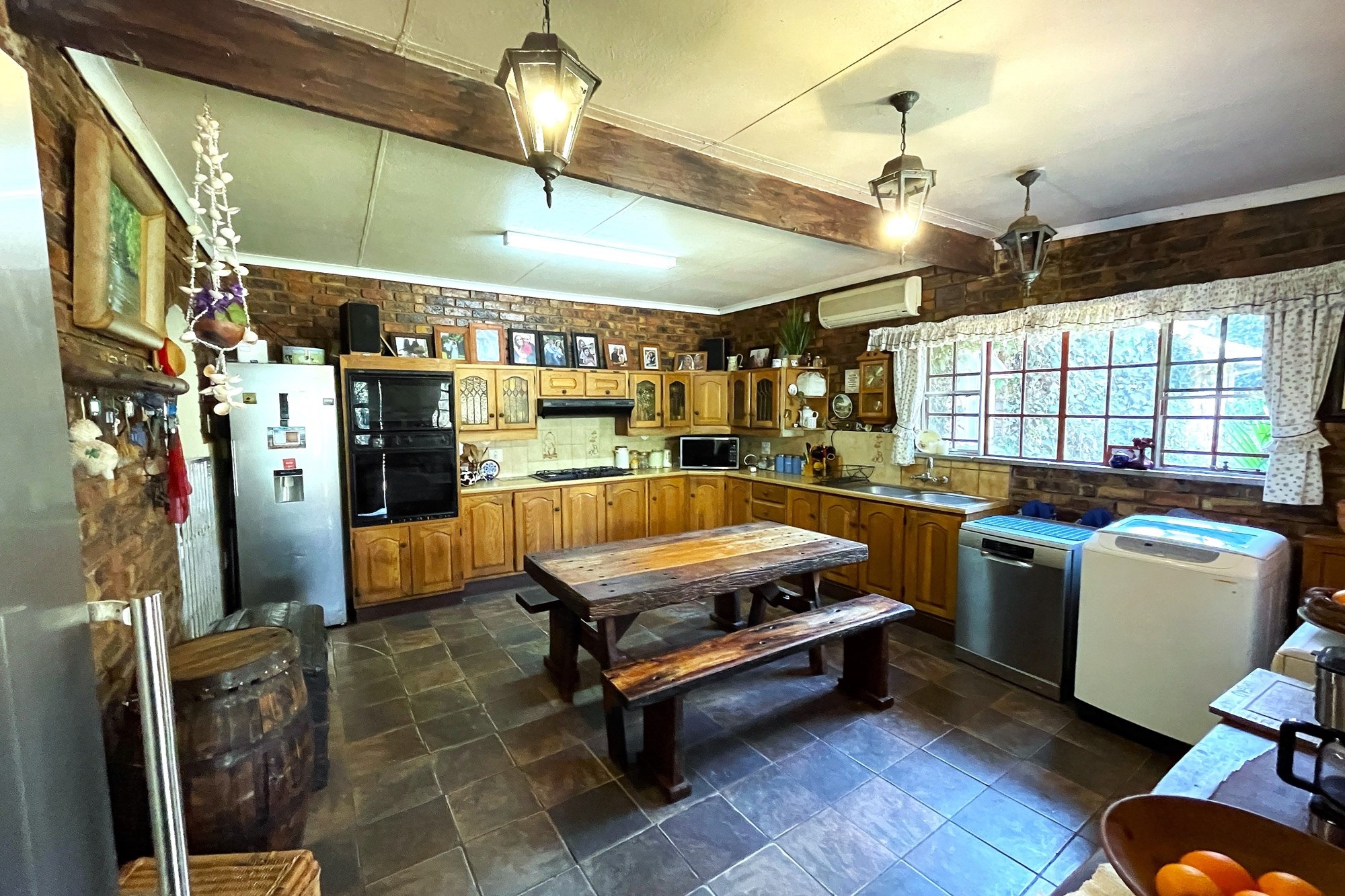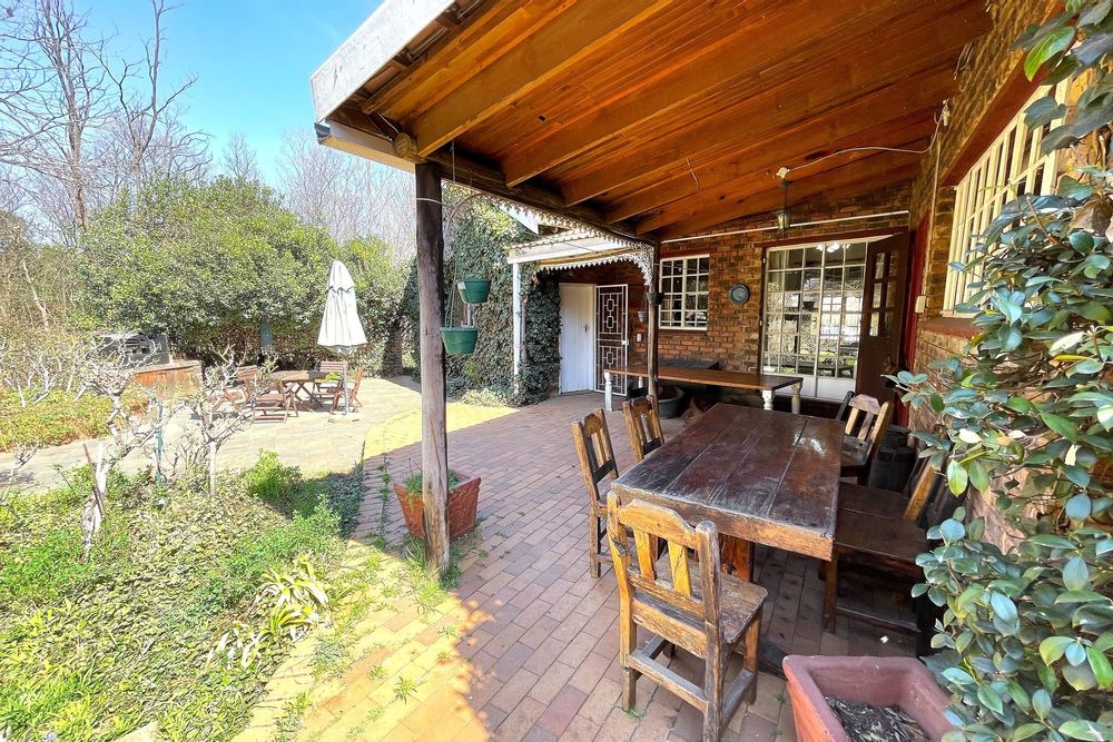 A 5000 litre Jojo storage tank, very strong borehole feeding 80 irrigation points on a computerized system, 10 off high-spec solar panels feeding a 5kW lithium battery through a 15 kW inverter, solar geyser, 8 camera CCTV surveillance system, alarm system, security gates, Trellidor gates inside the home, electrics and lights in the thatched lapa, Fibre-ready, 3 wendy house/storage rooms, one steel store, multi-level concrete water feature, two septic tanks, additional grey-water French drain and full set of approved municipal plans.
