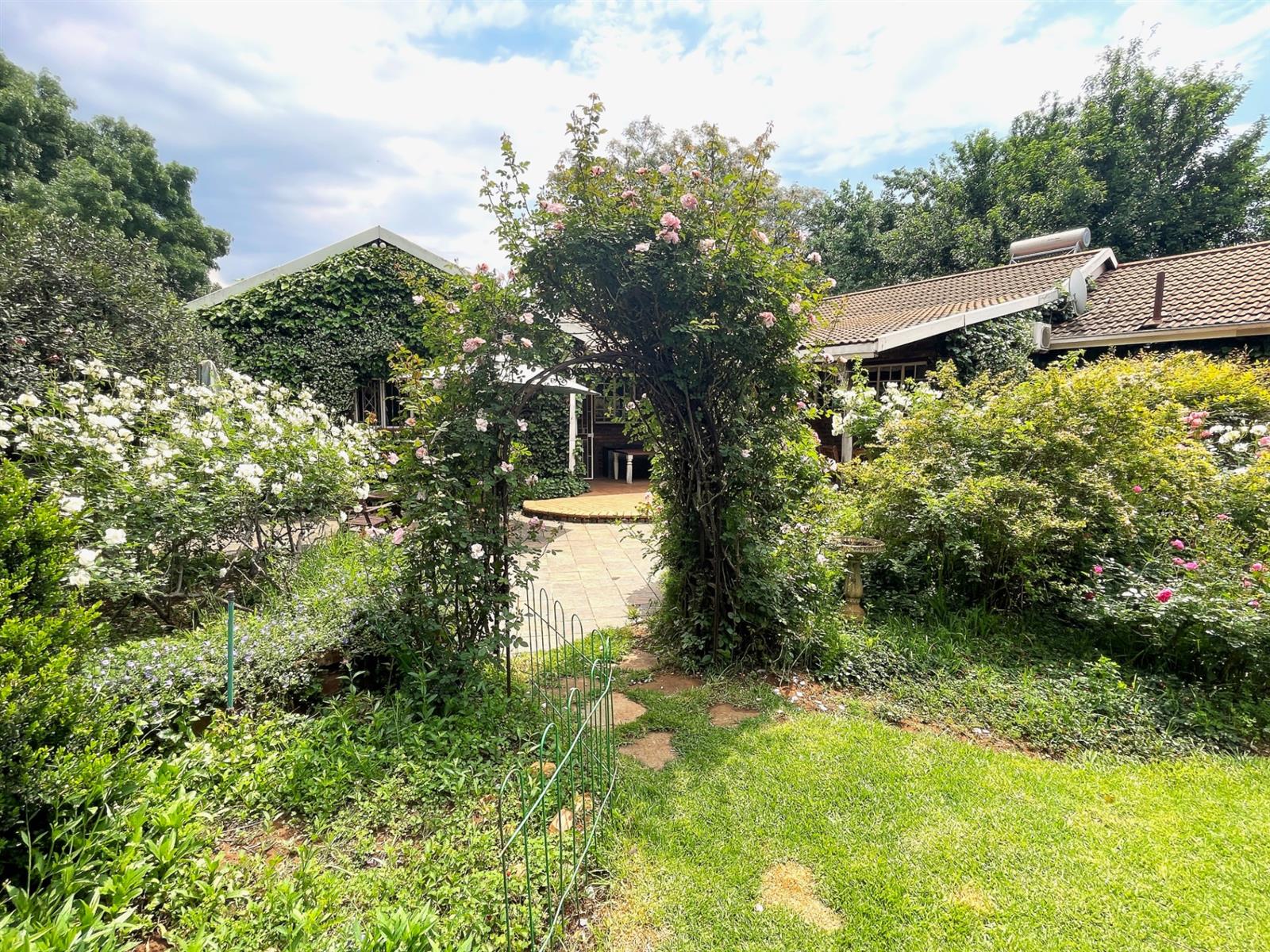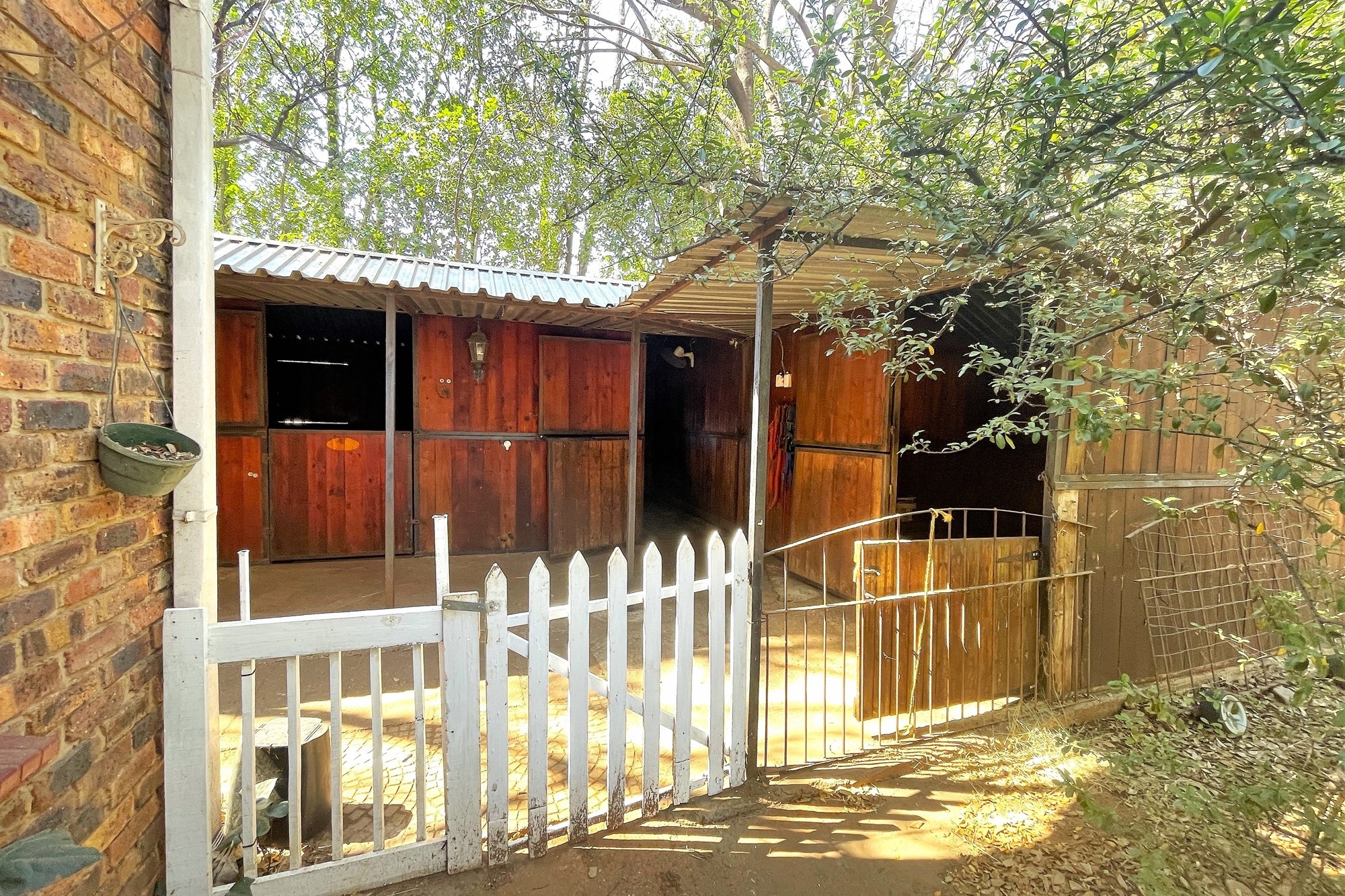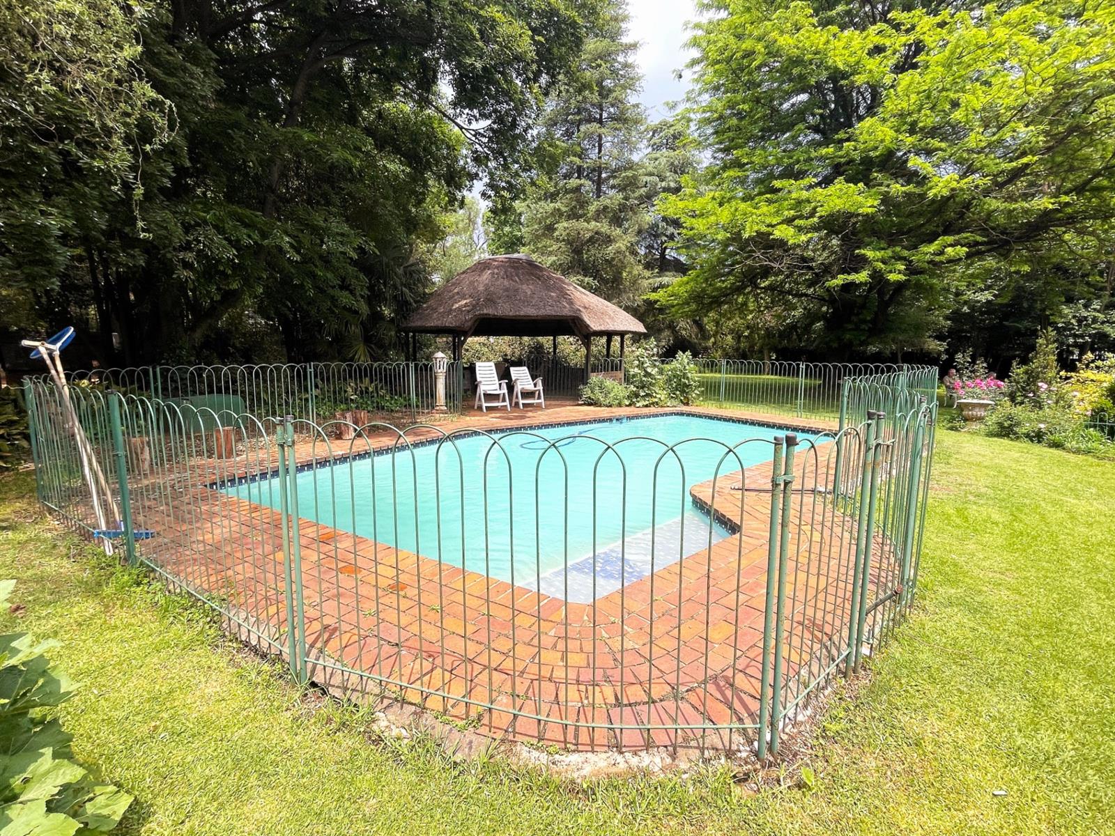 The swimming pool and thatched lapa are fenced in and surrounded by rose and complimentary foliage spoiling the homeowner with eye-candy while enjoying the local bird and animal activities. Overlooking the magnificent home, cottage, stables and entertainment area is a very neatly paved patio braai area.