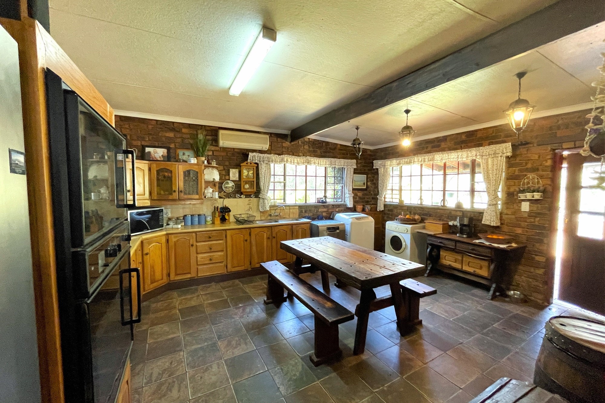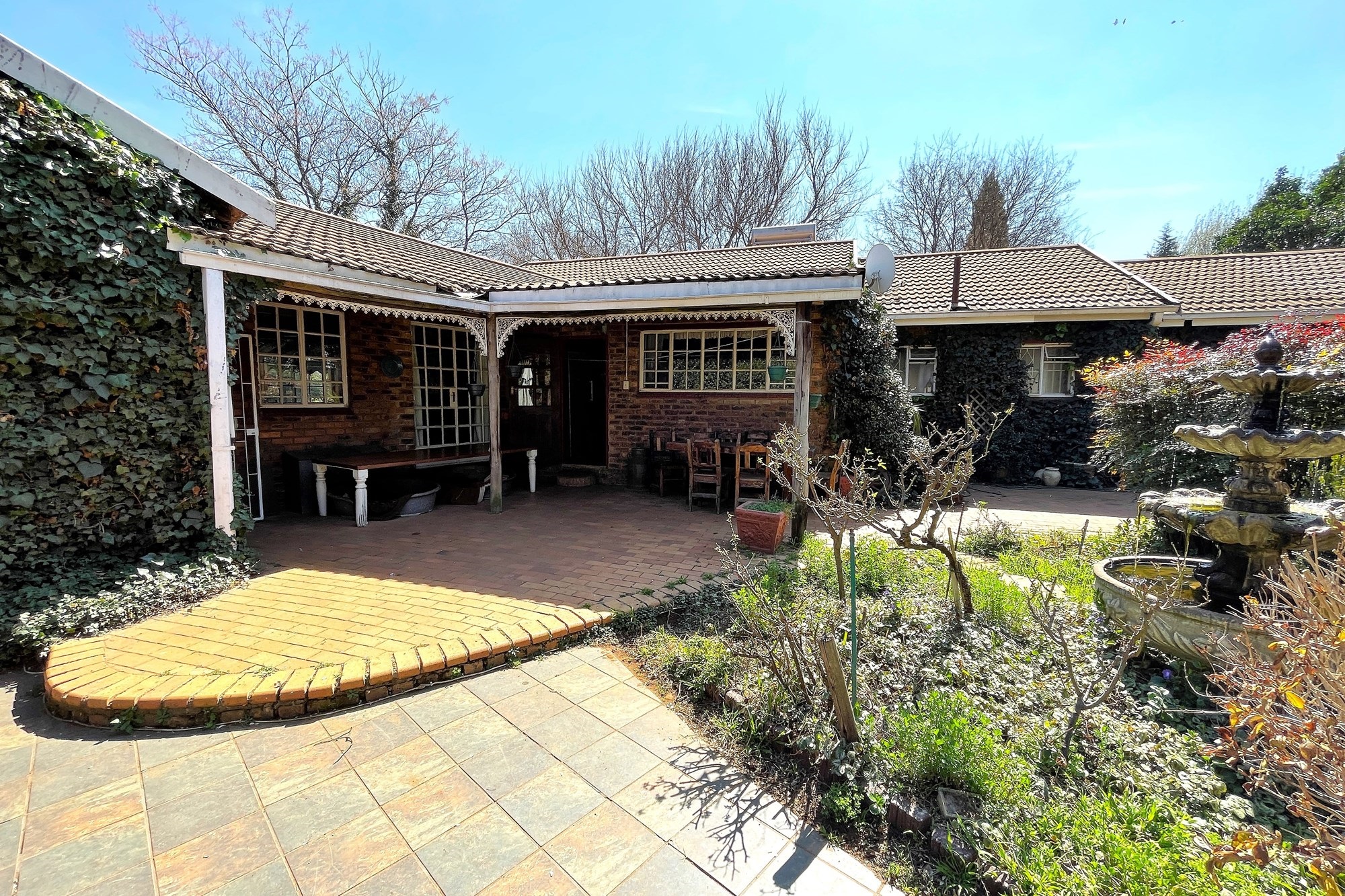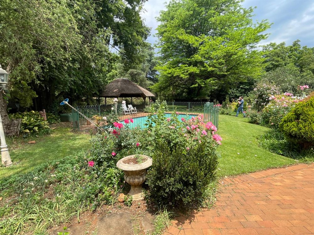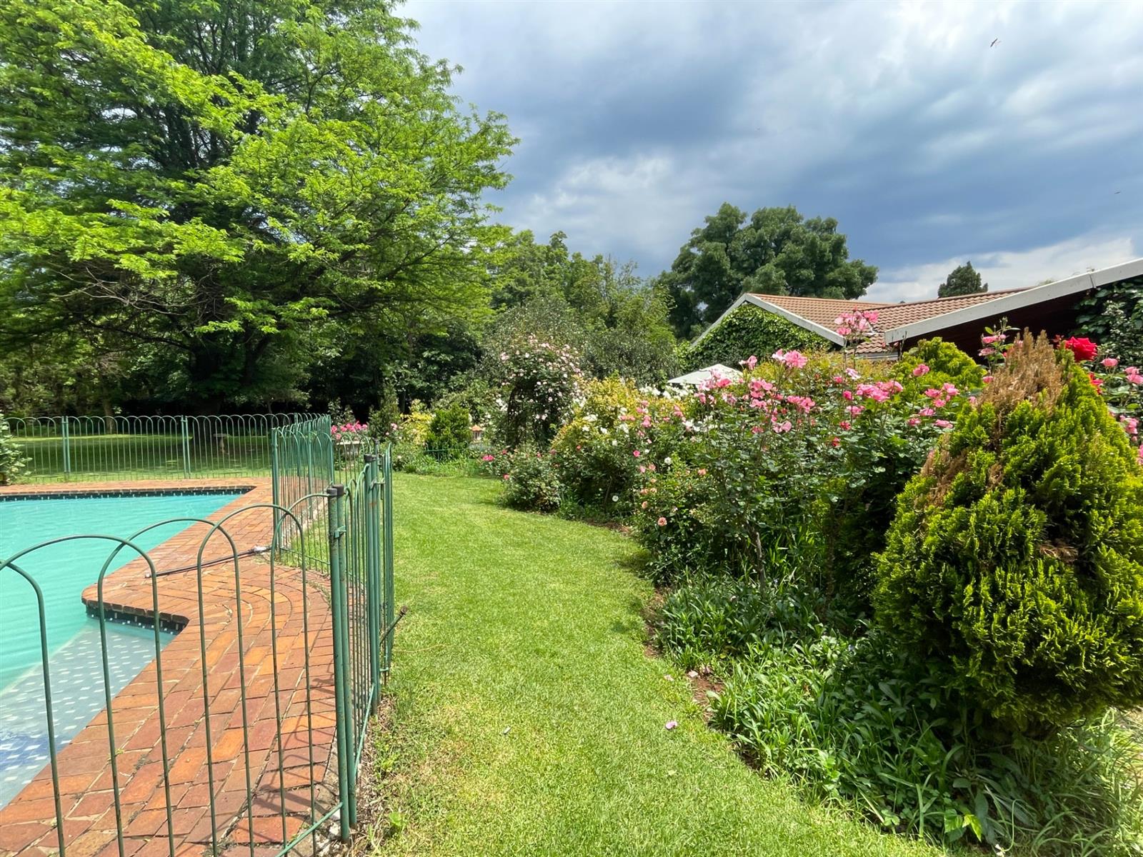 The swimming pool and thatched lapa are fenced in and surrounded by rose and complimentary foliage spoiling the homeowner with eye-candy while enjoying the local bird and animal activities. Overlooking the magnificent home, cottage, stables and entertainment area is a very neatly paved patio braai area.