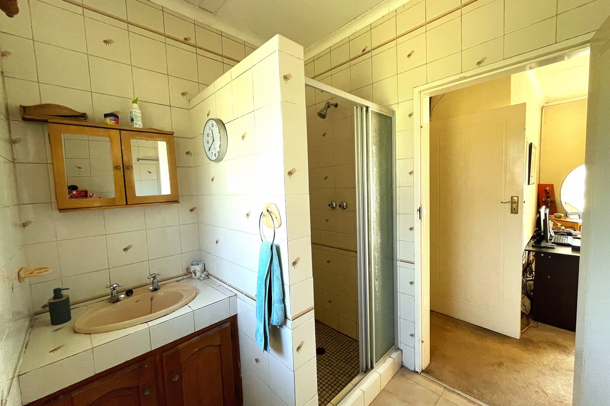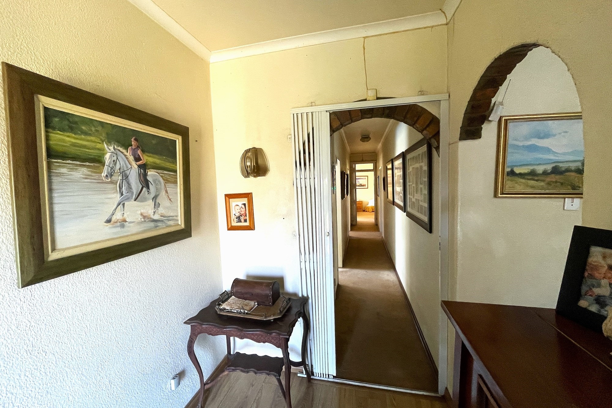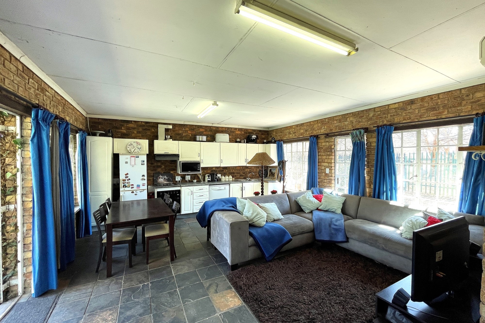 The main house offering: Palisade perimeter all round, automated entrance gate, 3 sunny, north-facing bedrooms (MES), two bathrooms, lounge with gorgeous fireplace, dining room, TV room, kitchen and double automated garages complimented with a double shade port.