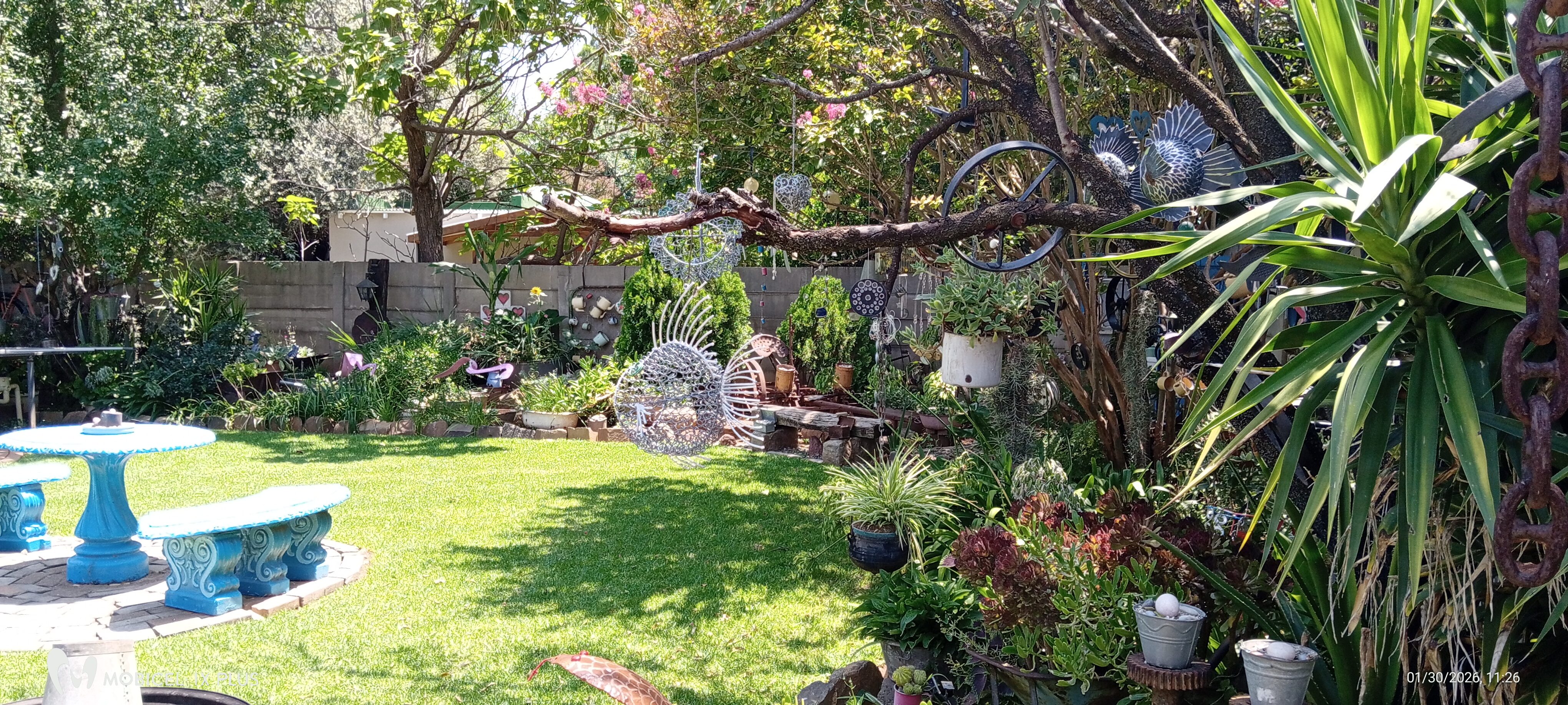 Well-maintained, established garden with many trees and welcoming corners for quiet times.