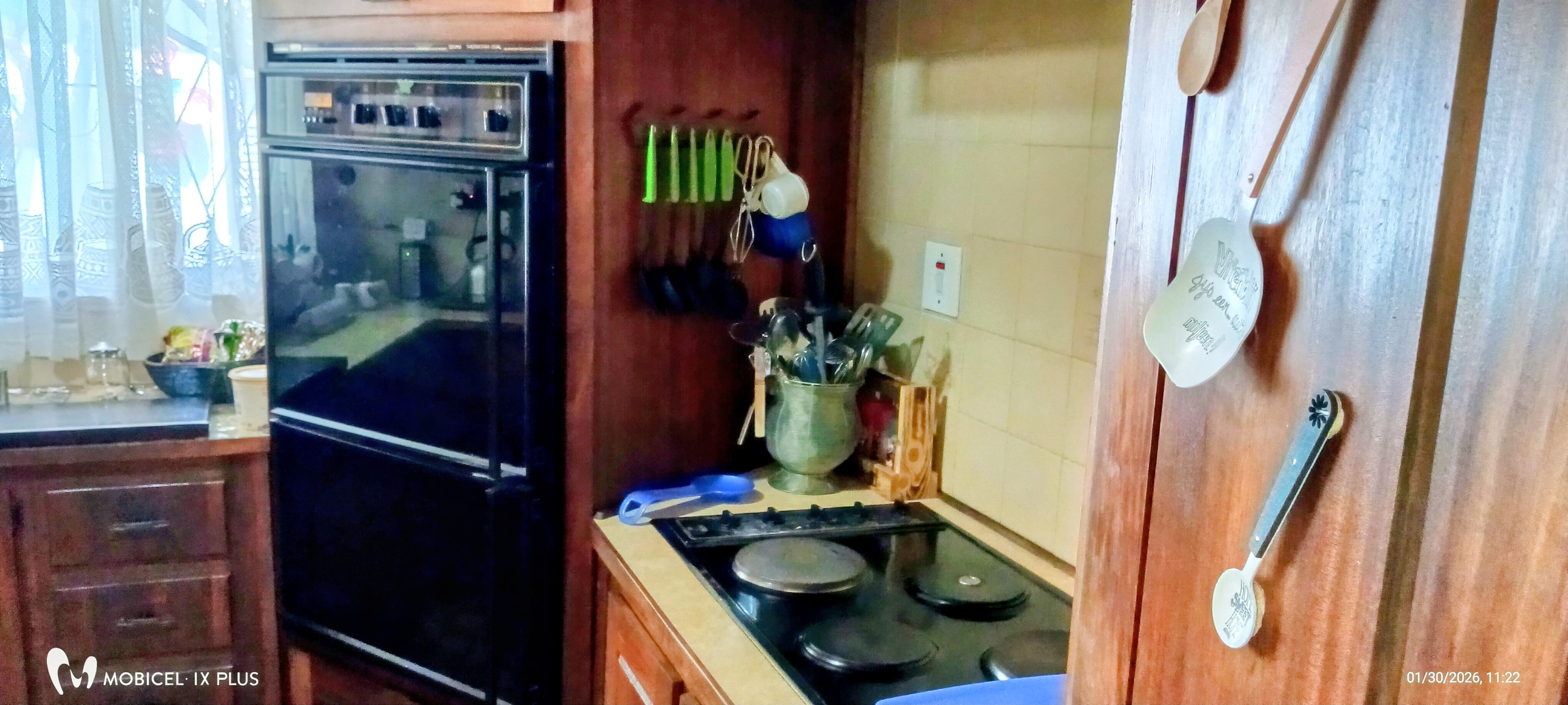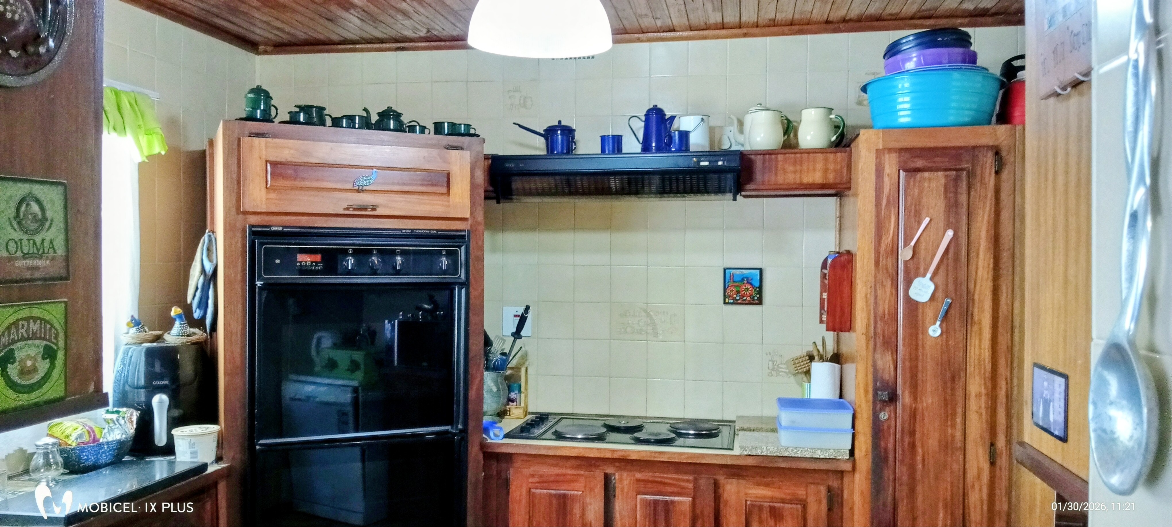 The main house features 3 spacious bedrooms, all fitted with neat, sturdy built-in cupboards and ceiling fans. Knotty pine ceilings throughout add warmth and character. The home offers 2 full bathrooms, one with a luxurious corner bath.