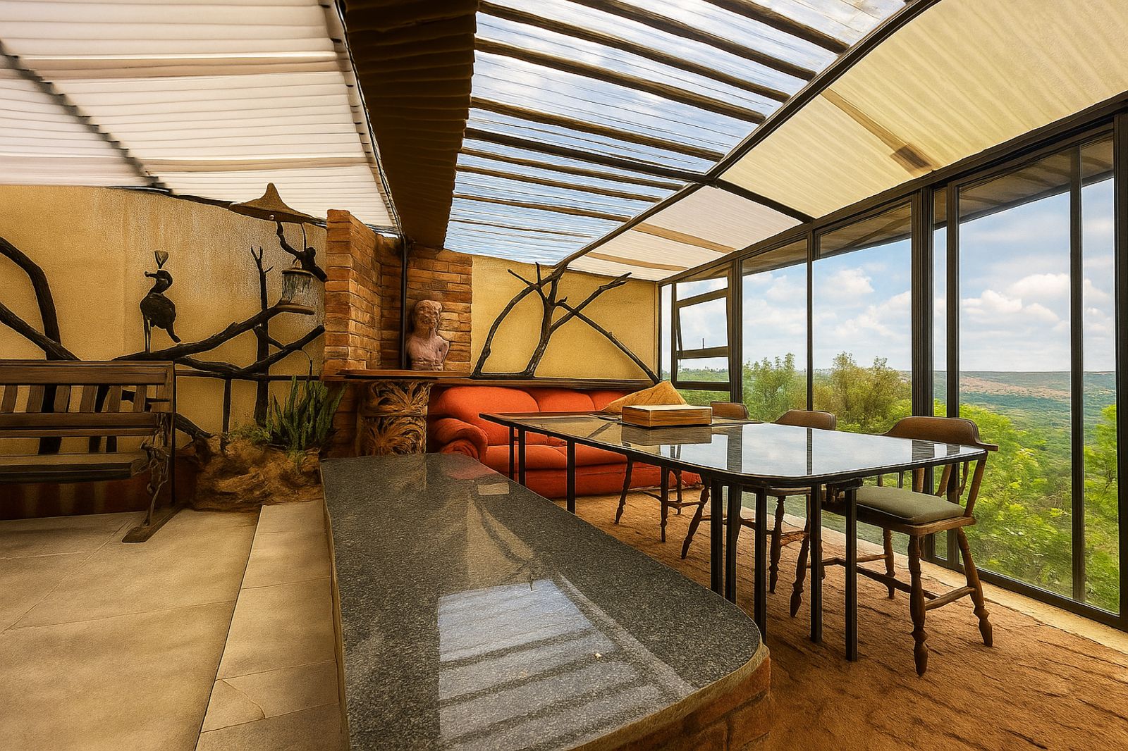A second home enhances the versatility of the estate, featuring two bedrooms, a bathroom, study, and enclosed patio with panoramic vistas. Outside, the boma, braai area, and pool set the stage for unforgettable gatherings under the stars.