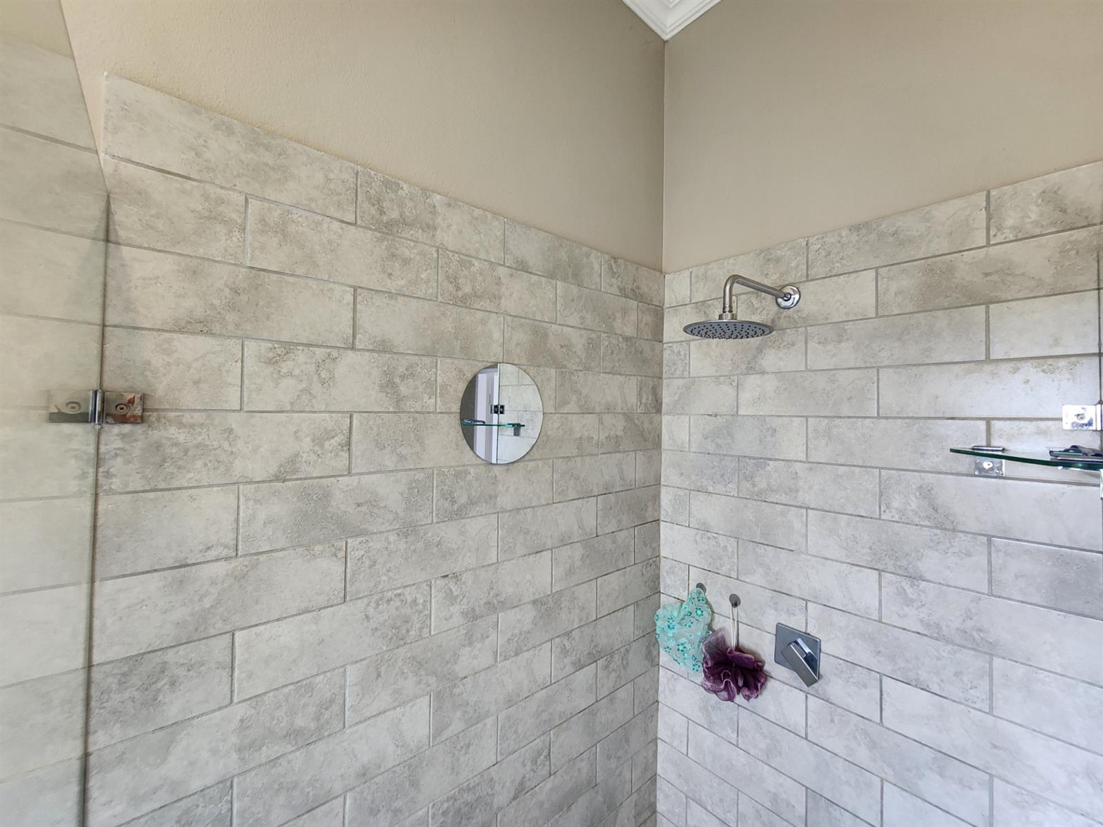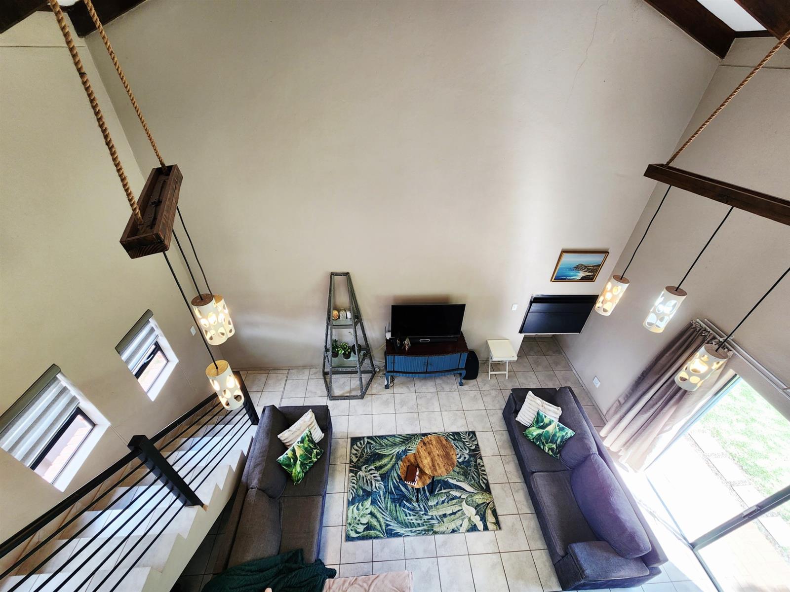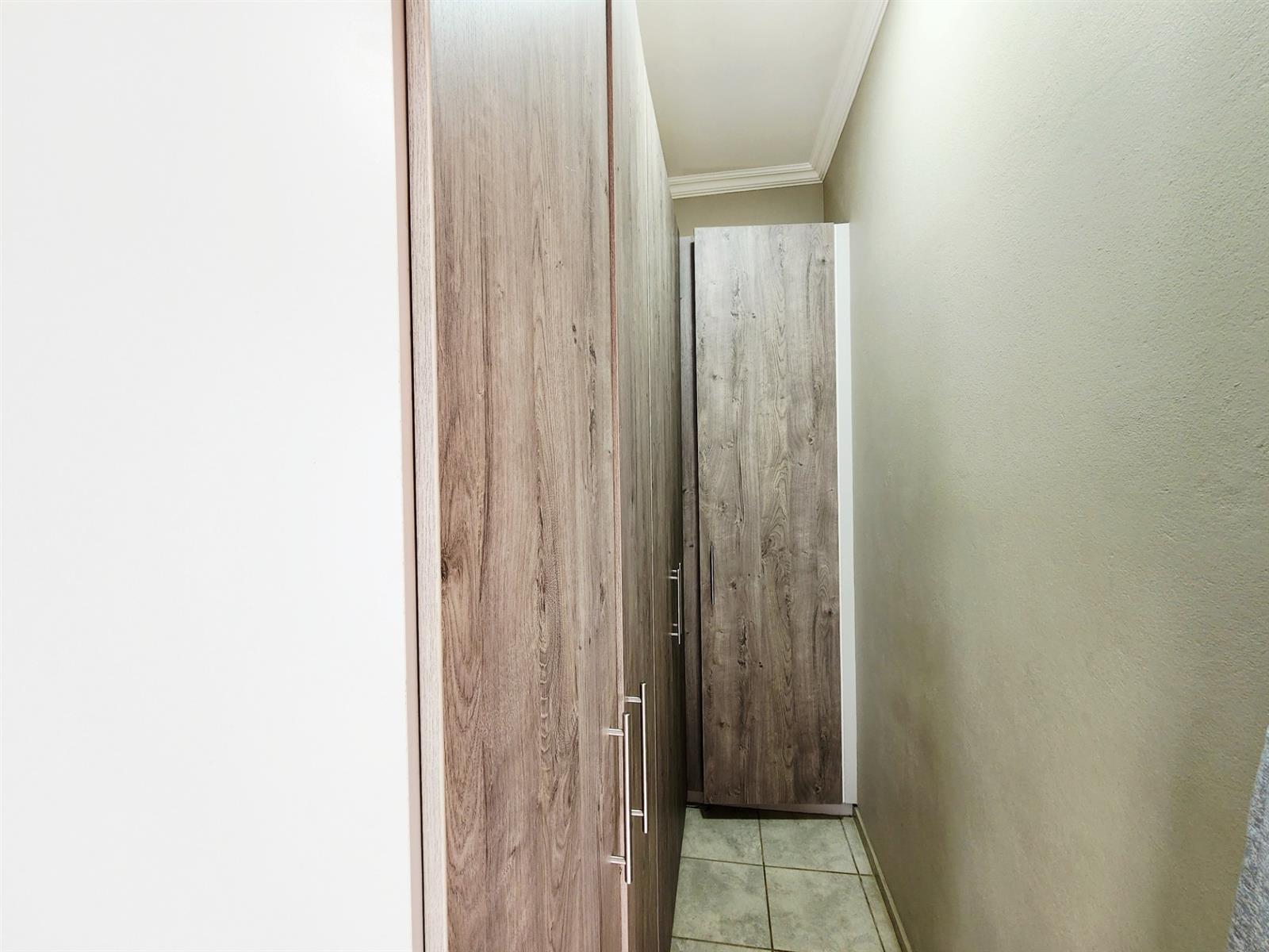 Downstairs, you are welcomed by a modern open-plan kitchen with a pantry, a small scullery cabinet, and space for a dishwasher or washing machine. The kitchen flows seamlessly into the living area with an indoor braai, ideal for relaxed entertaining. The home is equipped with a gas stove and a semi gas geyser with WiFi connectivity, adding modern convenience. Take note Wifi has additional cost and gas is also for own cost.