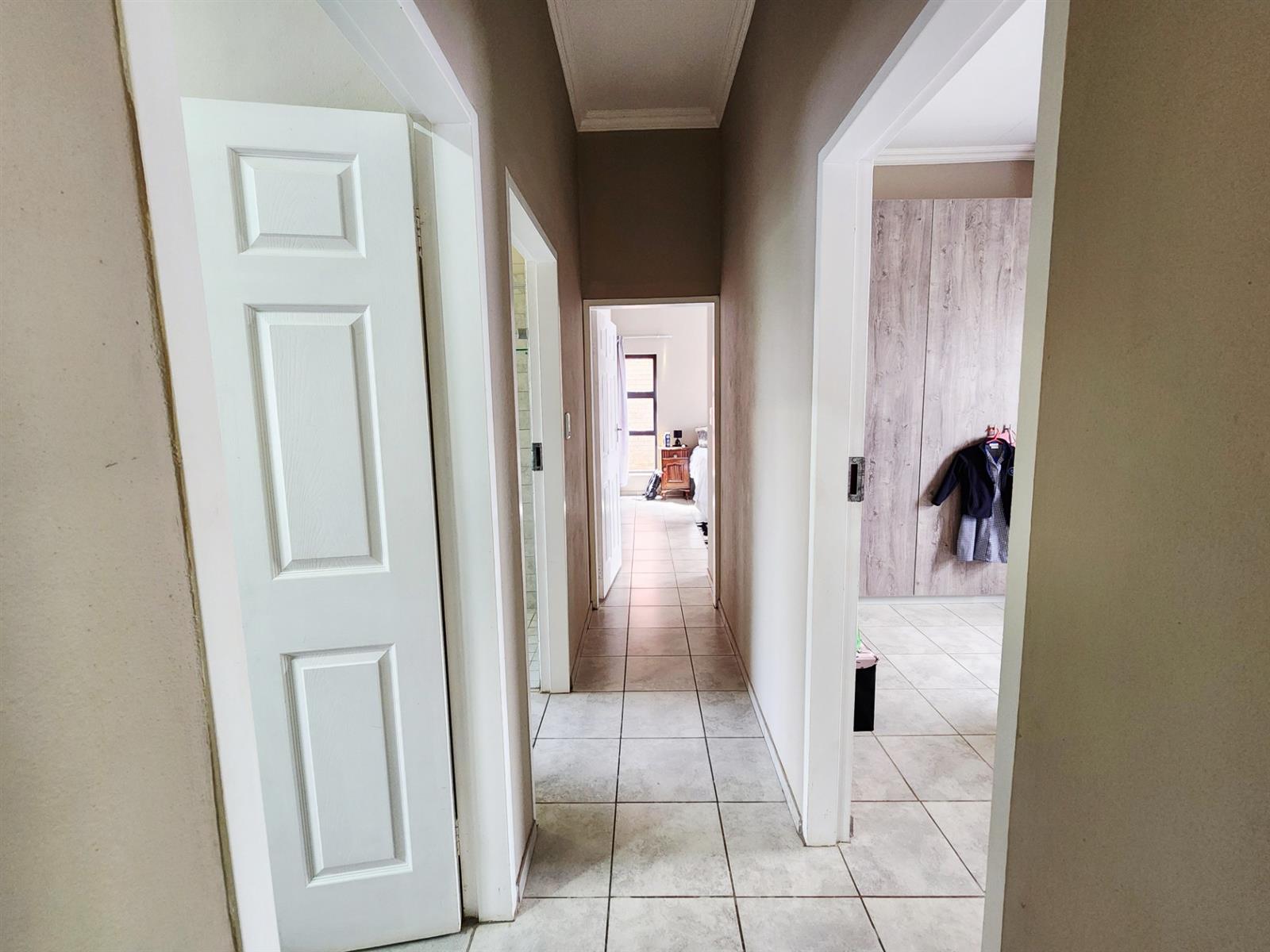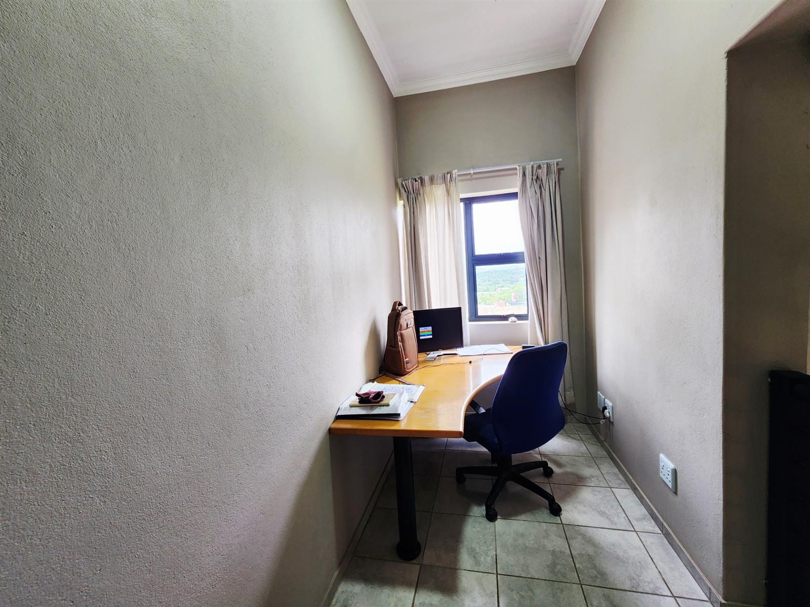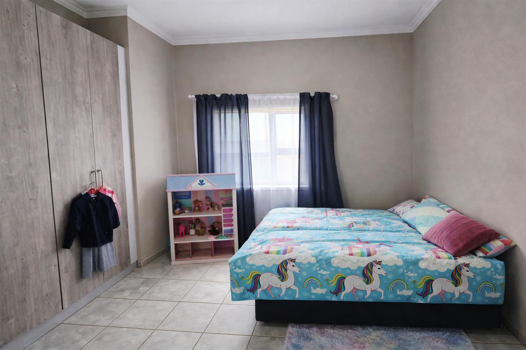Upstairs, you will find a study nook, ideal for working from home or quiet reading. The main bedroom offers ample cupboard space and an en-suite bathroom, while the two additional bedrooms also feature generous built-in cupboards.