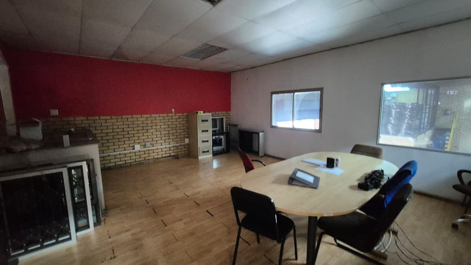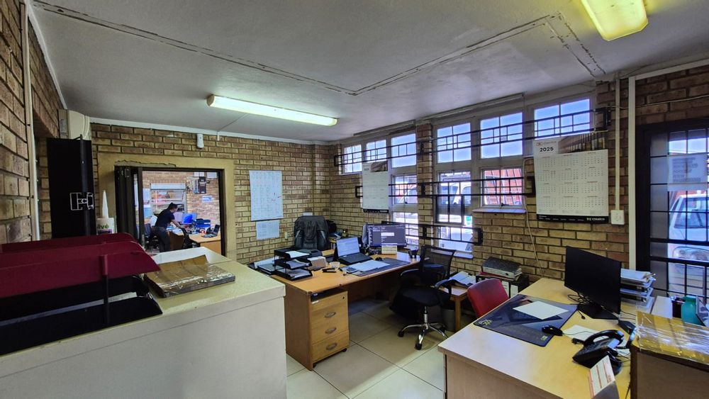 The modern office component includes a reception area, tiled offices with air-conditioning, a mezzanine level, kitchen, and neat ablution facilities. The building is fully fenced, equipped with 3-phase electricity, and fitted with firefighting equipment, ensuring safety and compliance for industrial users.