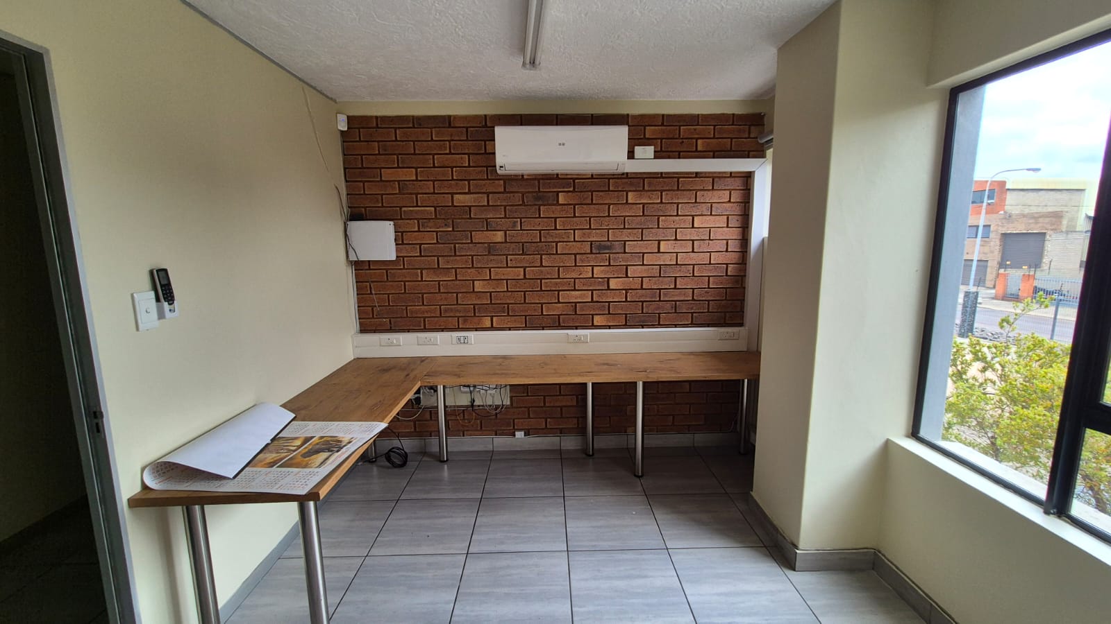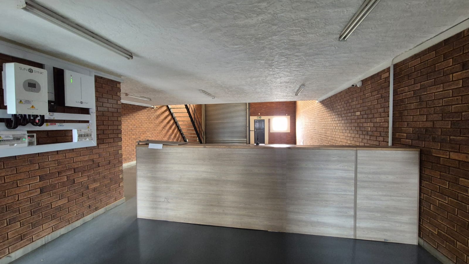 The office component is spread over three floors and includes a neat tiled reception area, mezzanine floor, balcony, and air-conditioned offices, providing a professional and functional workspace. The unit also features two kitchens and two ablutions, ensuring convenience for staff. A storefront entrance with signage availability enhances visibility within the business park, making this an excellent option for client-facing operations.