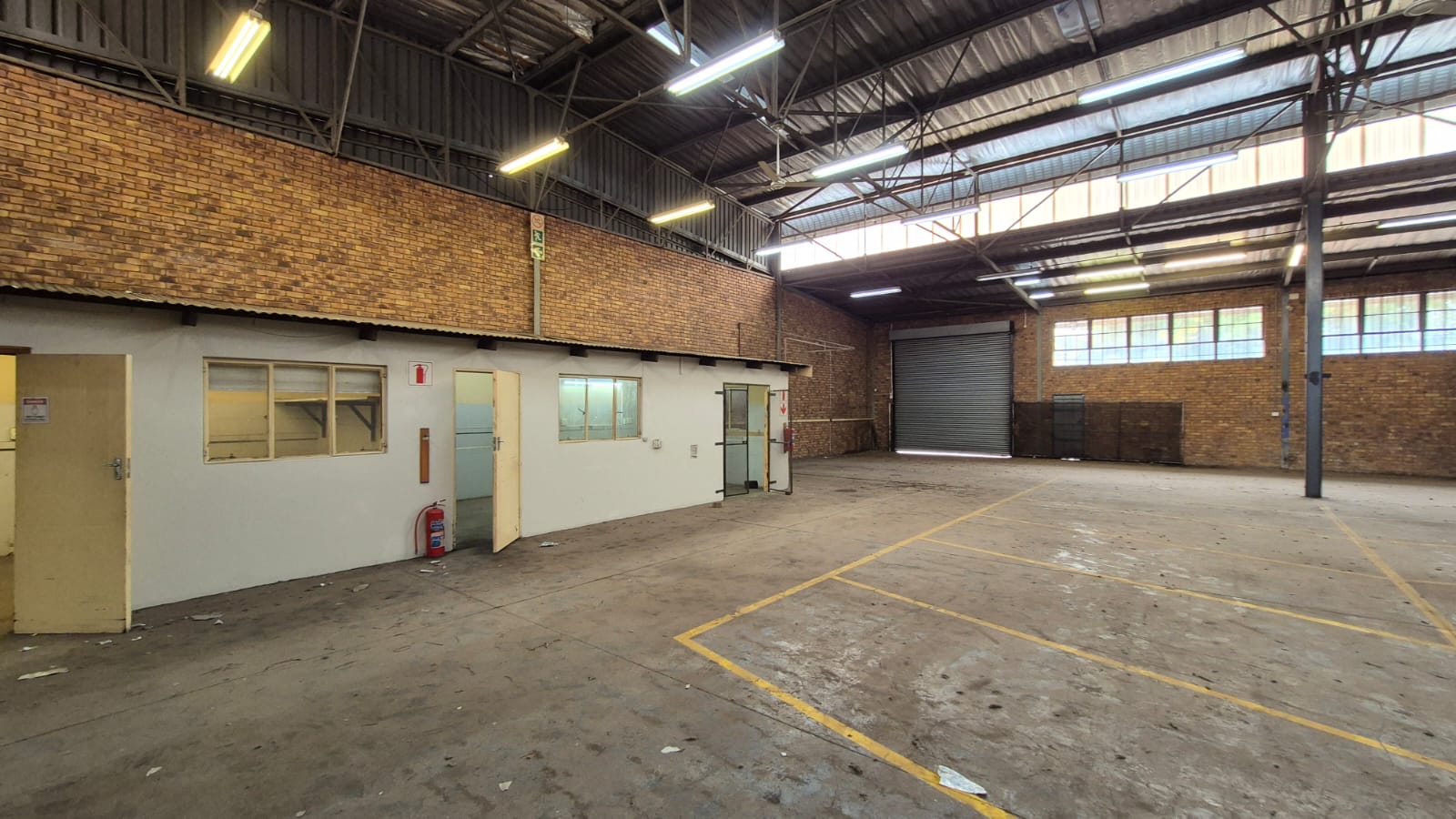 The warehouse component features a 6-metre roof height, epoxy-coated floors, and two large roller shutter doors, allowing for efficient receiving and dispatch. The property is designed for operational efficiency with interlink truck access, a paved yard, three-phase power, and installed fire-fighting equipment, making it suitable for a wide range of industrial users.