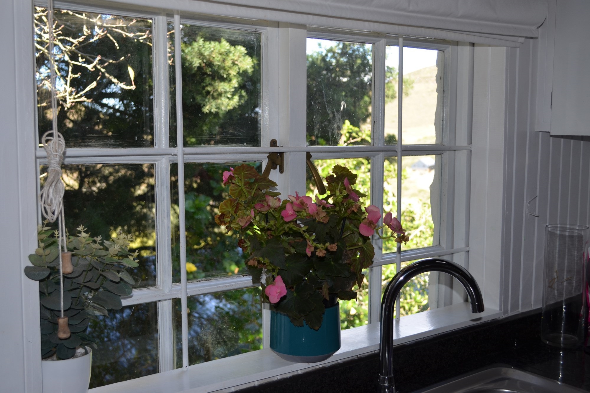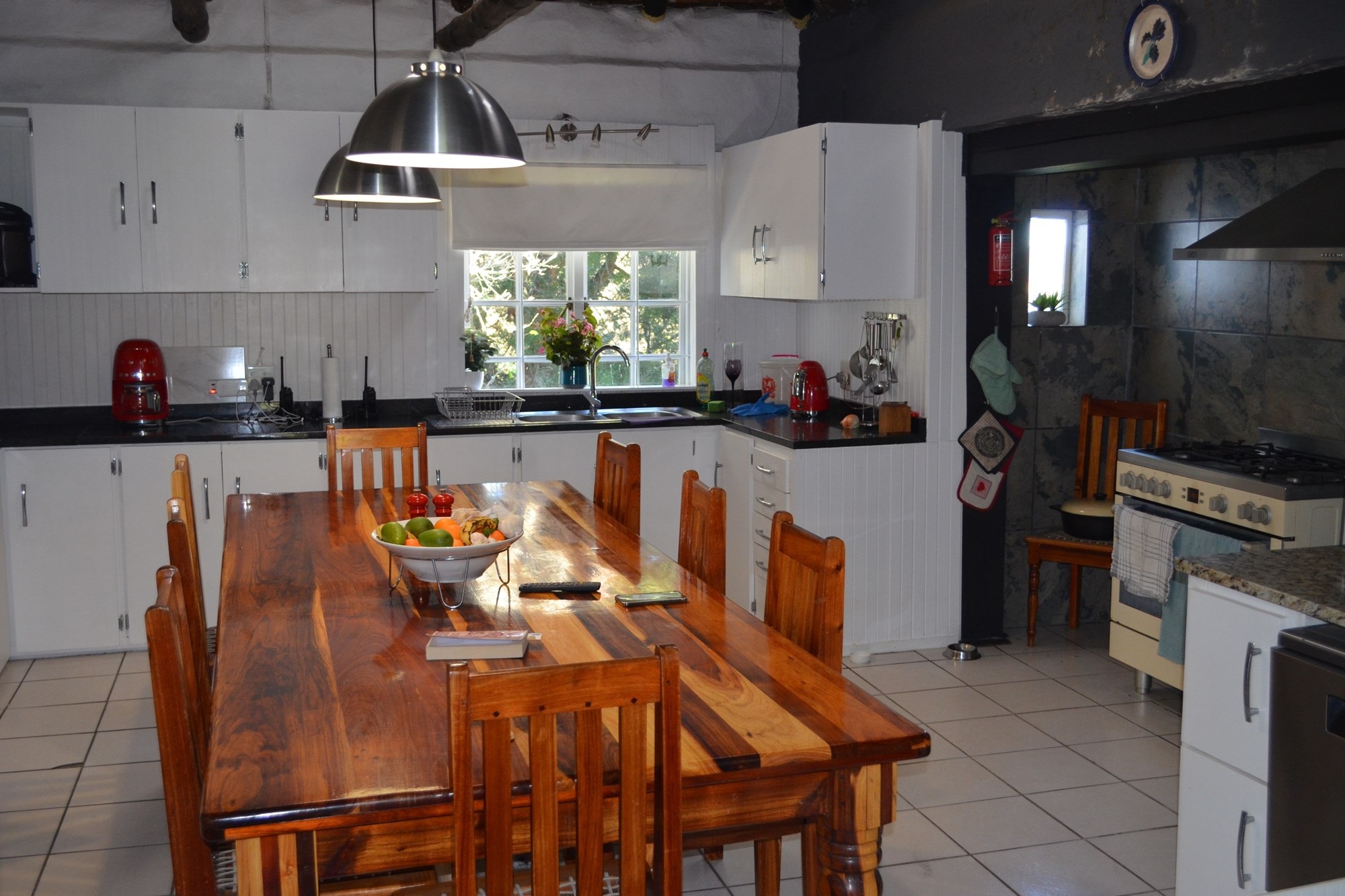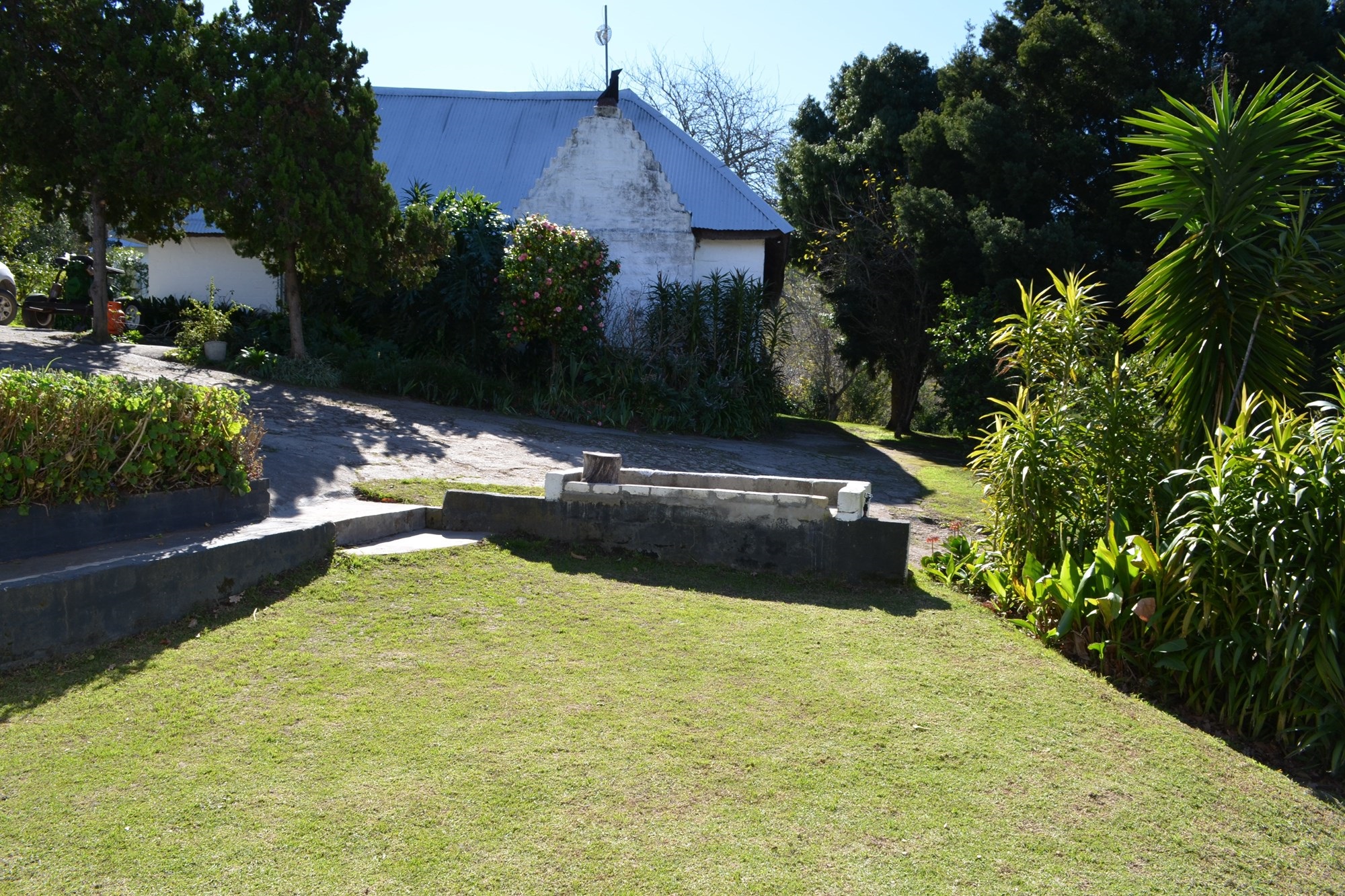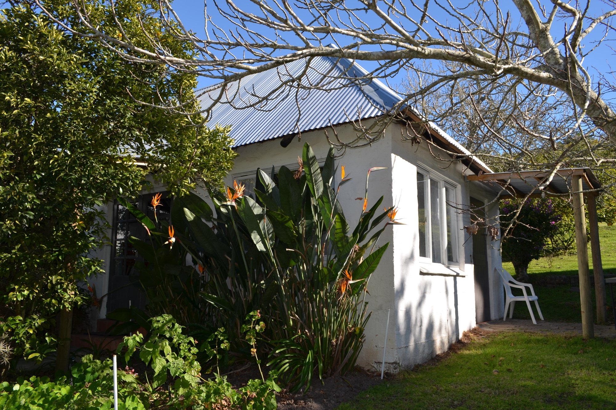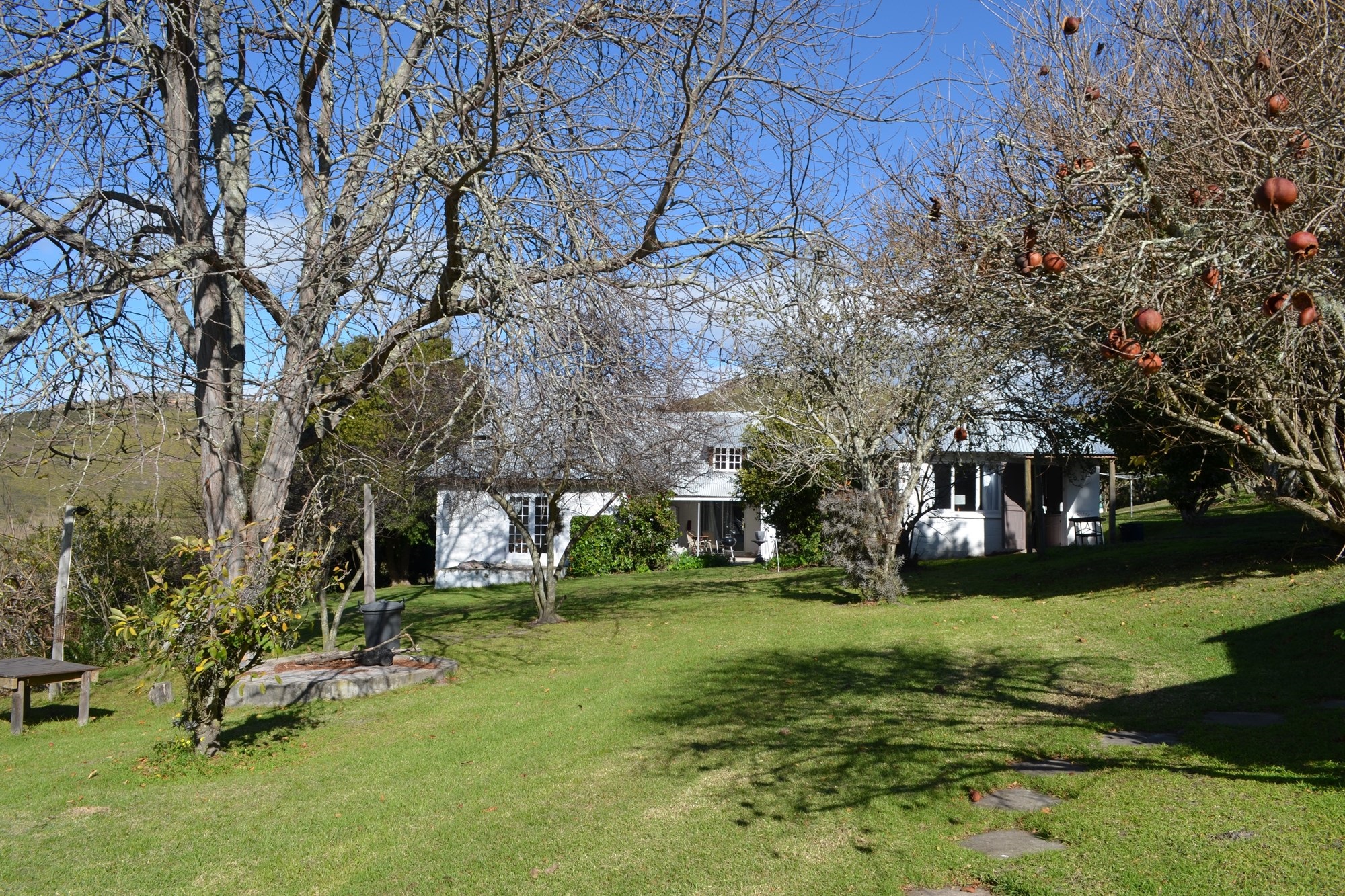 The main dwelling is a 4 bedroom house with a large inviting kitchen and beautiful garden with various fruit trees .