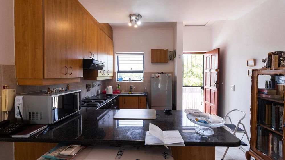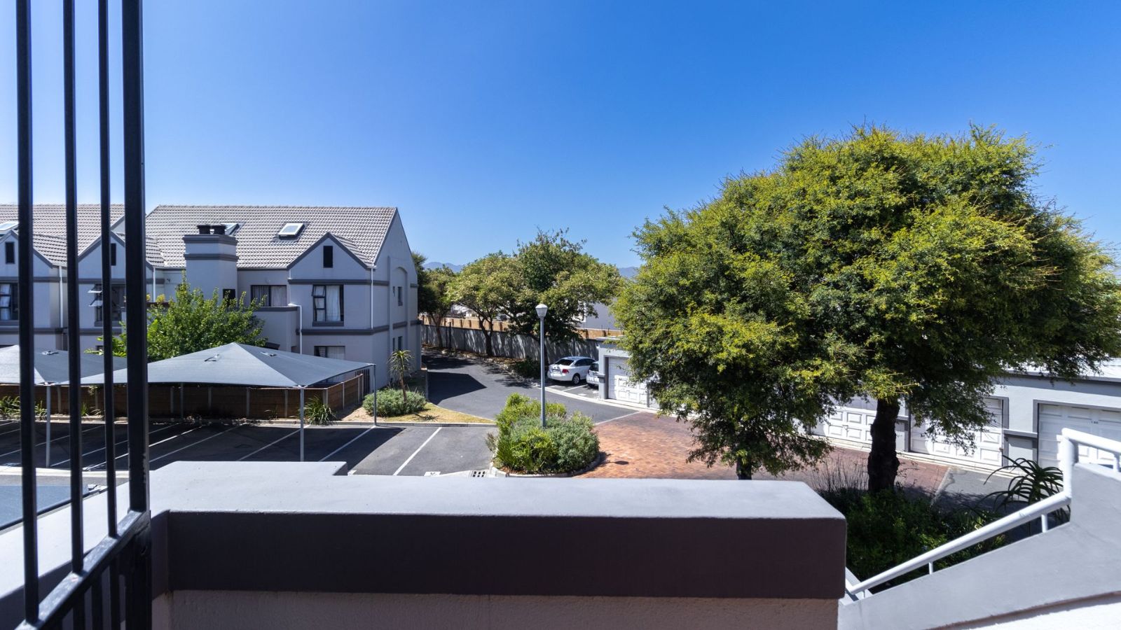 This rare gem in Oxford Mews Estate offers a unique blend of comfort and style, featuring three bedrooms, two bathrooms including an upstairs en-suite master and a spacious balcony with a built-in braai overlooking the stunning Helderberg Mountain. The open-plan kitchen and lounge area, complete with granite countertops, a breakfast nook, and ample storage space seamlessly extends to the balcony with a built-in braai creating an inviting entertainment space on the first floor. Downstairs, two versatile bedrooms can serve as a study or dining area, complemented by a bathroom.
