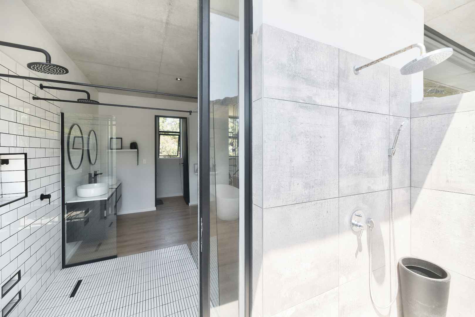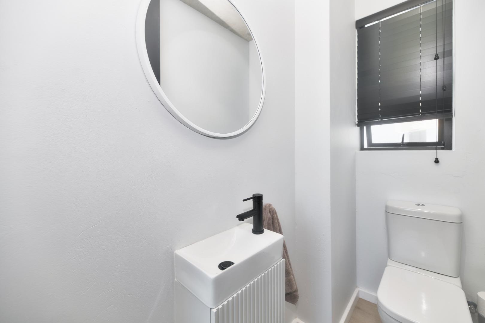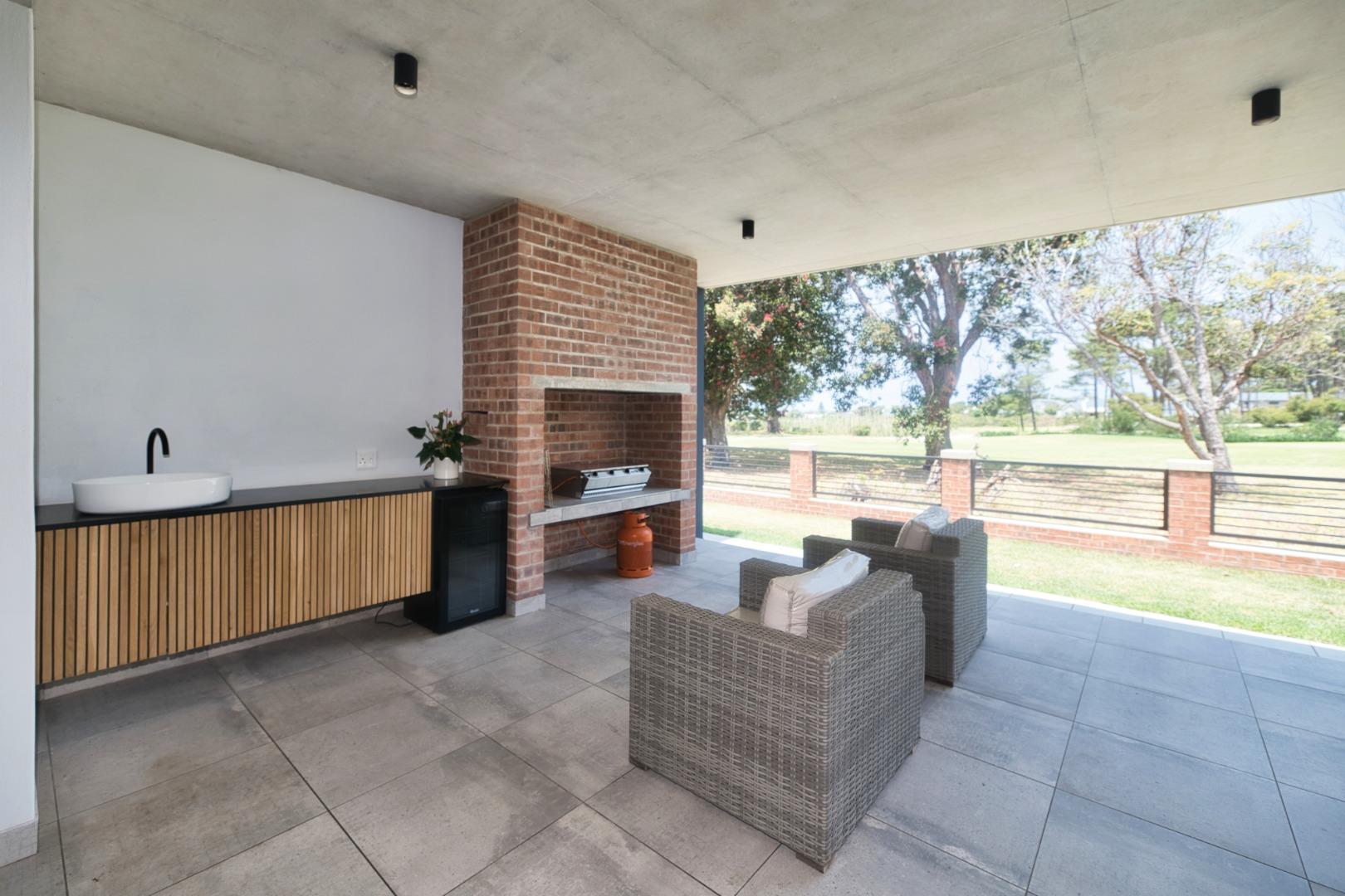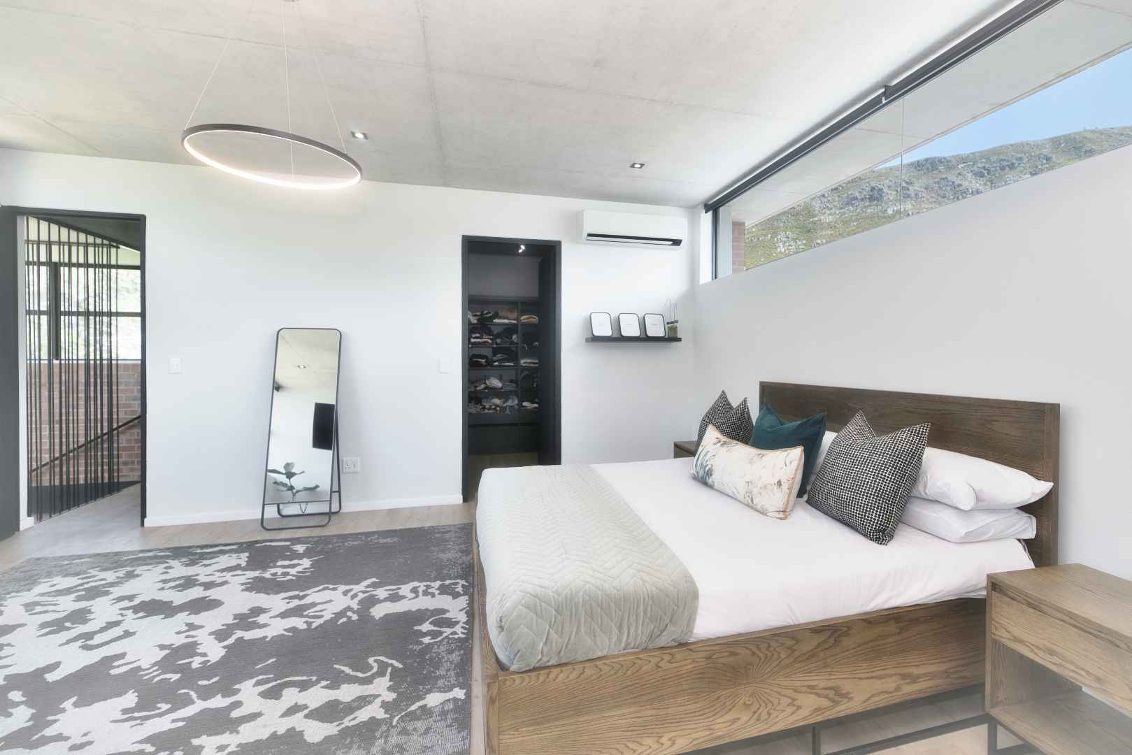 Set in the peaceful and very popular suburb of Hermanus Heights but biting on the lip of the golf course boundary, this home presents an exquisite fusion of industrial-chic design and coastal elegance. The striking facade, complemented by a meticulously paved driveway and garden, offers a captivating first impression.