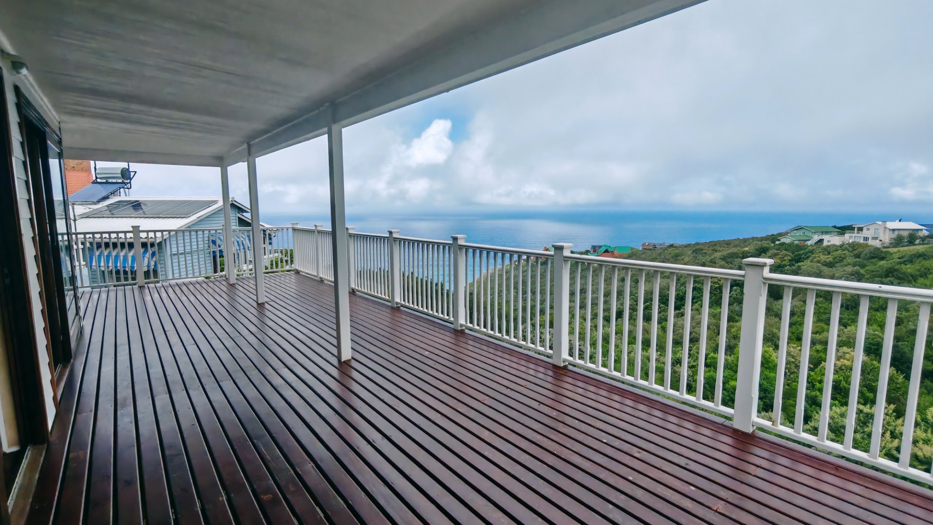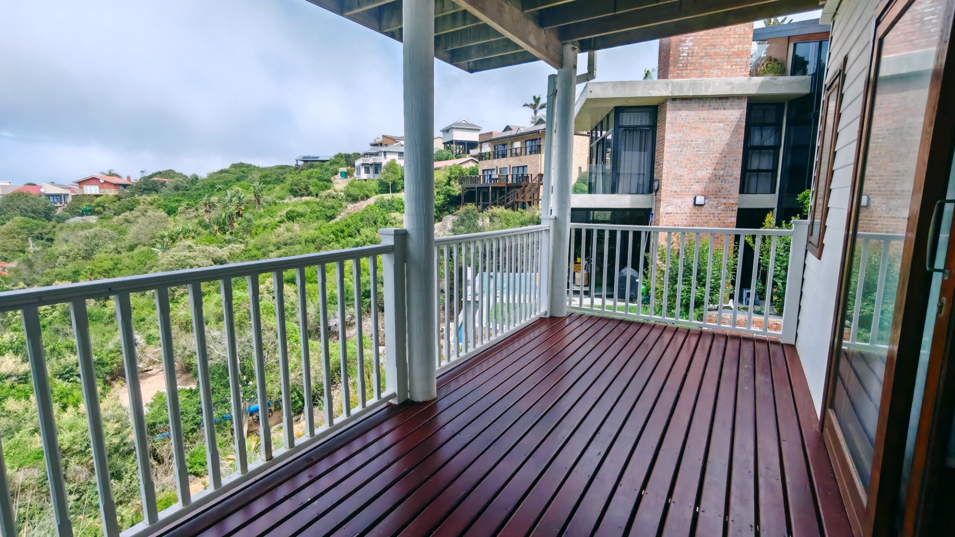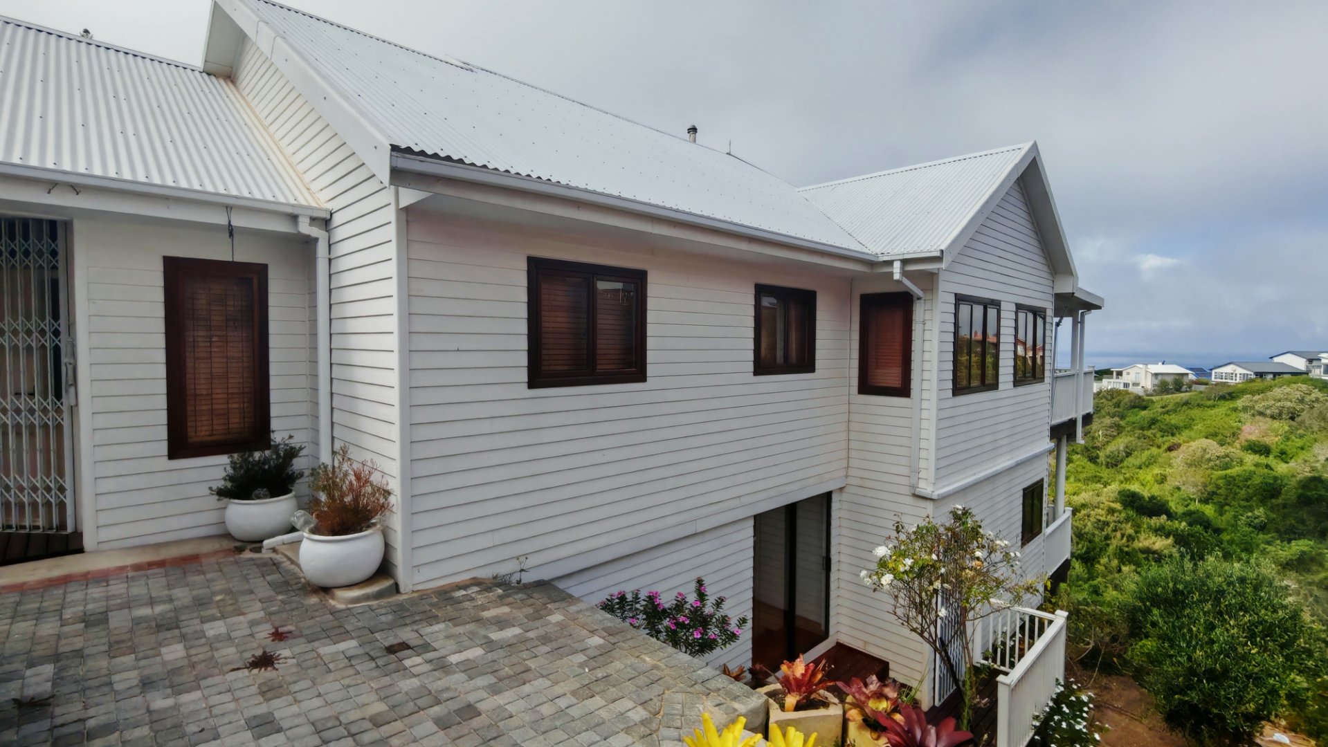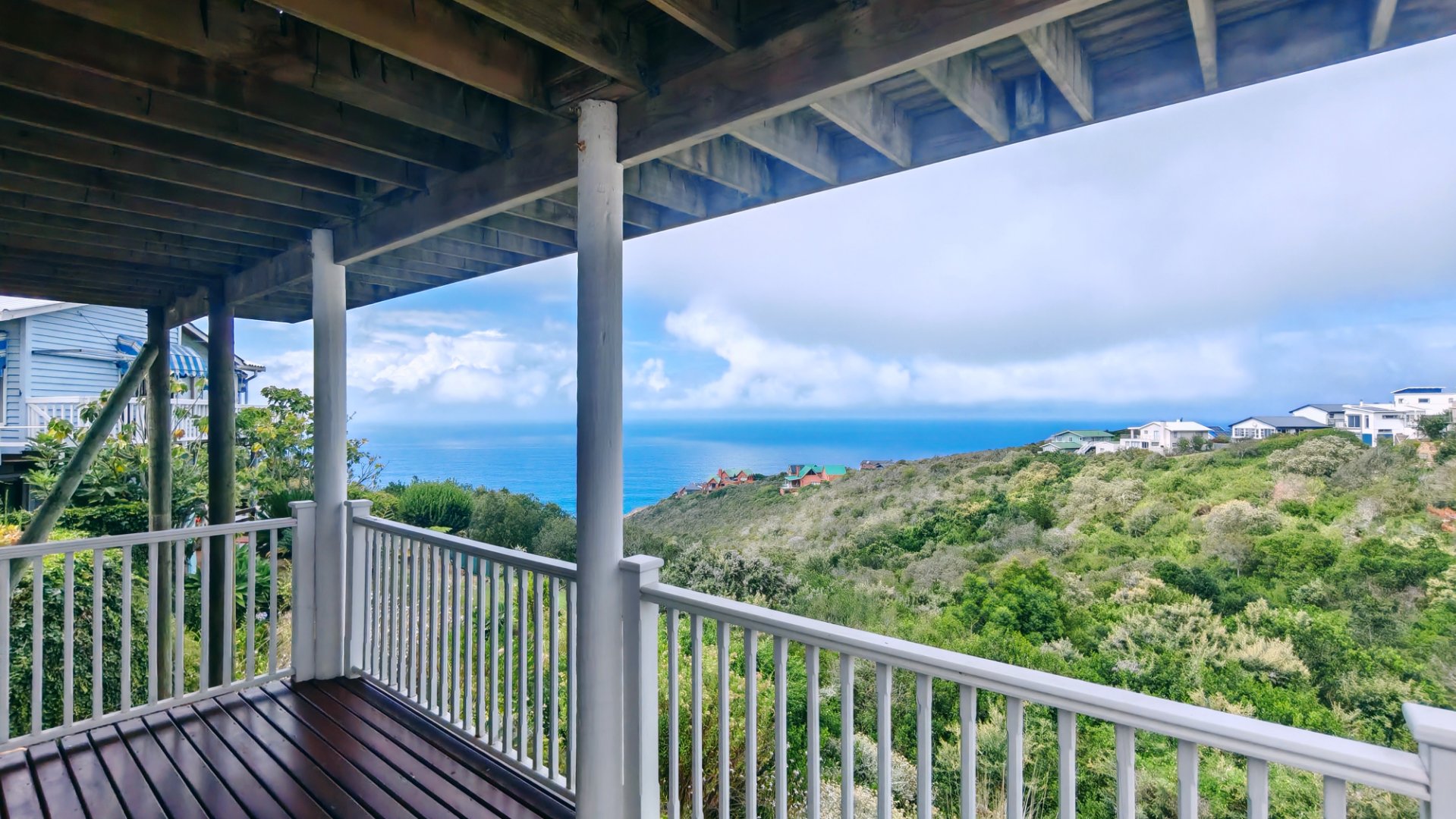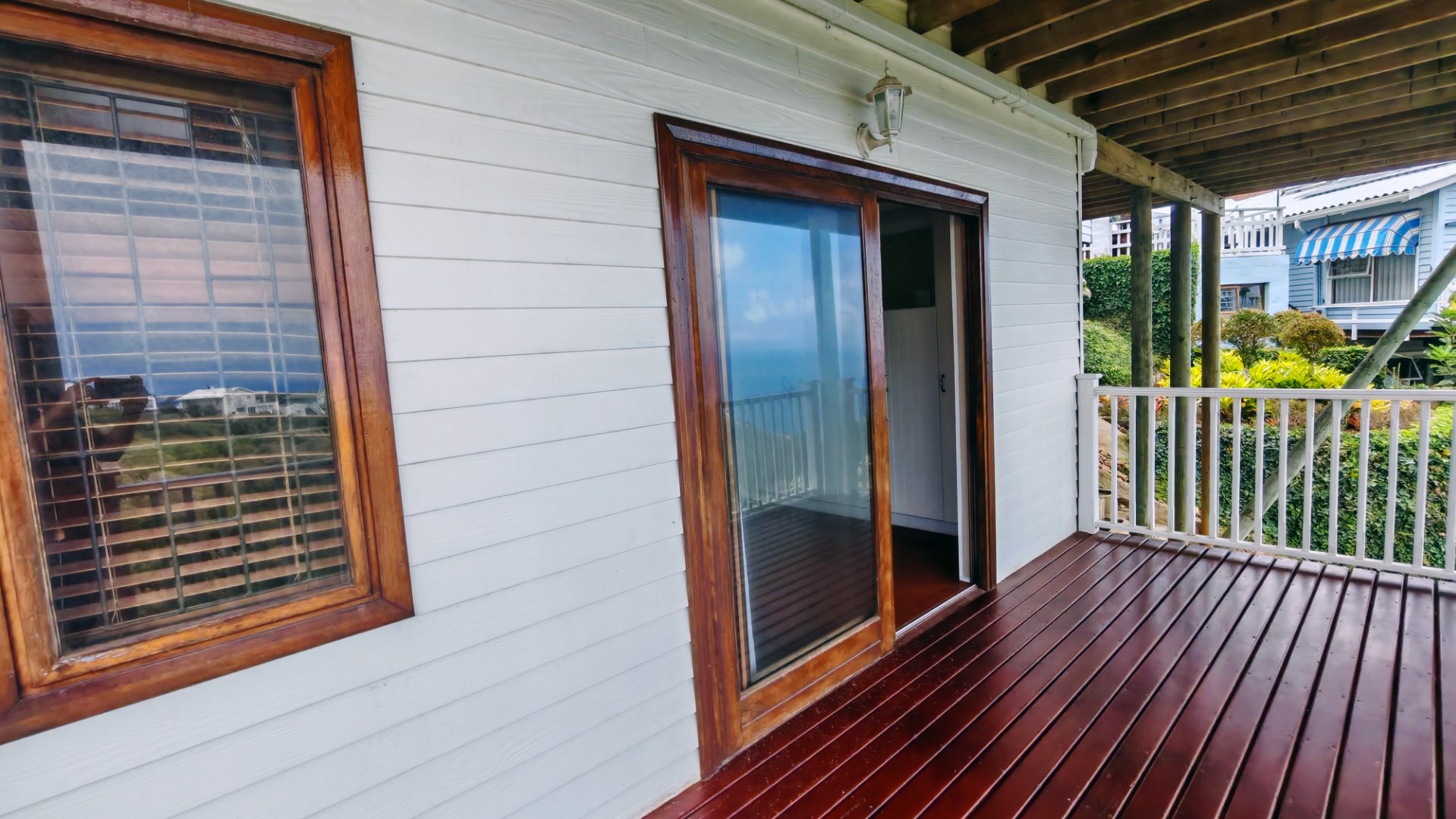 This well-designed 3-bedroom property offers spectacular ocean and greenbelt views, versatile accommodation options, and excellent income-generating potential. The main house features two bedrooms, including a main bedroom with en-suite bathroom, plus a separate family bathroom. The open-plan living areas and kitchen create a light and welcoming atmosphere, complemented by a separate scullery for added convenience. The living area opens onto a balcony where you can enjoy stunning views of the ocean and tranquil greenbelt. Downstairs offers a private third bedroom with its own bathroom, storage space, separate entrance, and private balcony – all with stunning views. This area is ideal for guests, extended family, or as a rental unit.