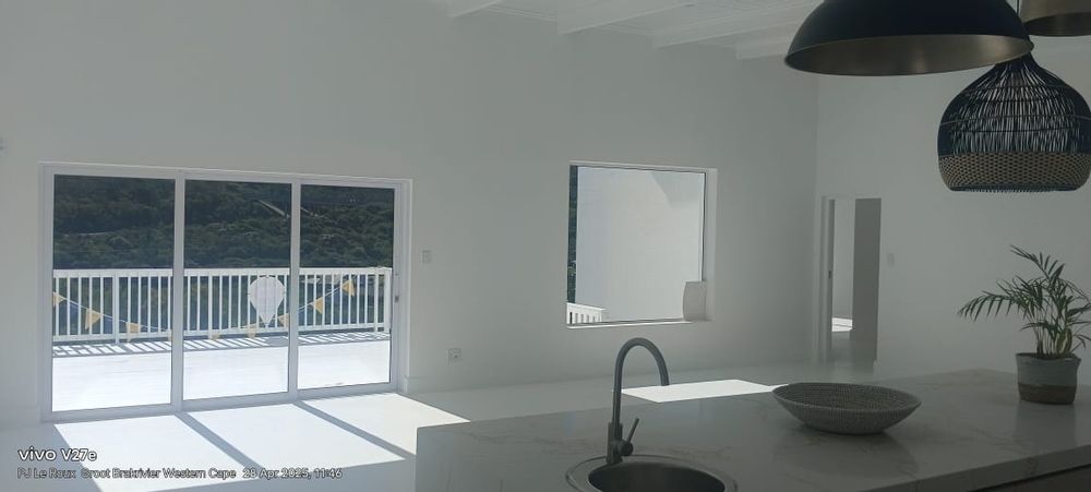 The open-plan layout flows effortlessly from the stunning quartz-topped kitchen (complete with gas stove and elegant marble finishes) into spacious dining and lounge areas. Large sliding doors connect the interior to a generous deck, offering sweeping mountain views and creating the perfect space for indoor-outdoor living.