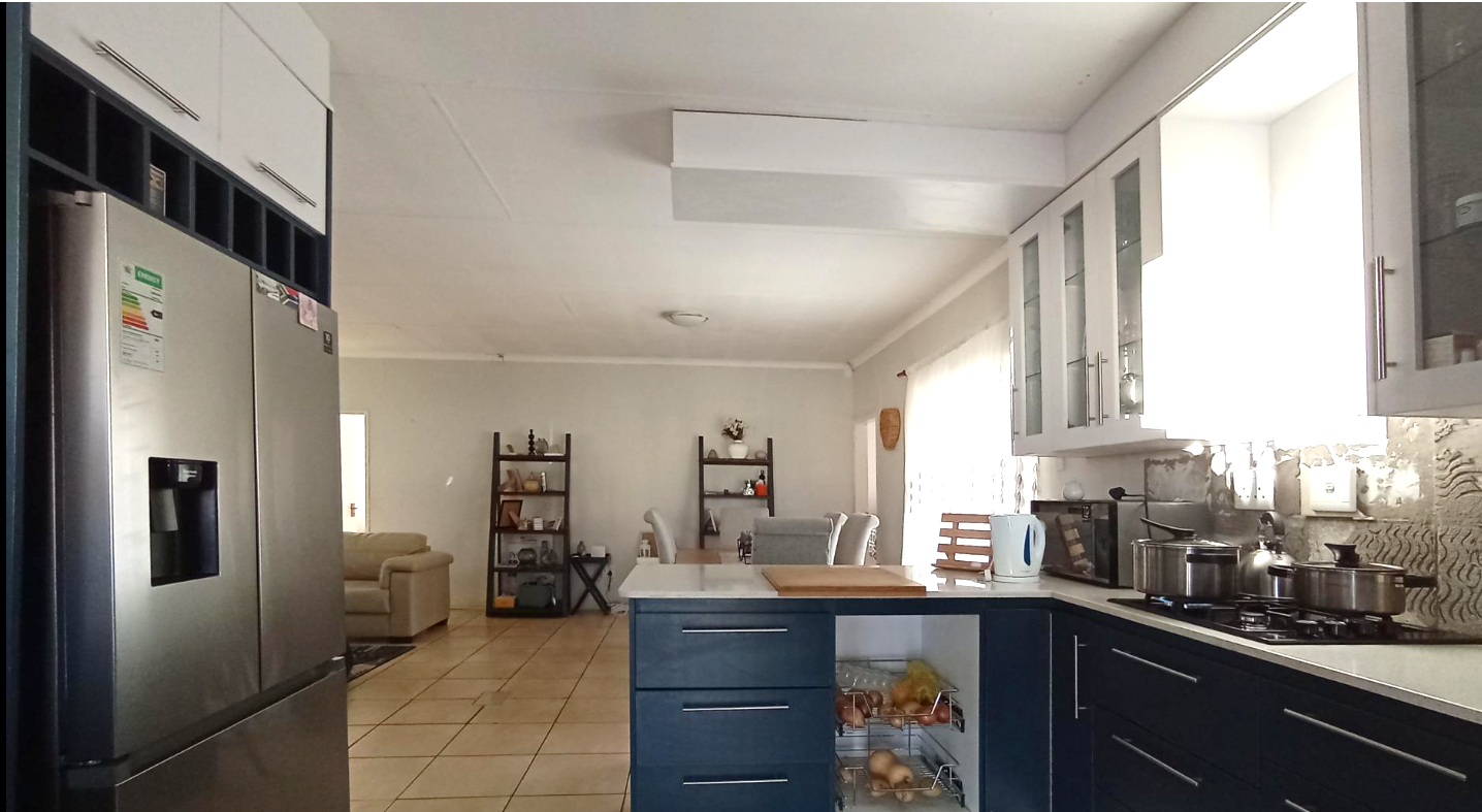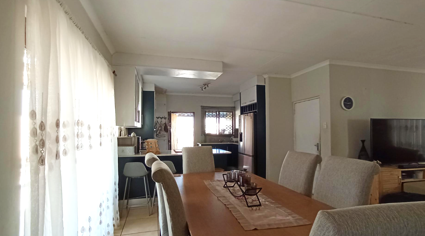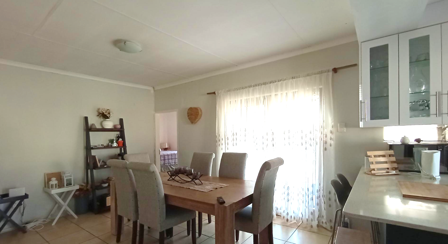 A bright, open lounge flows into dining space and kitchen. The large patio offers a perfect transition to outdoor living – ideal for summer braais or tranquil evenings.