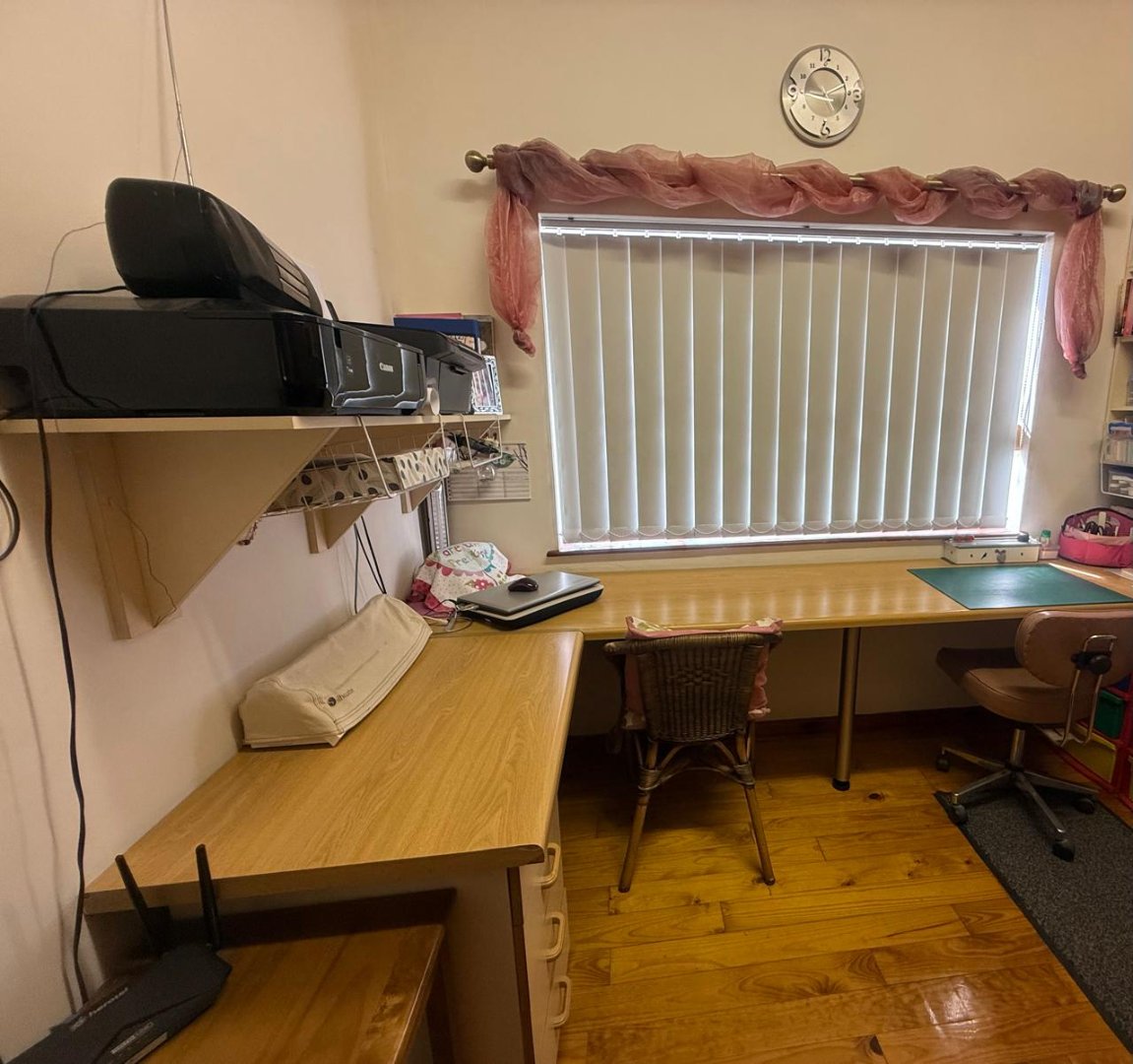 - 3 Bedrooms with blinds, built in cupboards. (Third a home office)