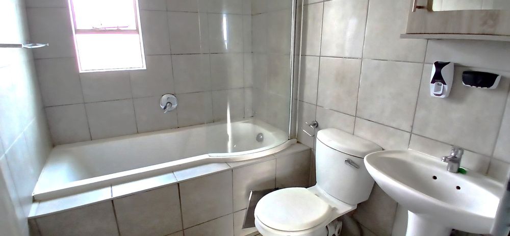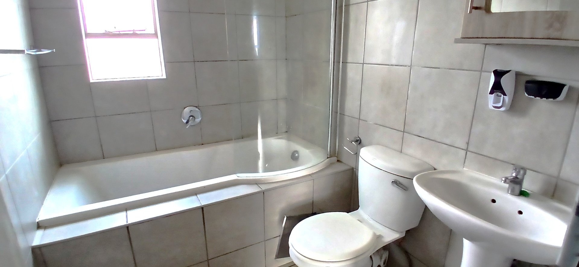 The apartment offers 2 well-sized bedrooms, each with ample built-in cupboards, and a bathroom fitted with a shower, bathtub, basin, and toilet.