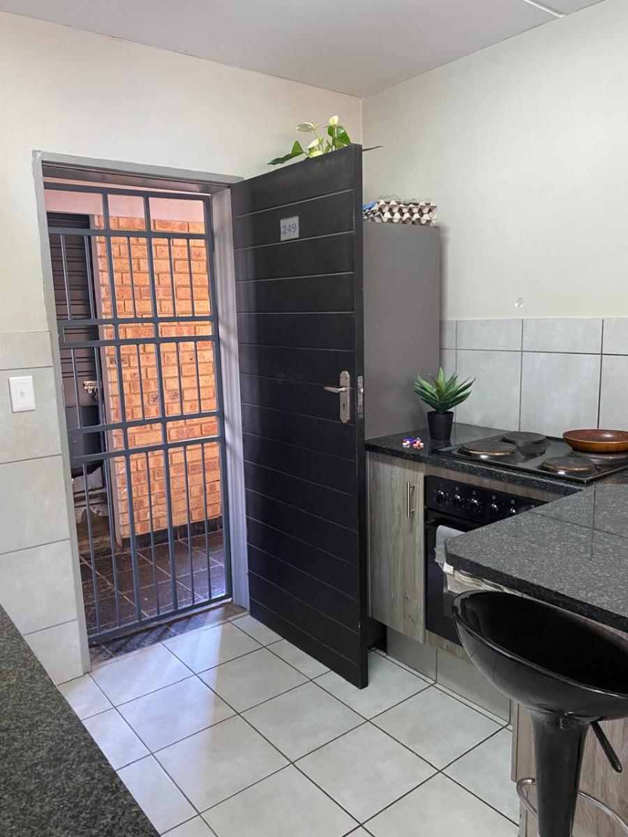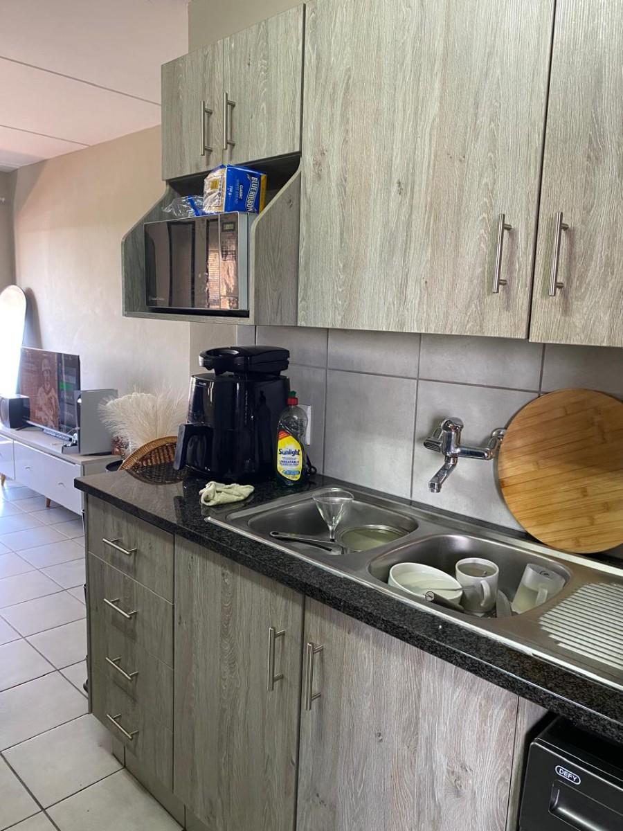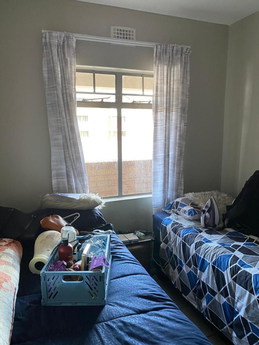 The open-plan layout, featuring tiled floors throughout, creates a spacious and inviting atmosphere. The kitchen features granite tops and enough cupboard space. Step out onto your private balcony to enjoy lovely views, making it an ideal spot for morning coffee or evening relaxation. The two bedrooms feature built-in cupboards, and the full bathroom features a washbasin, toilet, bath and shower.