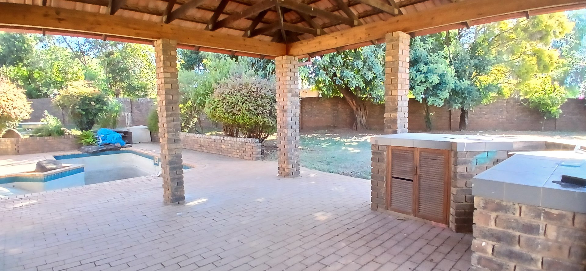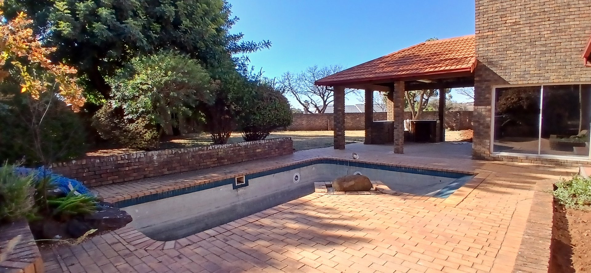 The formal lounge leads out to a covered patio featuring a built-in braai—great for all-weather entertaining.