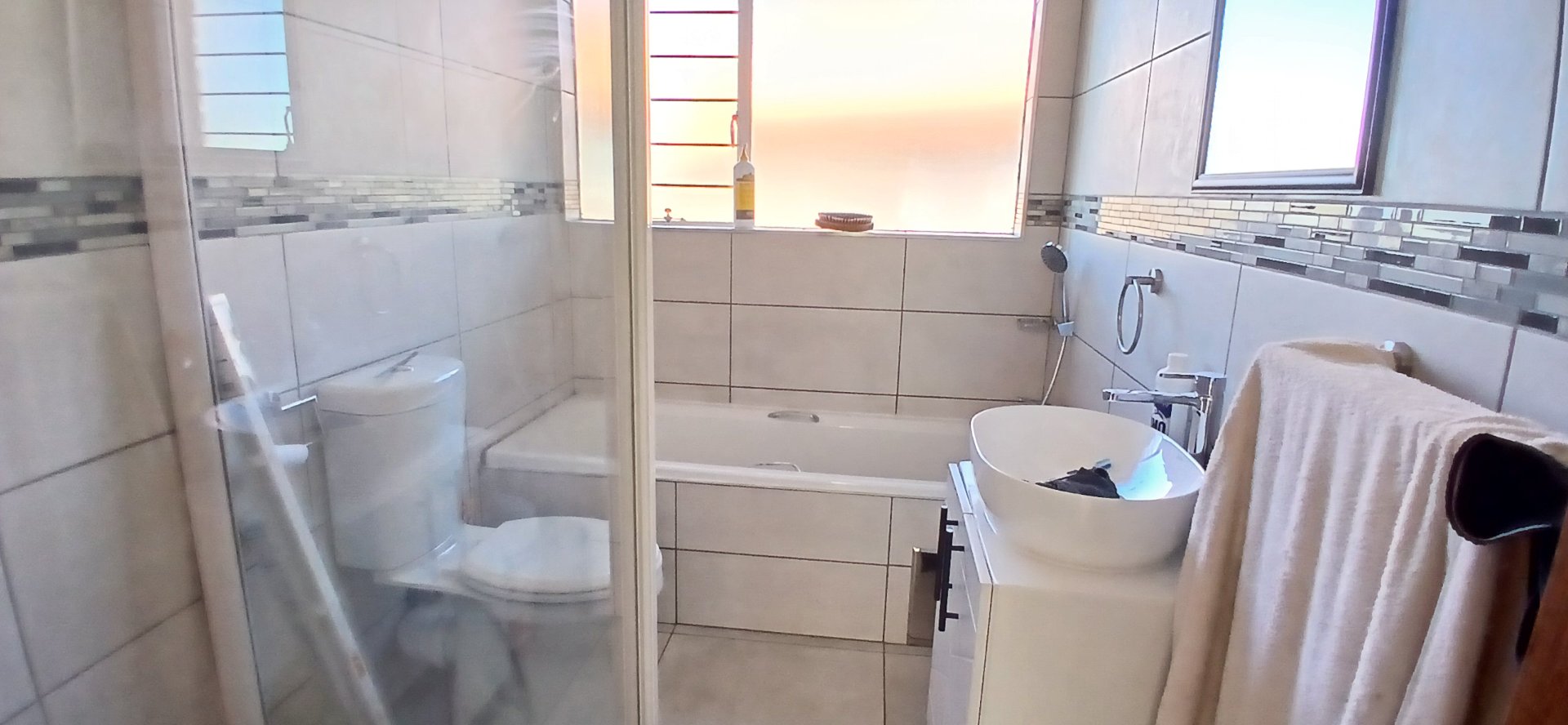 Ideal for extended family or guests, the charming flatlet includes an open-plan lounge, dining, and kitchen area, plus a private bedroom with cupboards and an en suite bathroom (toilet, basin, and bathtub with hand shower).