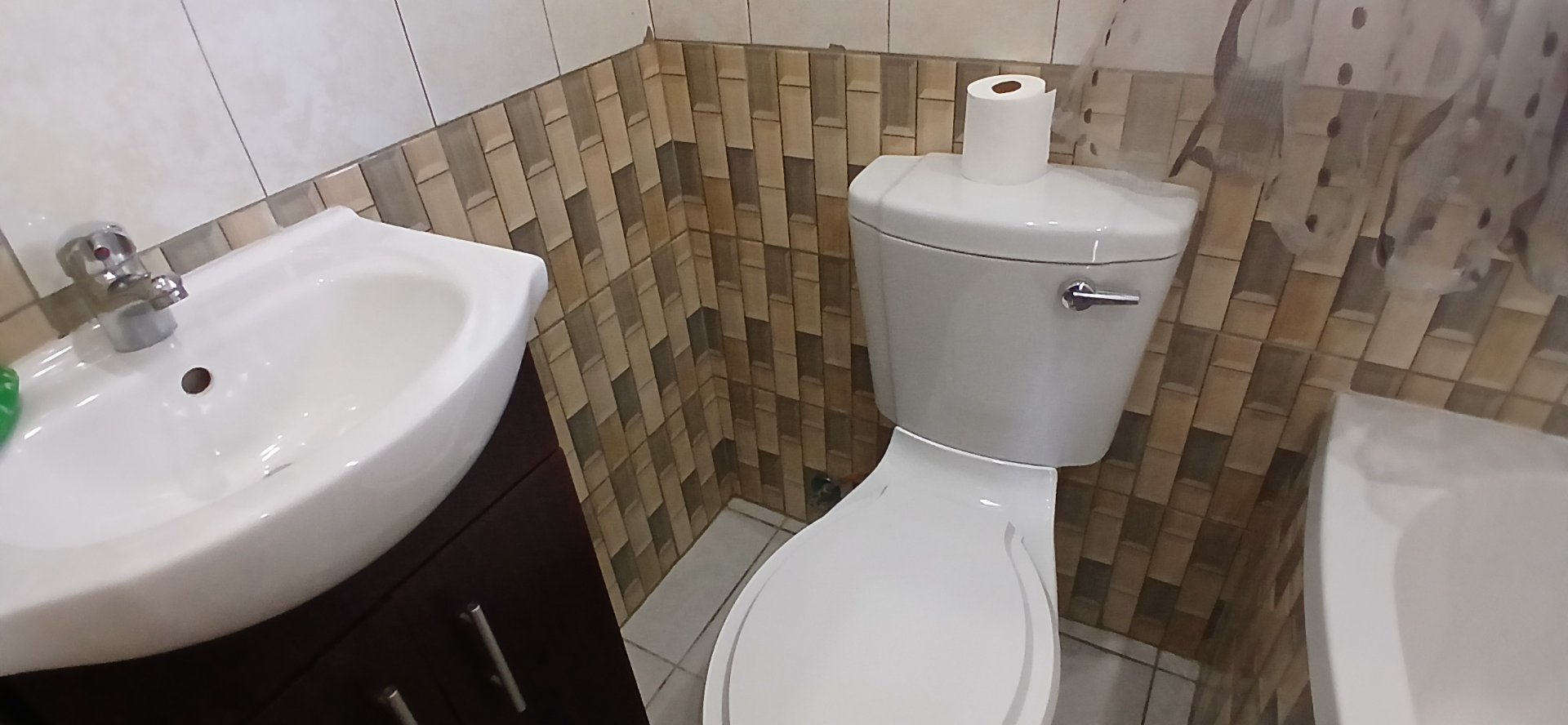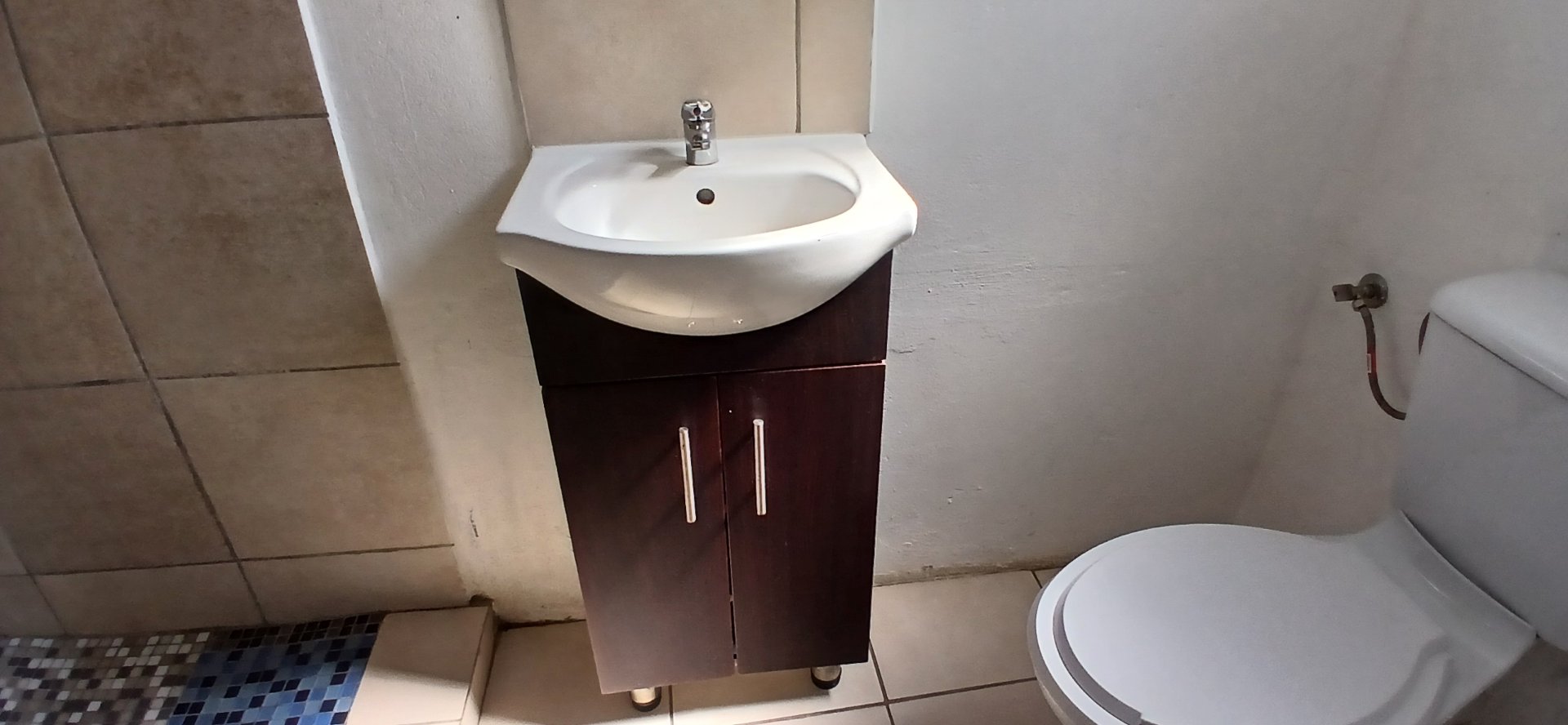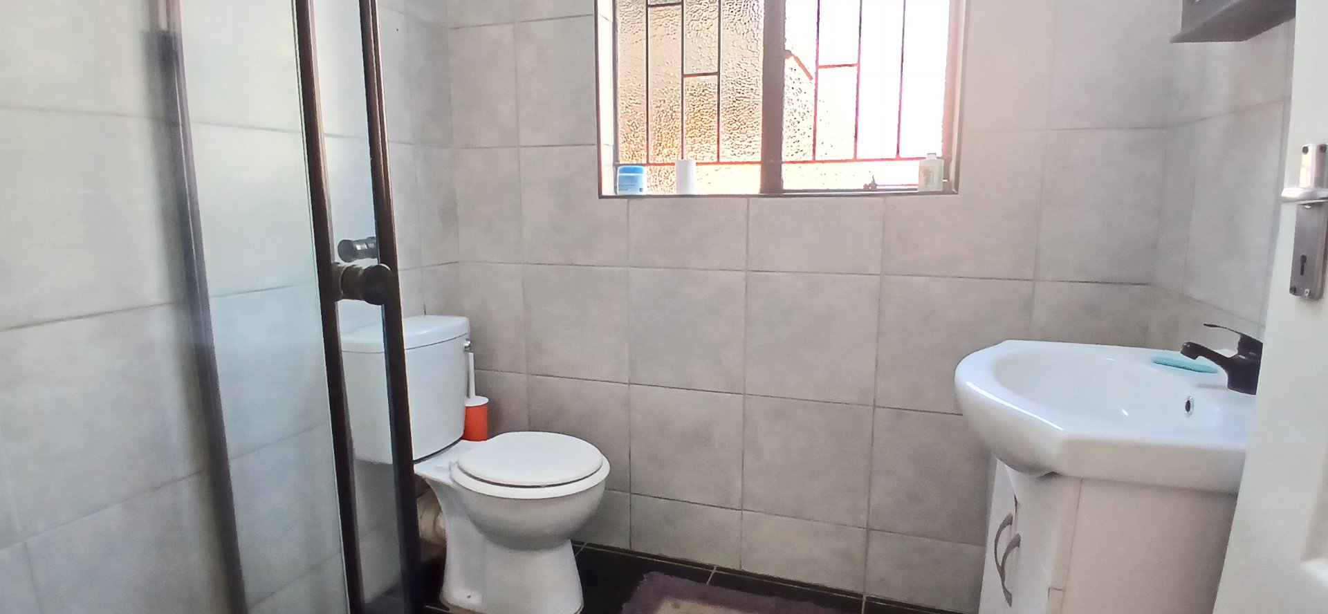 En suite bathroom with shower, toilet, and basin — ideal for a nanny, live-in helper or as a home office.