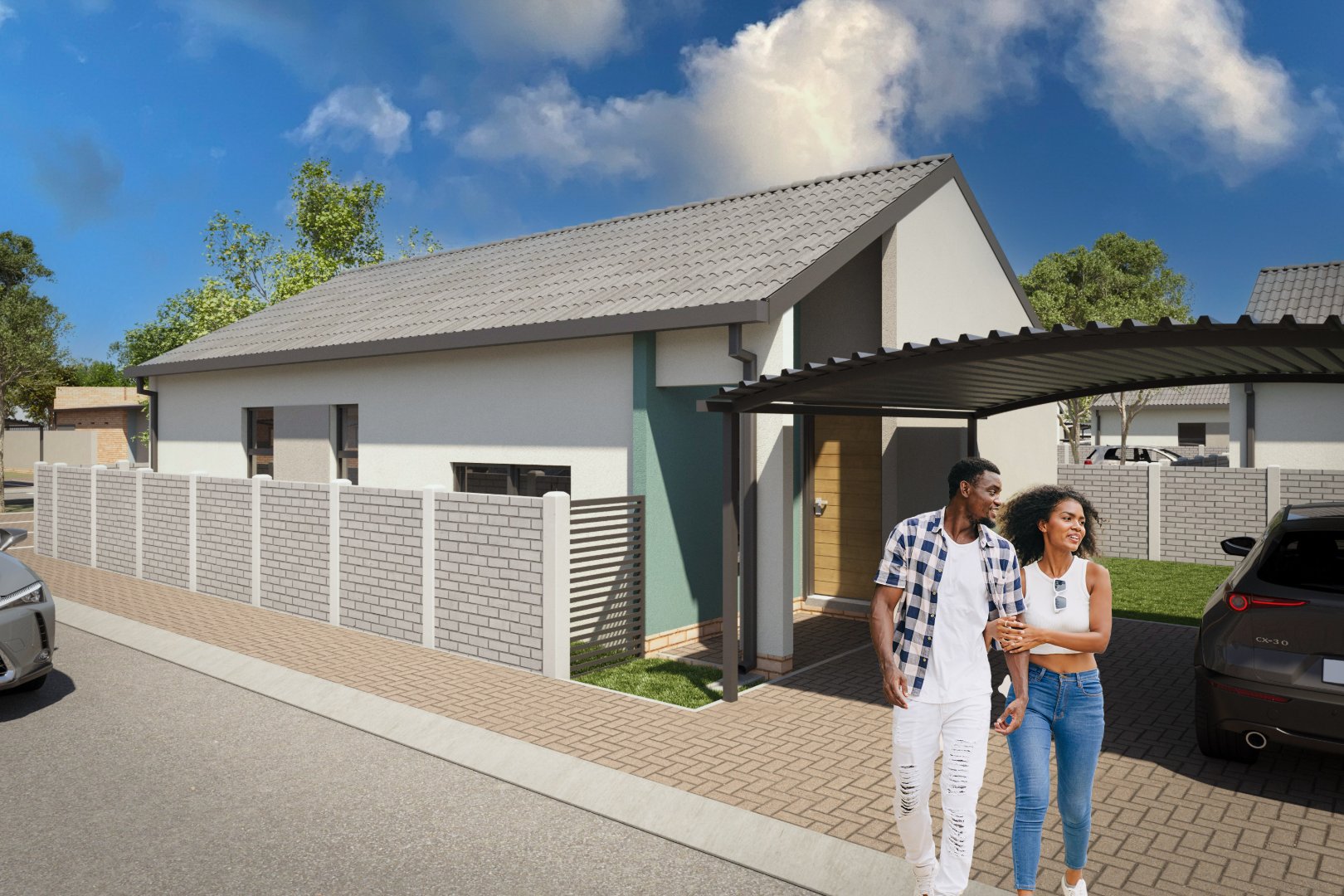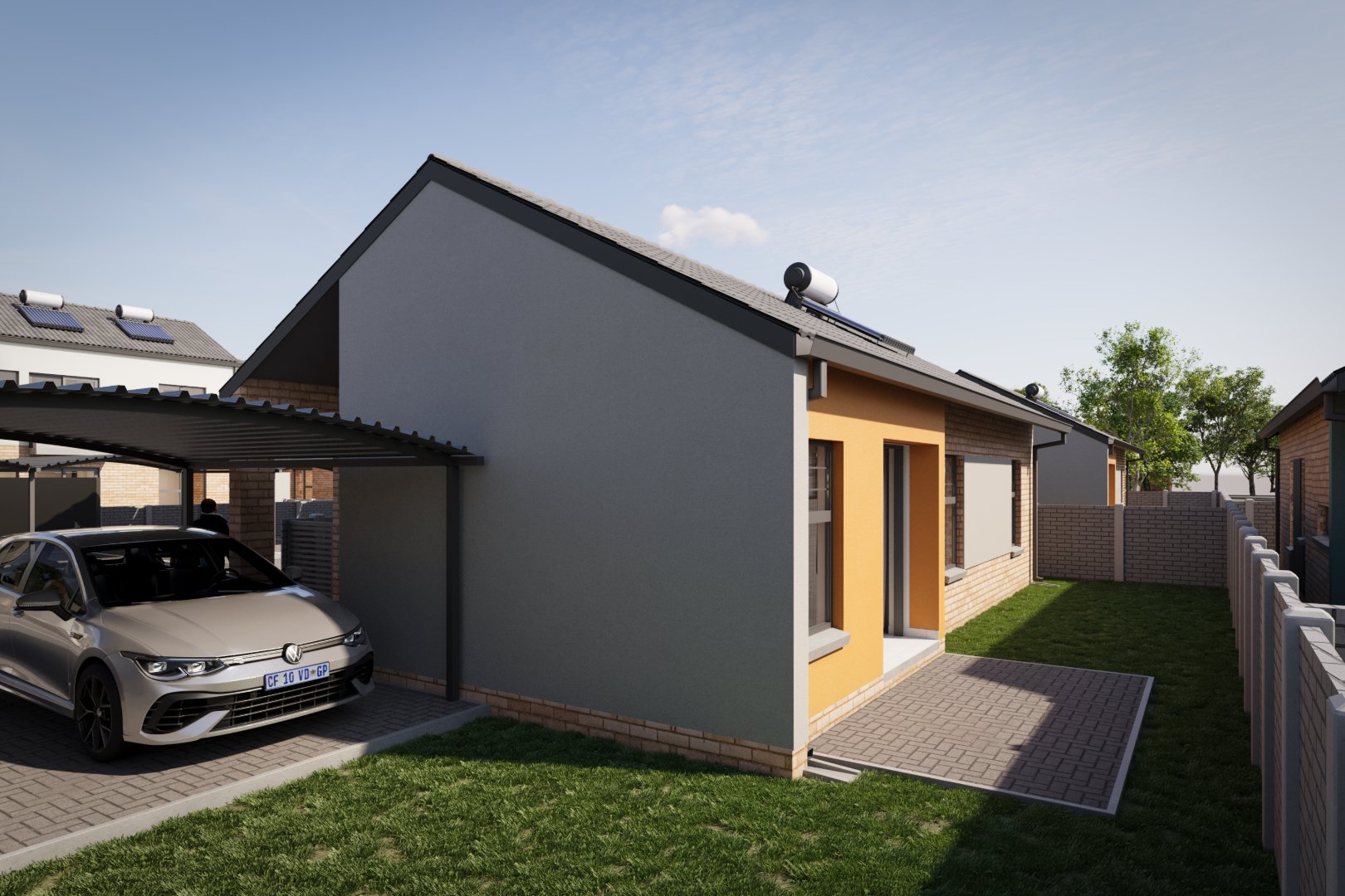 Live smart at Colorado @ Amberfield City with this modern 3-bed, 2-bath freestanding home featuring 2 carports, a private pet-friendly garden, solar panels, and a solar geyser.