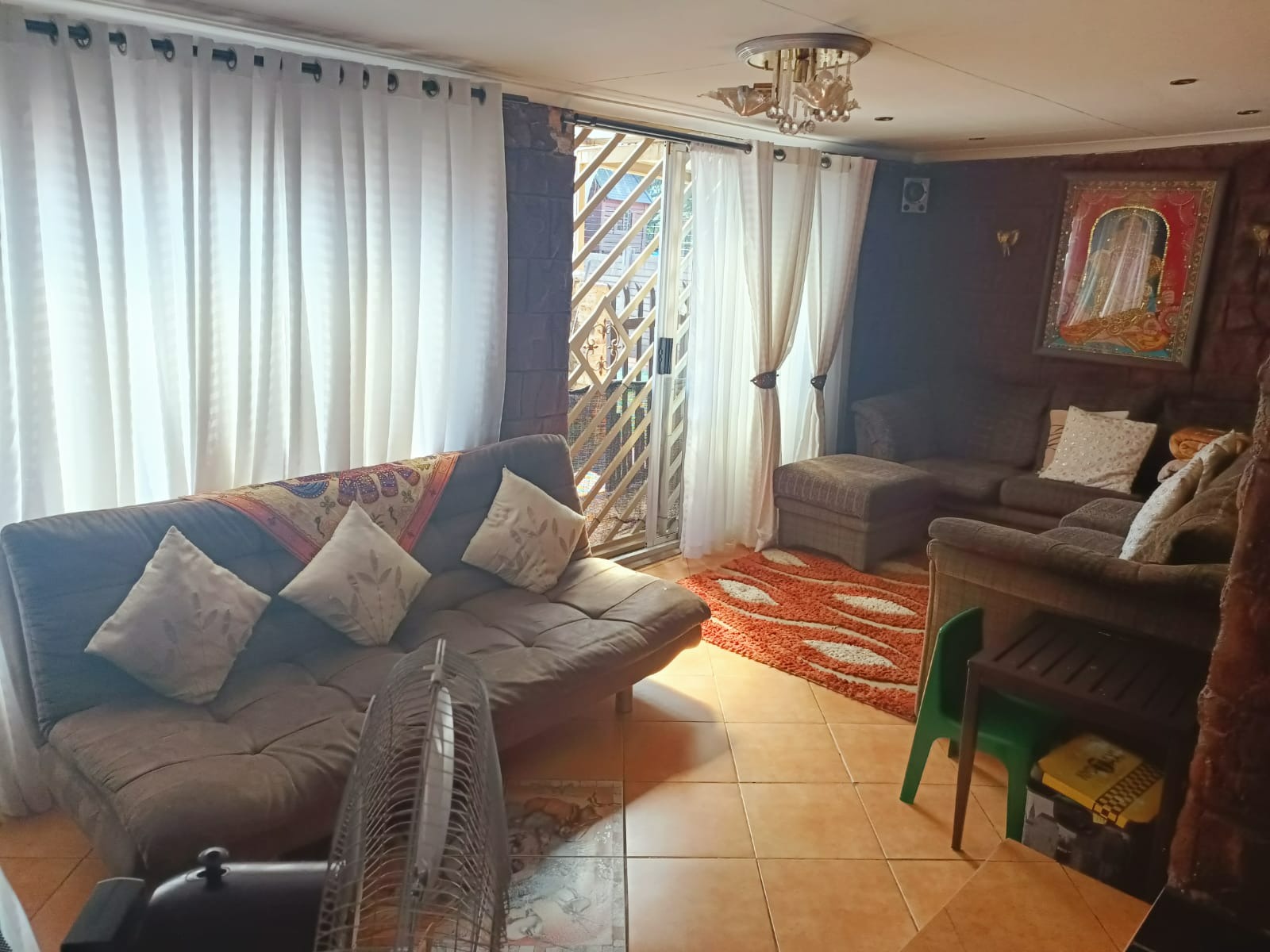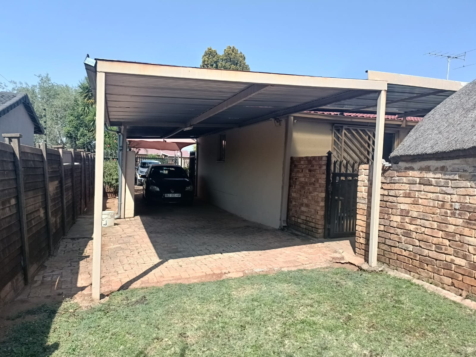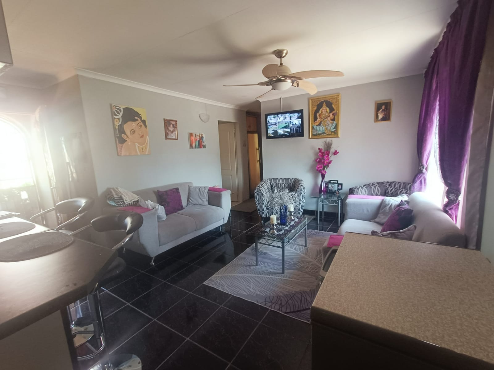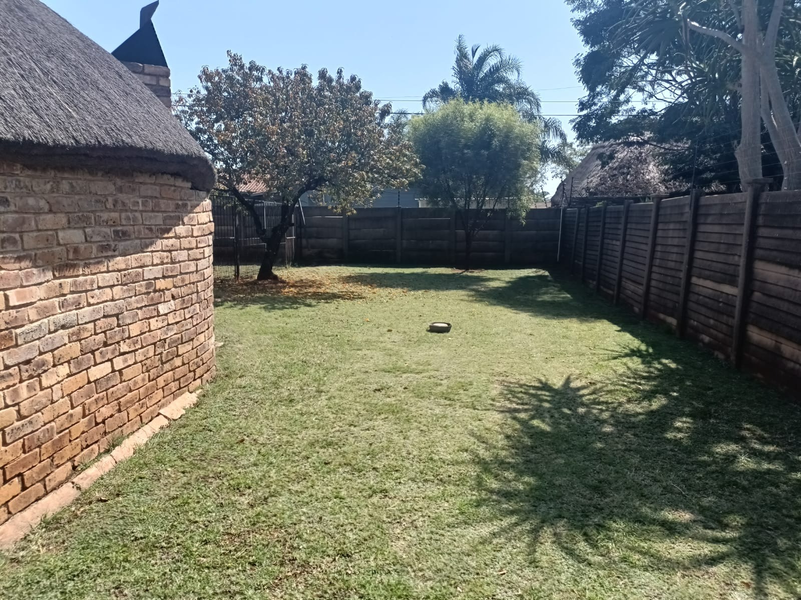 Modern-looking kitchen with ample cupboards and a breakfast nook. Open-plan living areas from where you can walk through to an entertainment area with a sparkling pool and lapa.