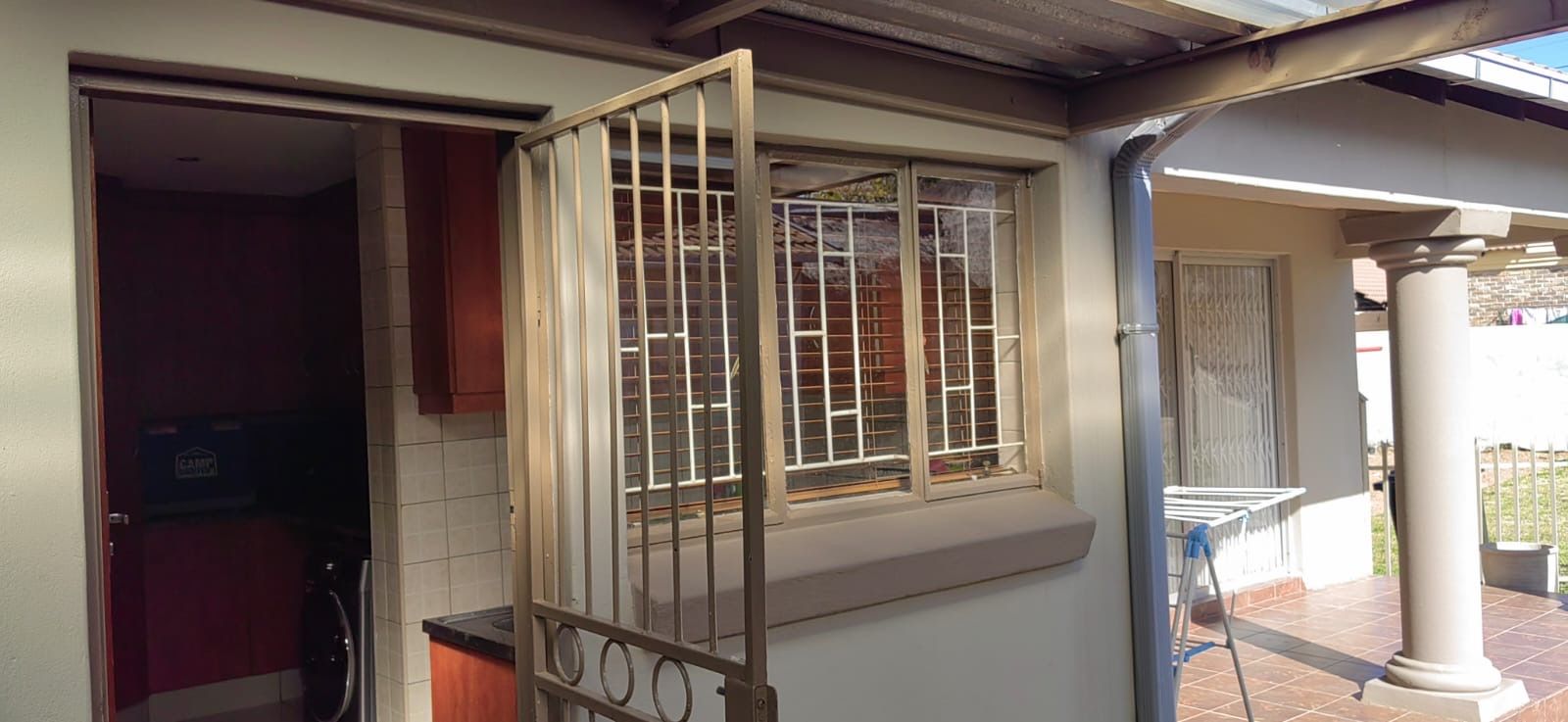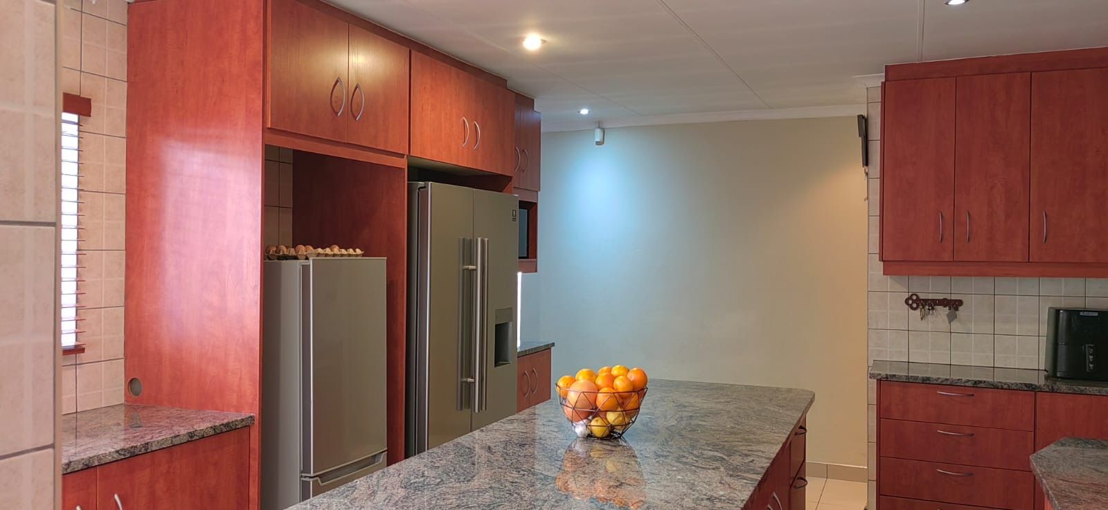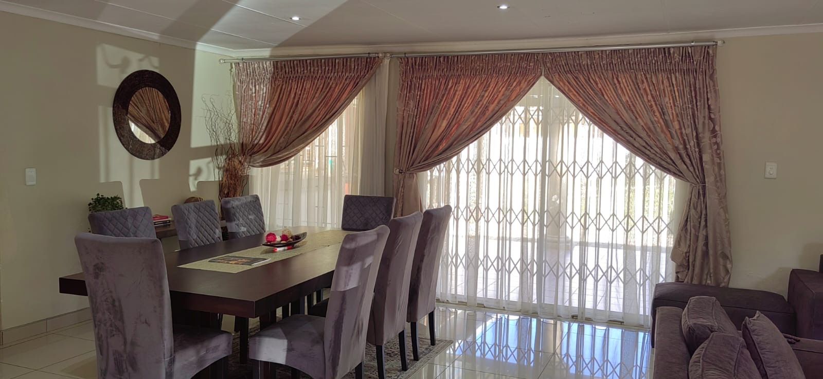 Step outside to discover an entertainer's dream: a wonderful lapa with an outside toilet, overlooking a beautiful garden – perfect for gatherings. Parking is never an issue with four garages and additional space for five vehicles. Your peace of mind is ensured with a gated property, burglar-proofed windows and electric fenced.
