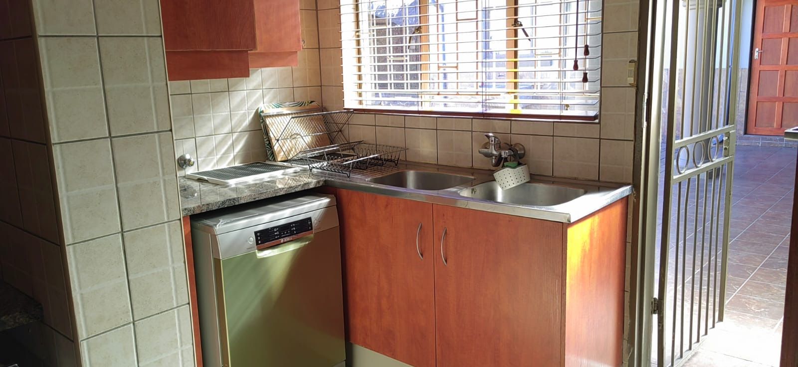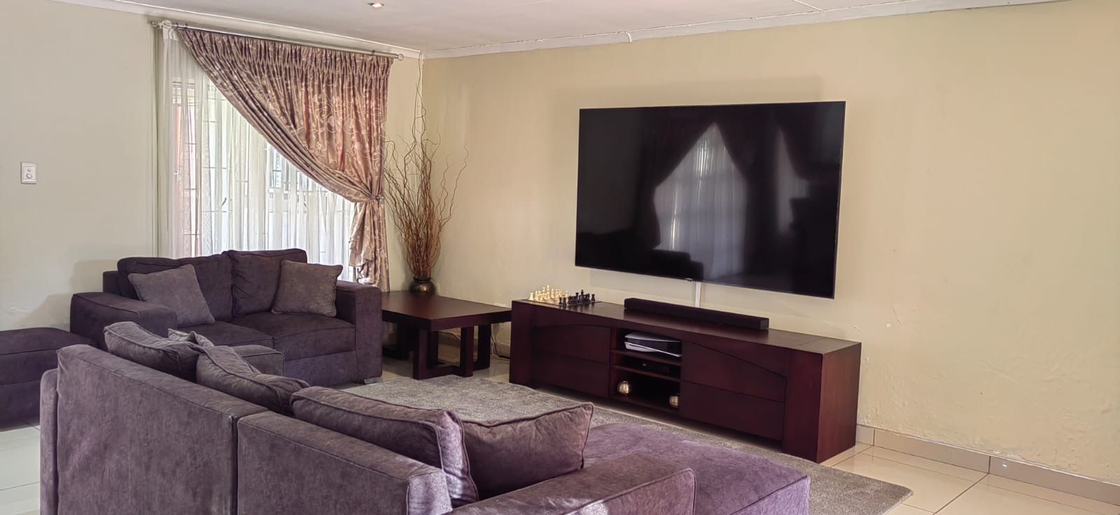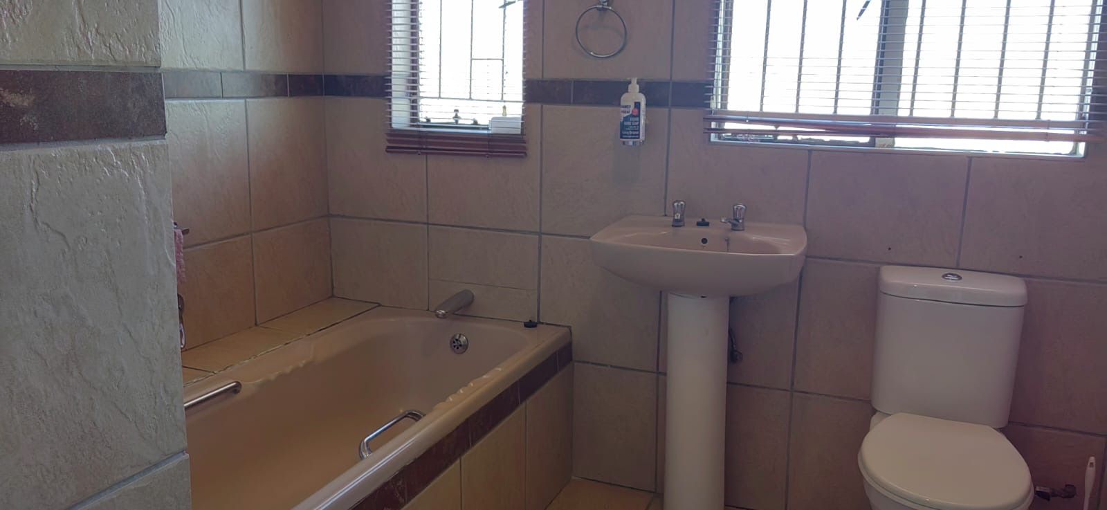 Step outside to discover an entertainer's dream: a wonderful lapa with an outside toilet, overlooking a beautiful garden – perfect for gatherings. Parking is never an issue with four garages and additional space for five vehicles. Your peace of mind is ensured with a gated property, burglar-proofed windows and electric fenced.