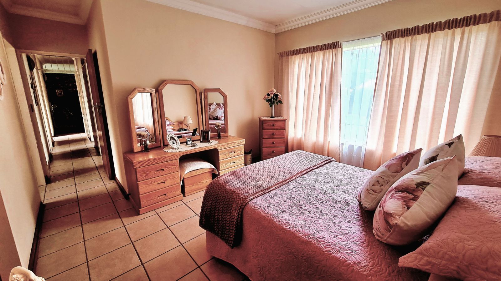 This 3-bedroom home boasts style and functionality, with beautiful tiled floors flowing seamlessly throughout. The inviting lounge, dining area, and family room create a perfect space for entertaining, while the kitchen and scullery cater to your culinary needs. Unwind in the private sanctuary of the main bedroom, complete with a walk-in closet. Two bathrooms ensure convenience for everyone.