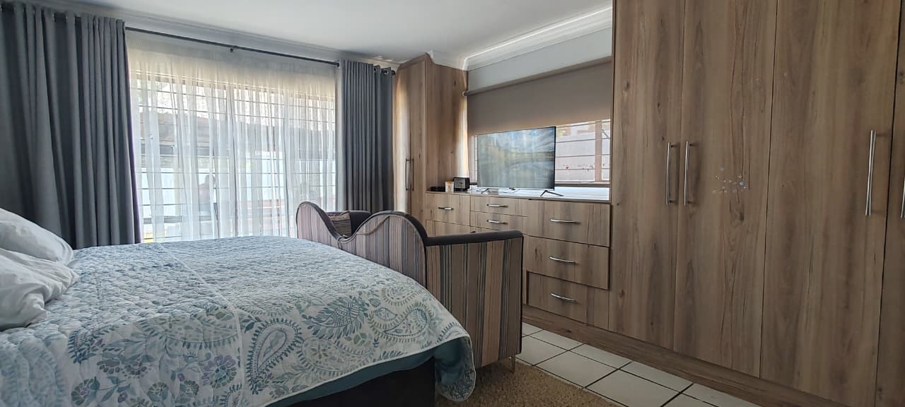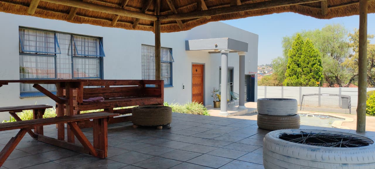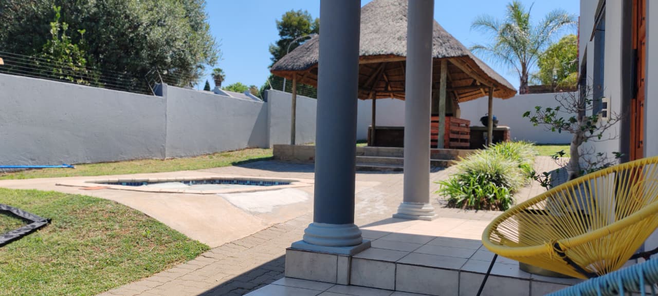 Step outside to discover a private thatched lapa that overlooks the beautifully landscaped garden and pool area, providing a serene entertainment space for braais, social gatherings, and leisurely weekends. The meticulously maintained lawn and surroundings enhance the tranquility of the outdoor space, making it perfect for children and pets.