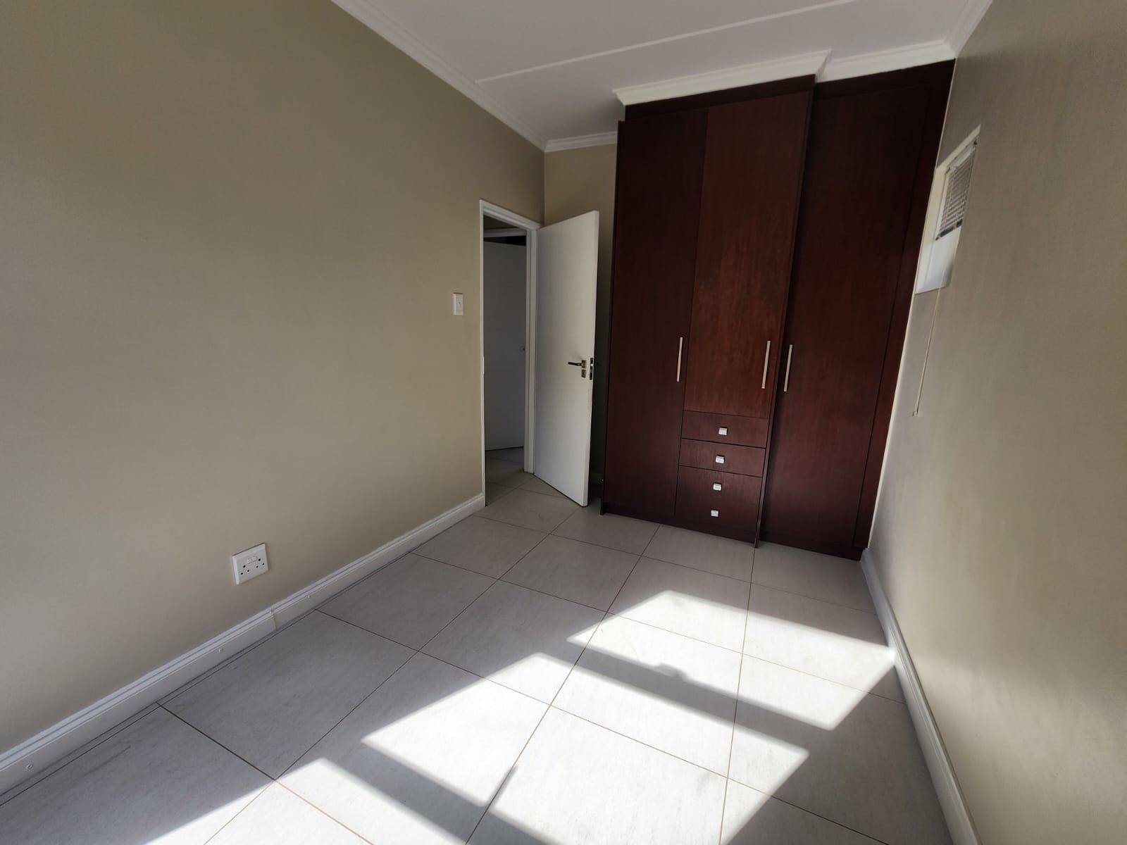This neat two-bedroom apartment offers comfortable and convenient living within a secure complex. The home features an open-plan lounge that leads onto a private balcony, perfect for relaxing or entertaining. The kitchen is well-equipped with built-in cupboards, an under-counter oven, hob, and extractor fan.