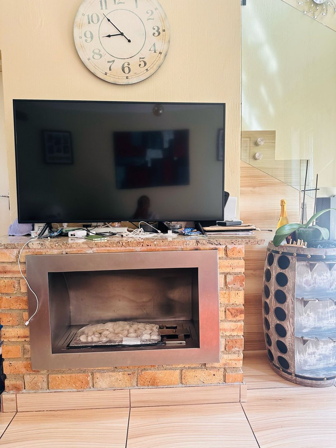 - Beautiful tilled open plan living area with build-in fire place a nice garden view and build-in electricity fire place.