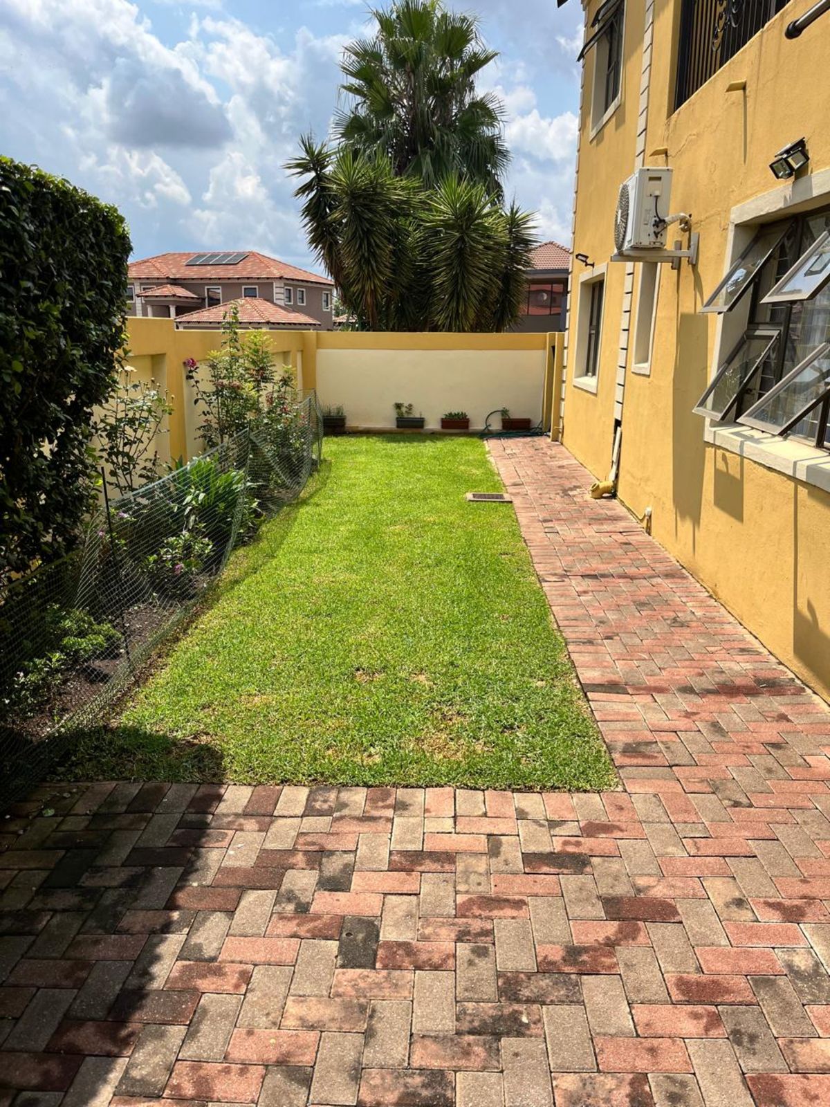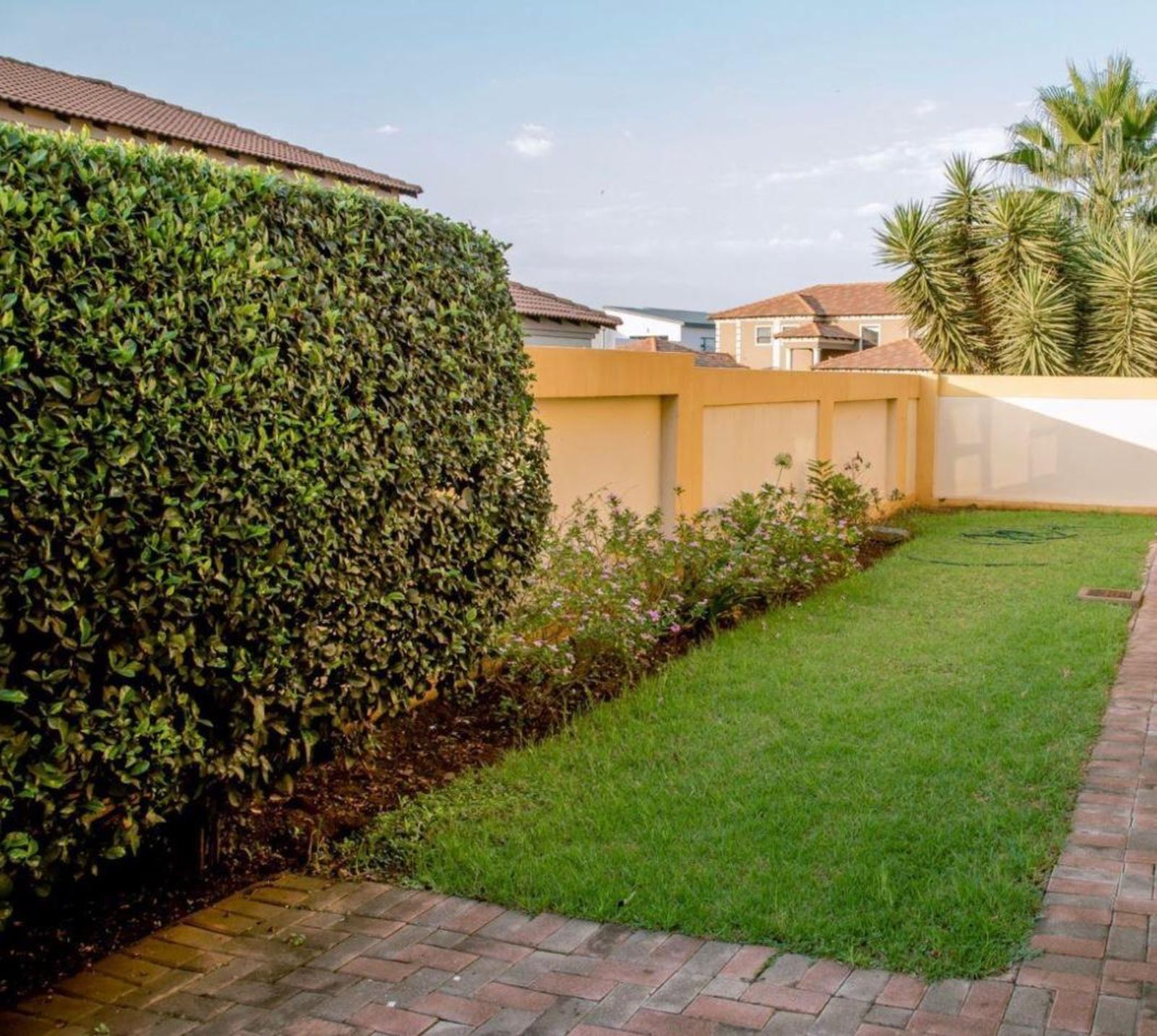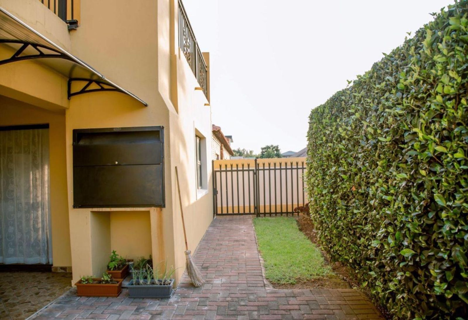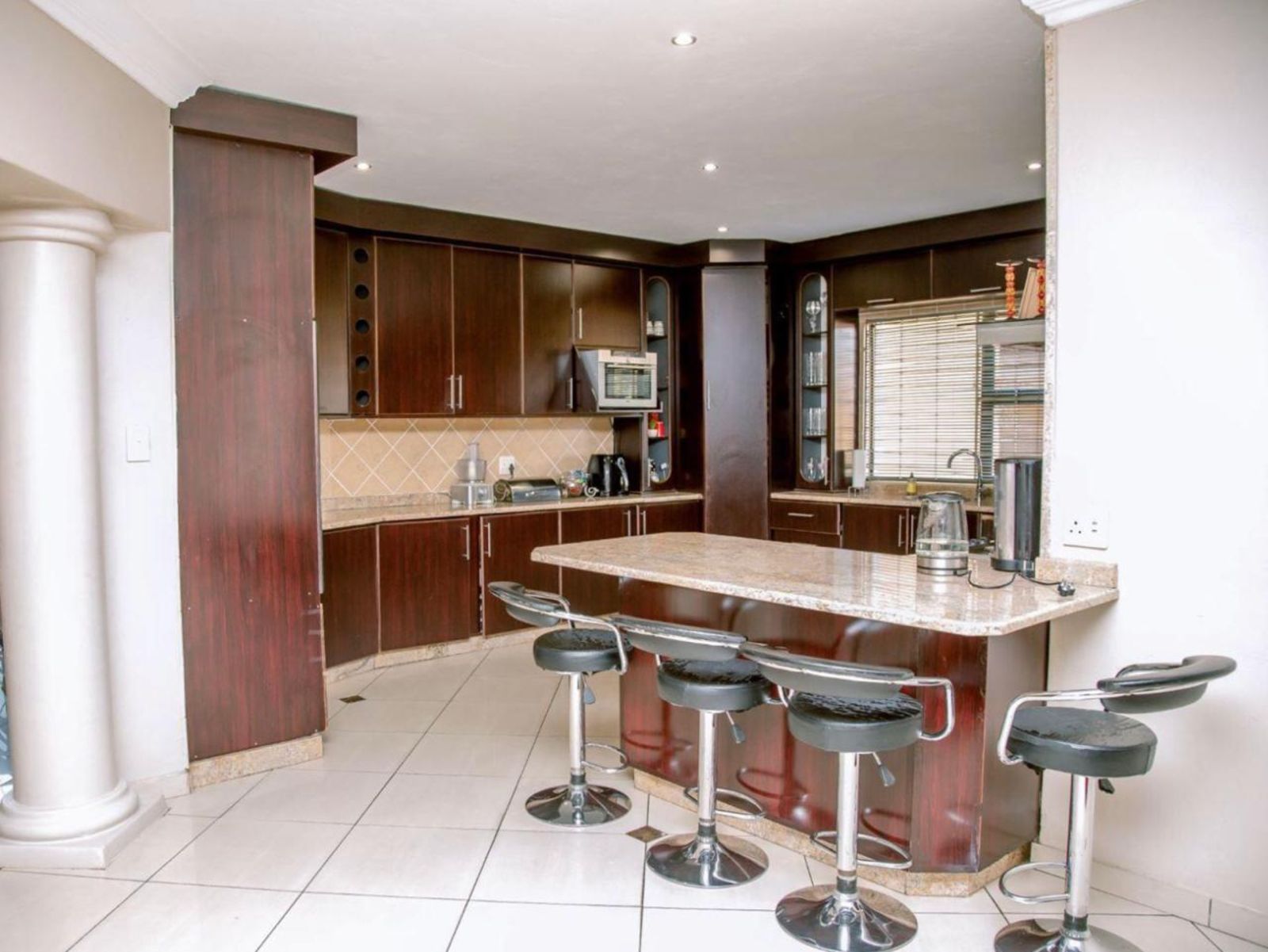 The contemporary kitchen is both stylish and functional, featuring granite countertops, a pantry, gas hob, eye-level oven, and space for a double-door refrigerator.