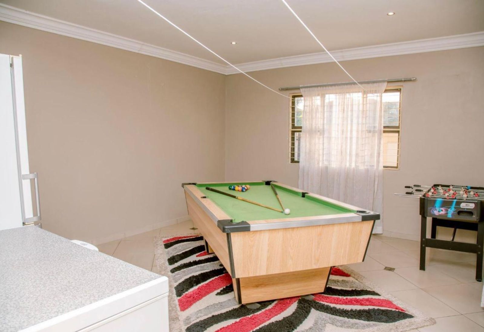 -A spacious entertainment room that opens onto a covered patio with a built-in braai—ideal for hosting guests