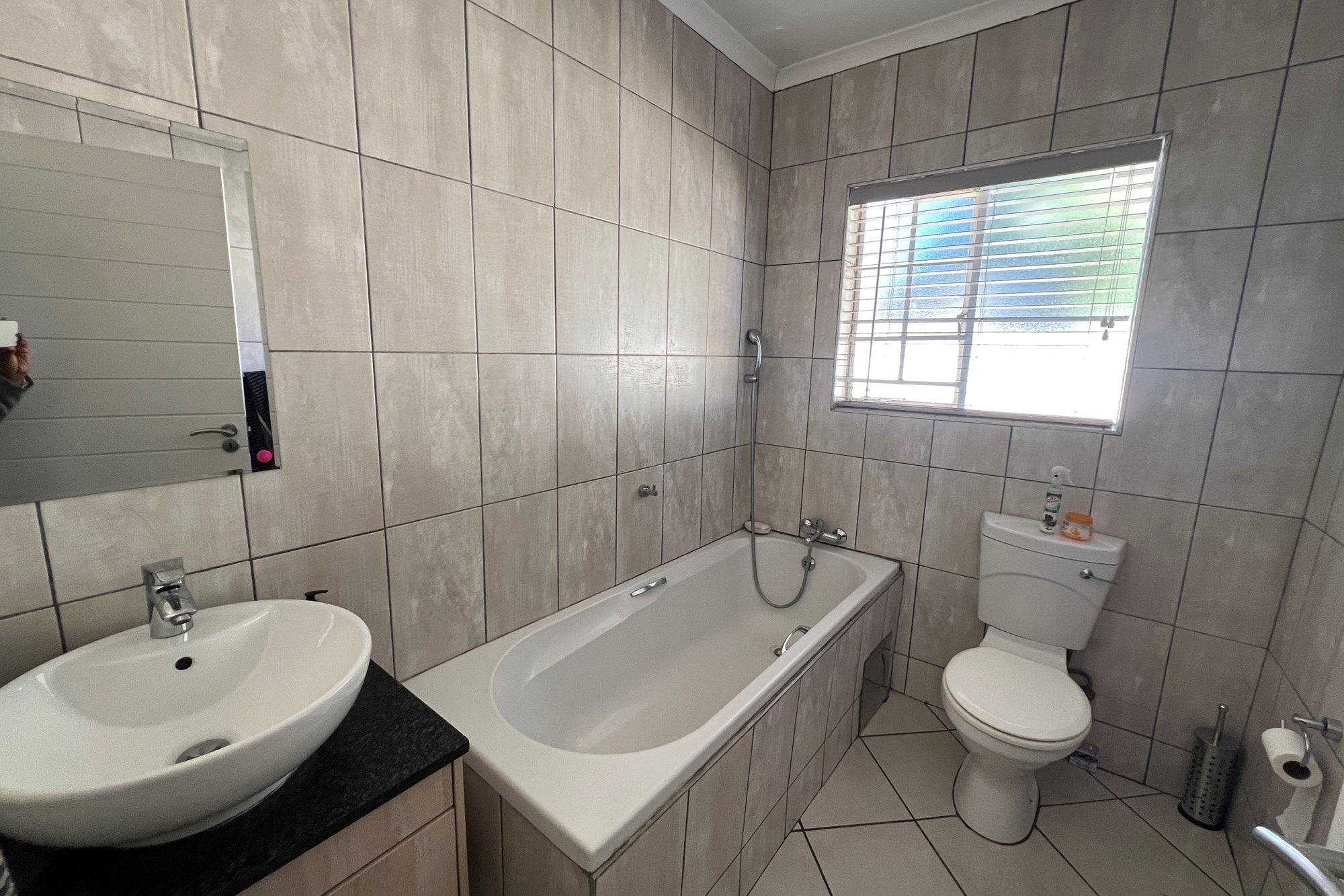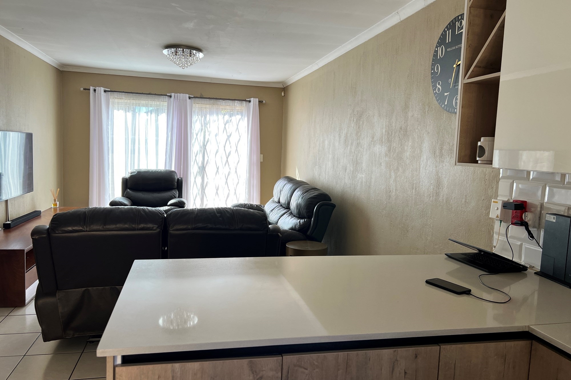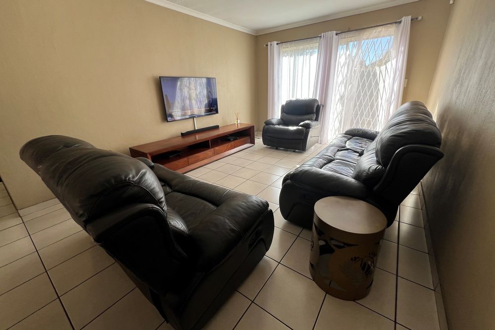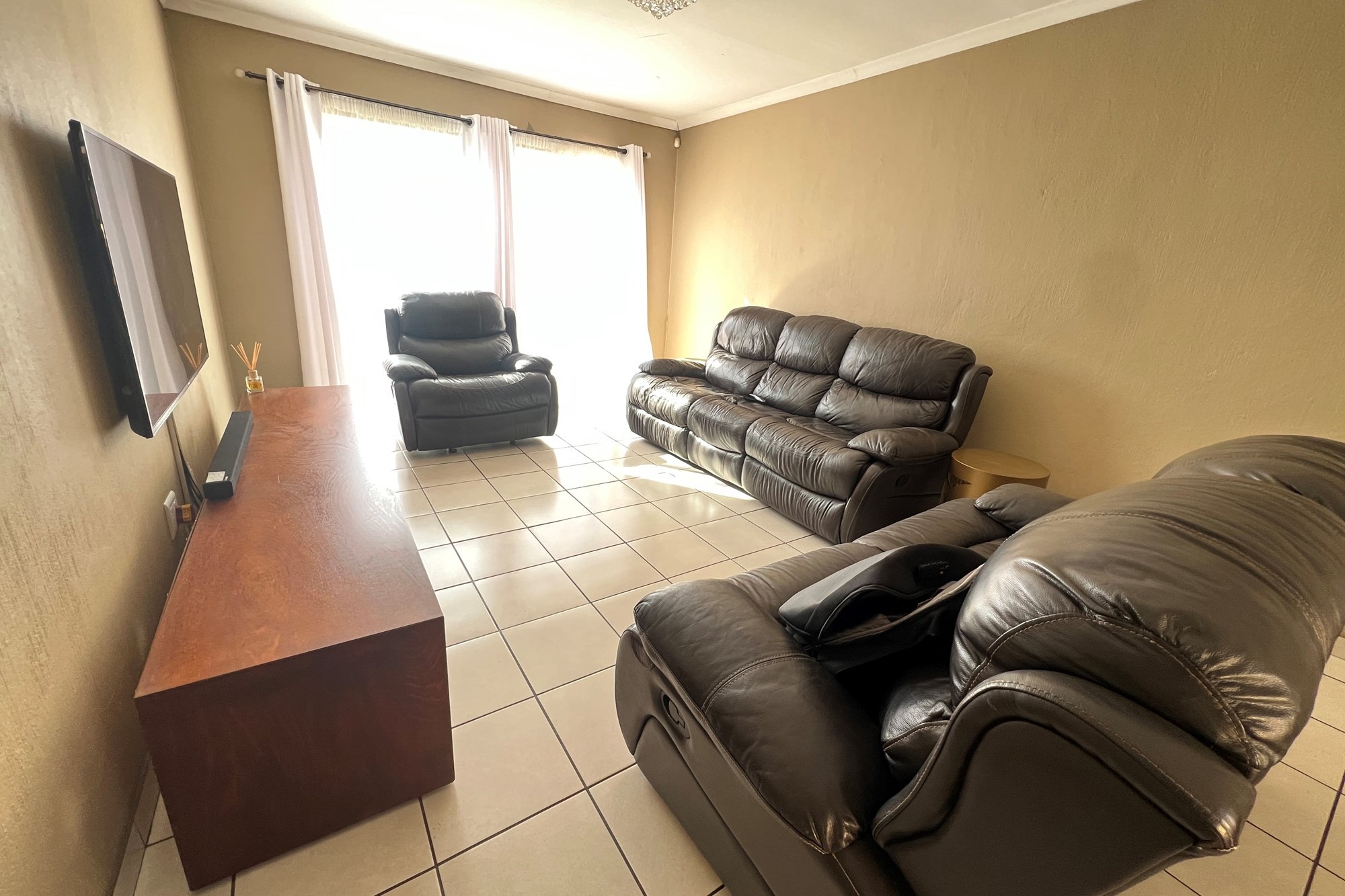 This neat and well-kept home is located in the secure Heuwilsig Estate and offers comfortable family living. It features 3 bedrooms and 2 bathrooms, including a main en-suite with a shower, basin, toilet. There’s is 2 carports suitable for parking.