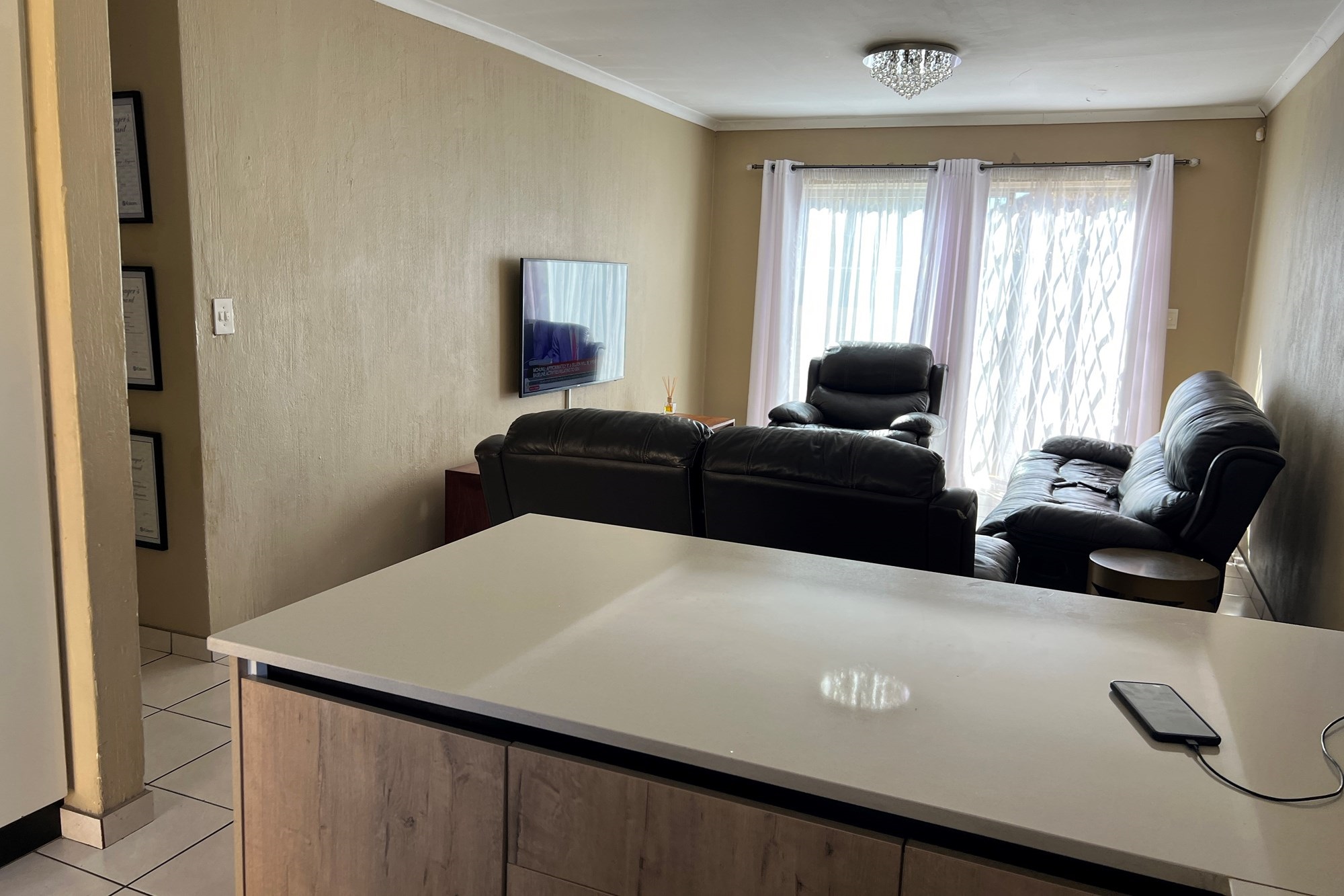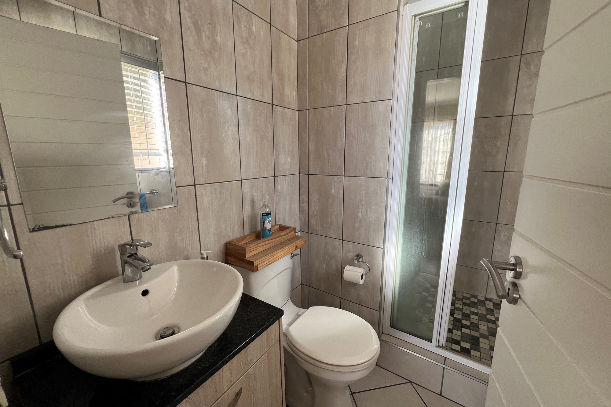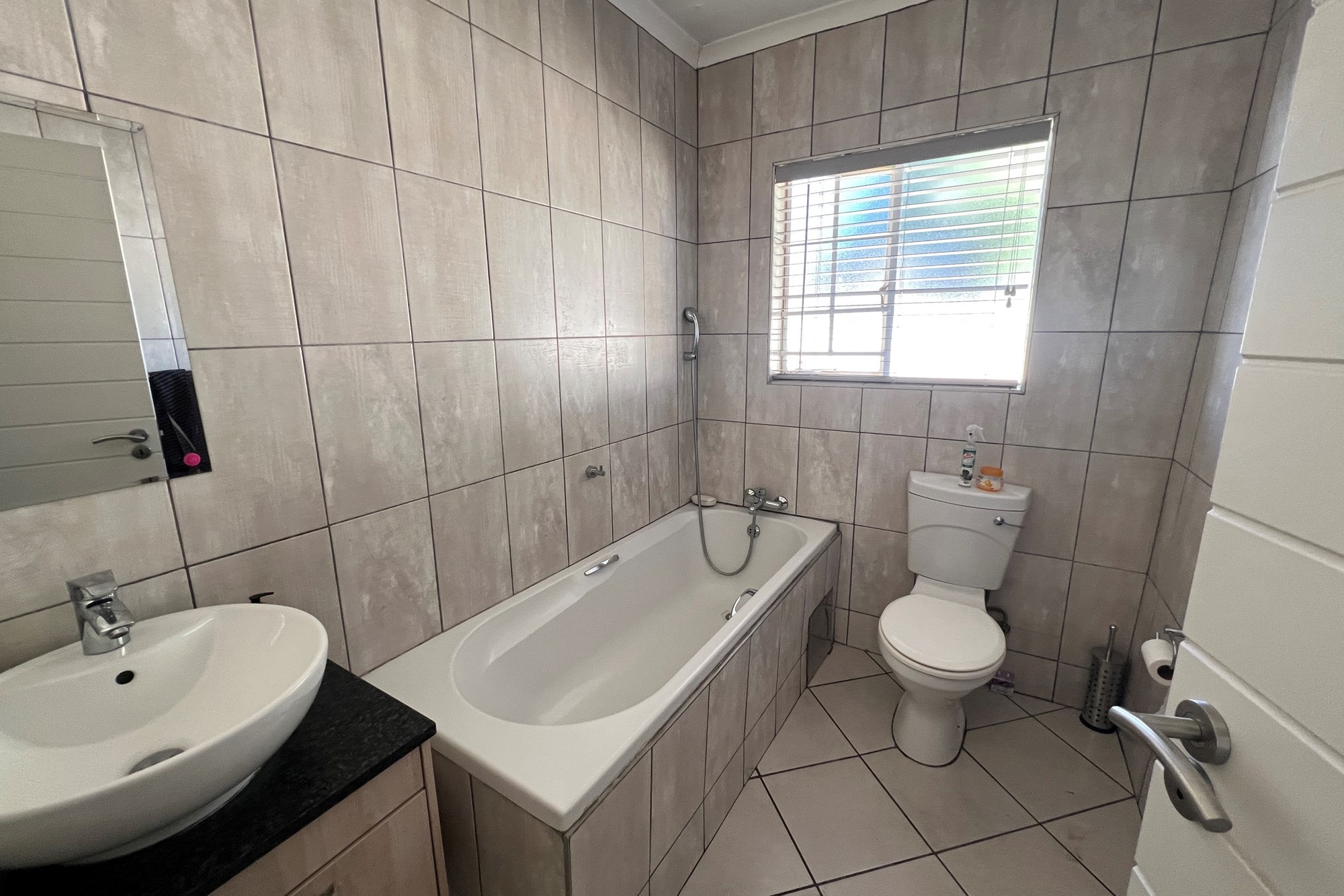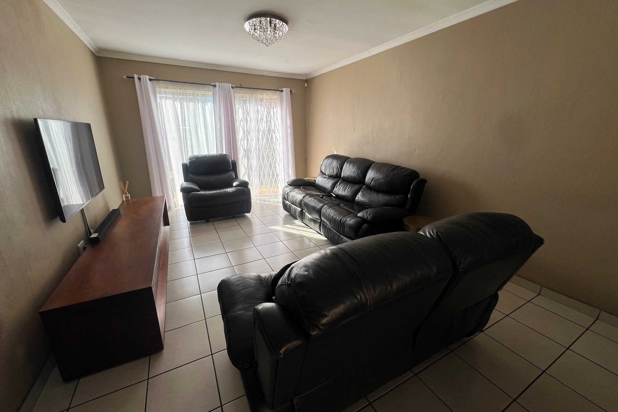 This neat and well-kept home is located in the secure Heuwilsig Estate and offers comfortable family living. It features 3 bedrooms and 2 bathrooms, including a main en-suite with a shower, basin, toilet. There’s is 2 carports suitable for parking.
