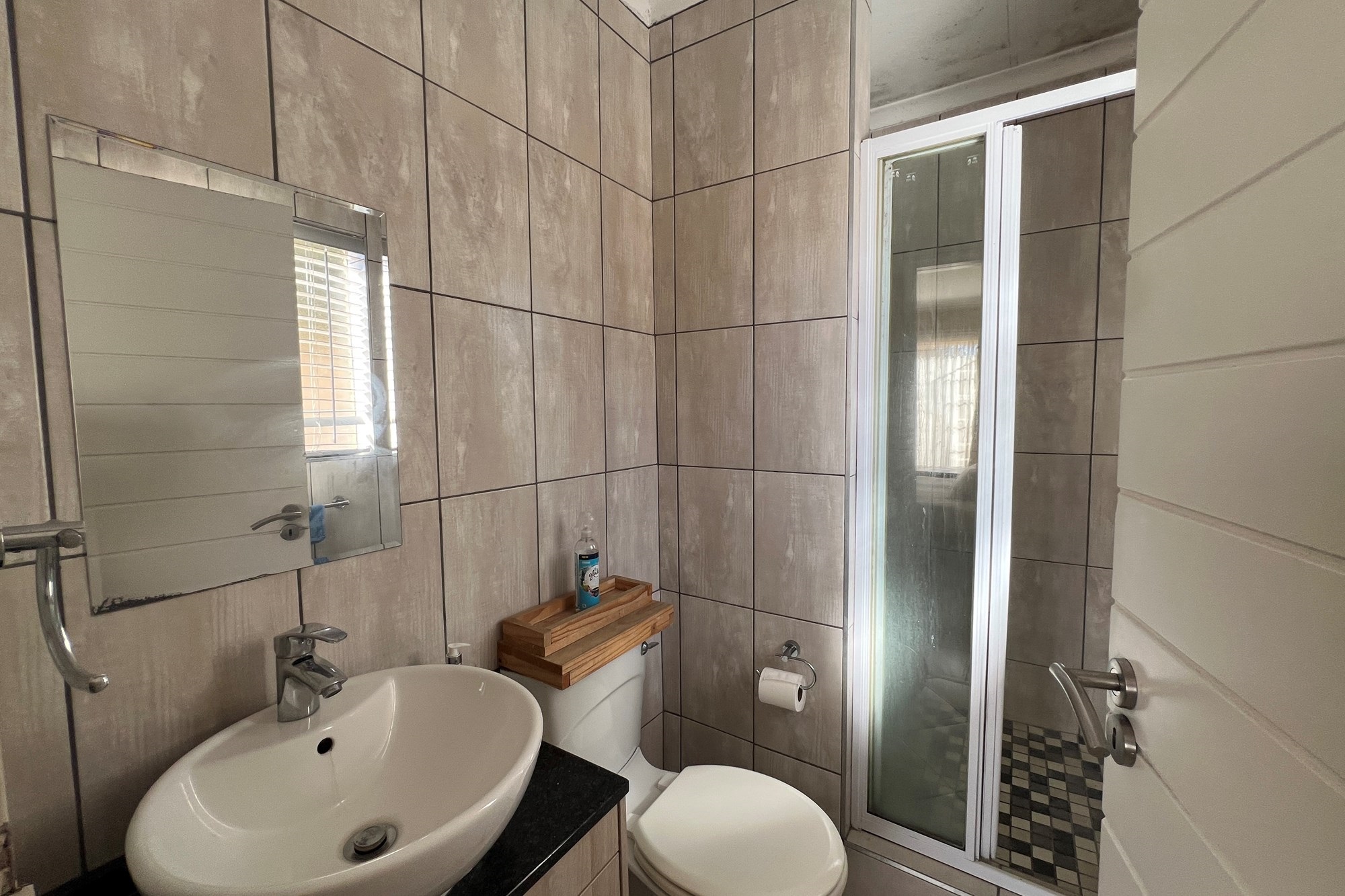 A second bathroom with a bathtub, basin, and toilet serves the remaining bedrooms. The property also boasts a large garden, ideal for kids or pets, A Wendy house and a carport that can fit two cars, with extra visitor parking available.