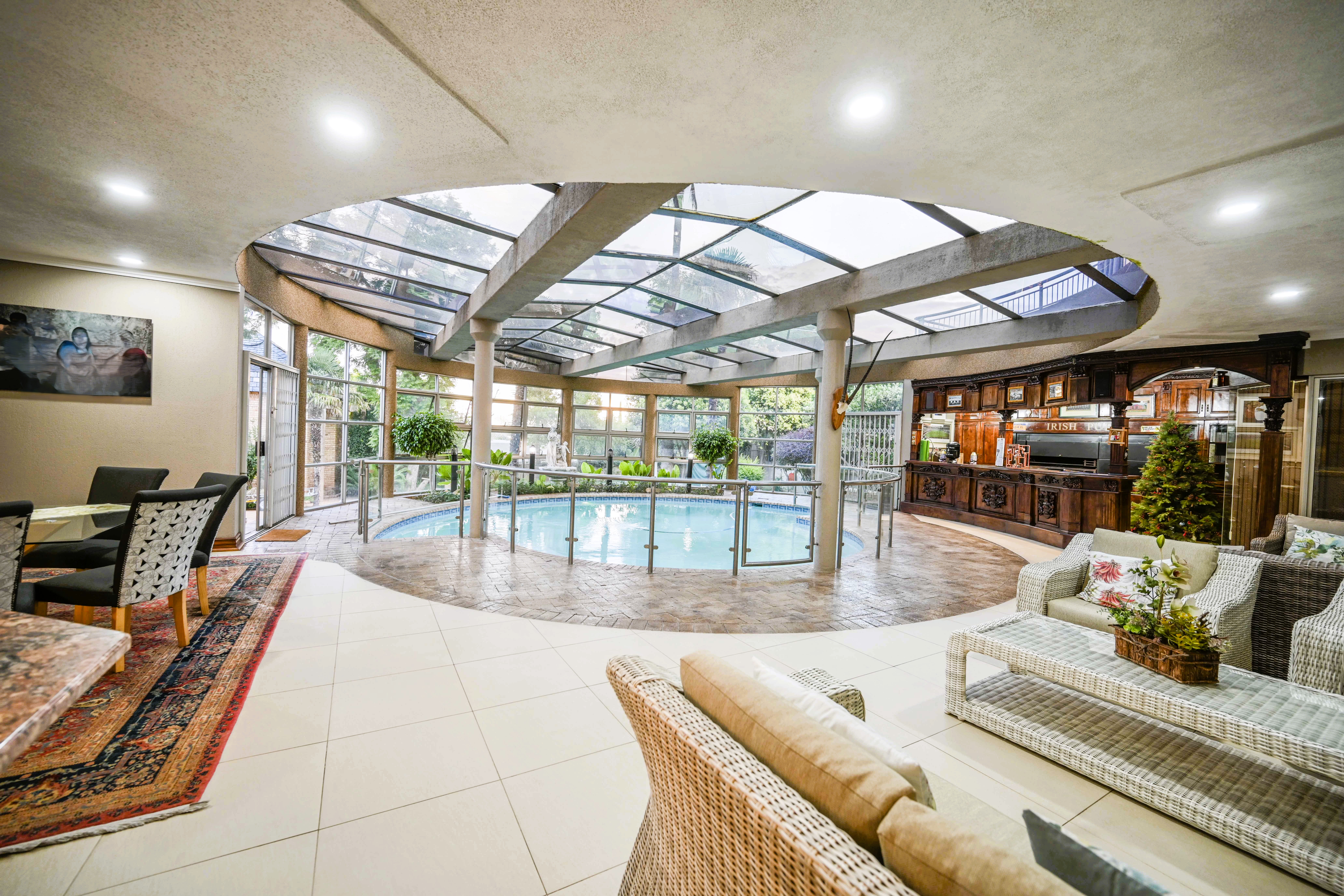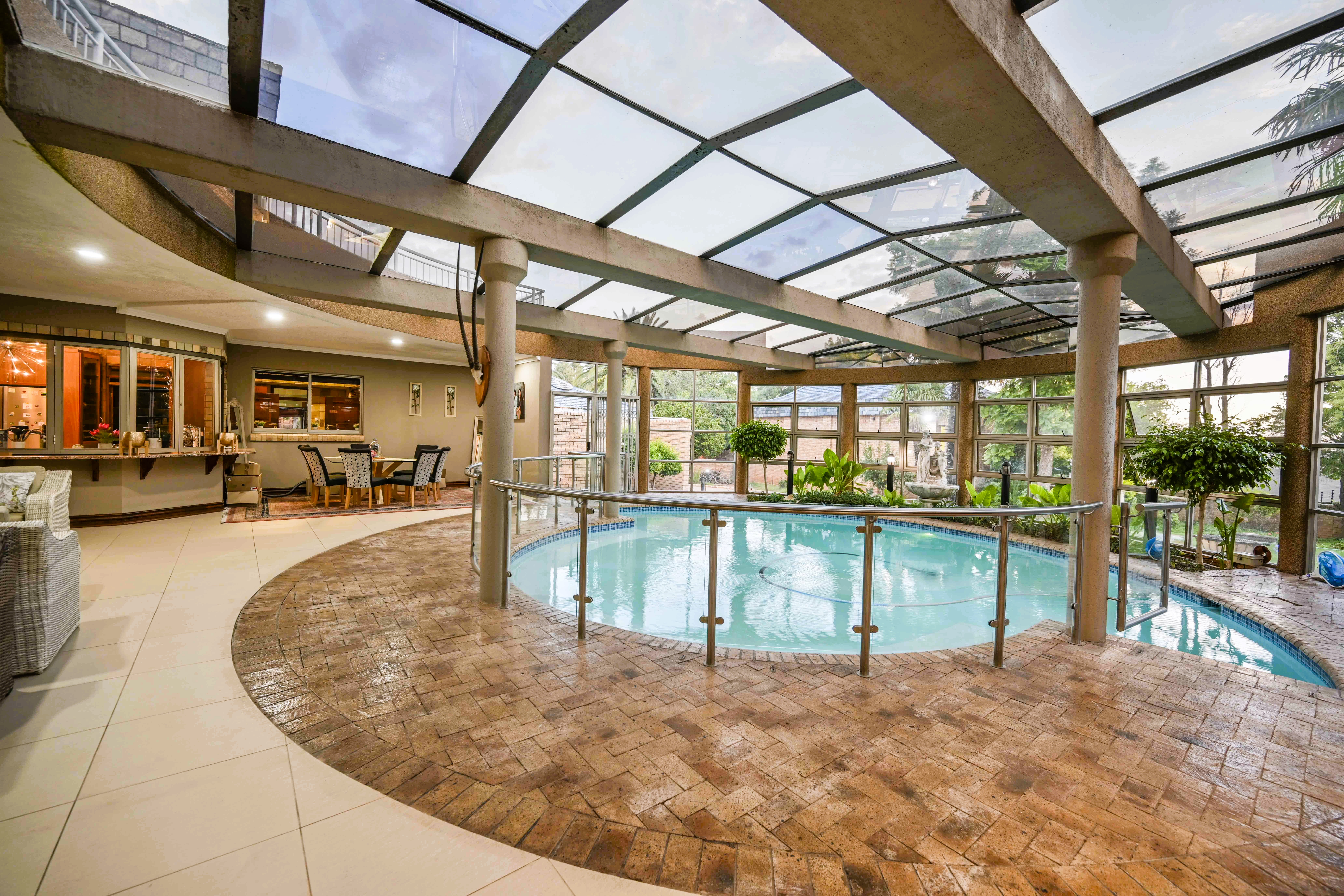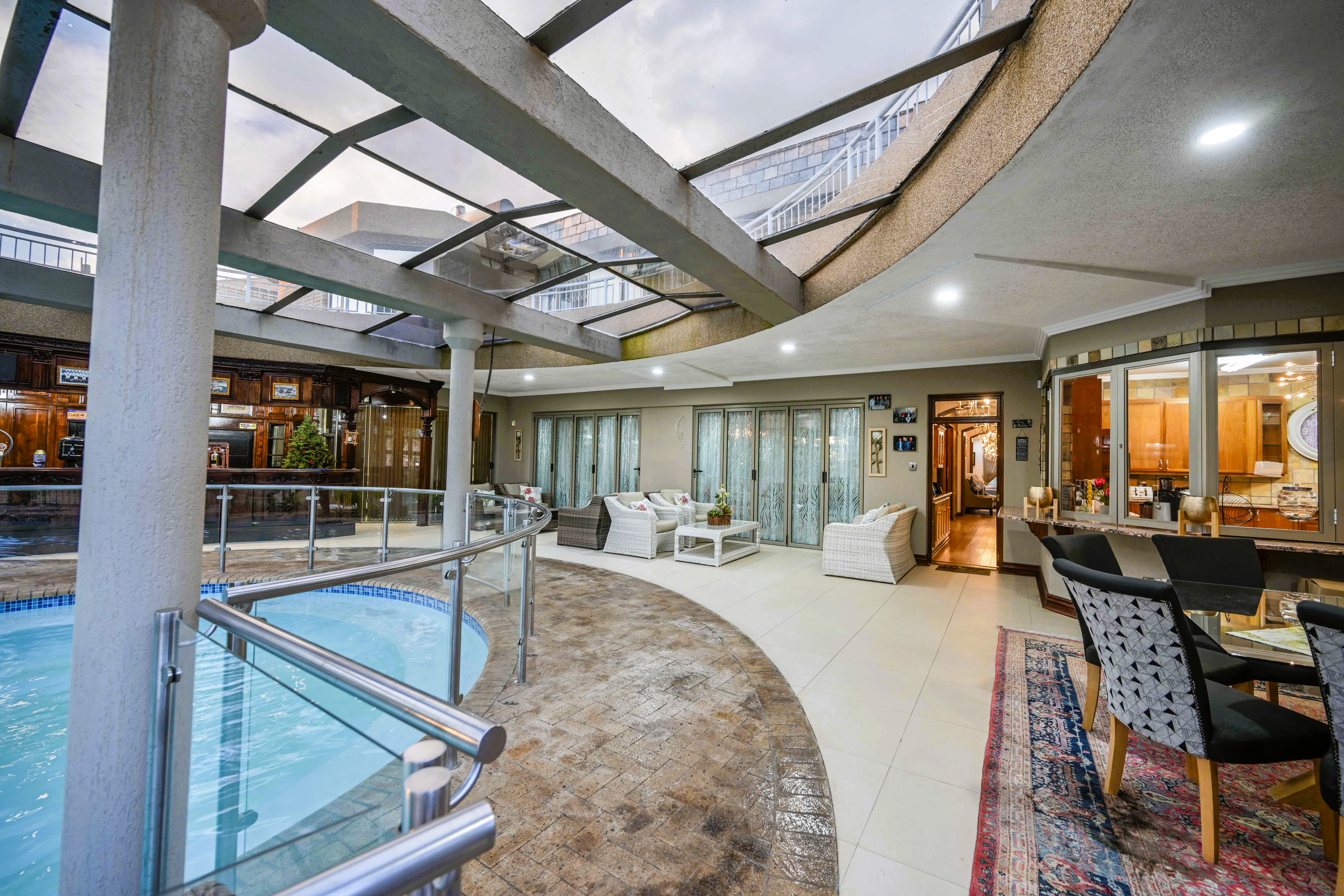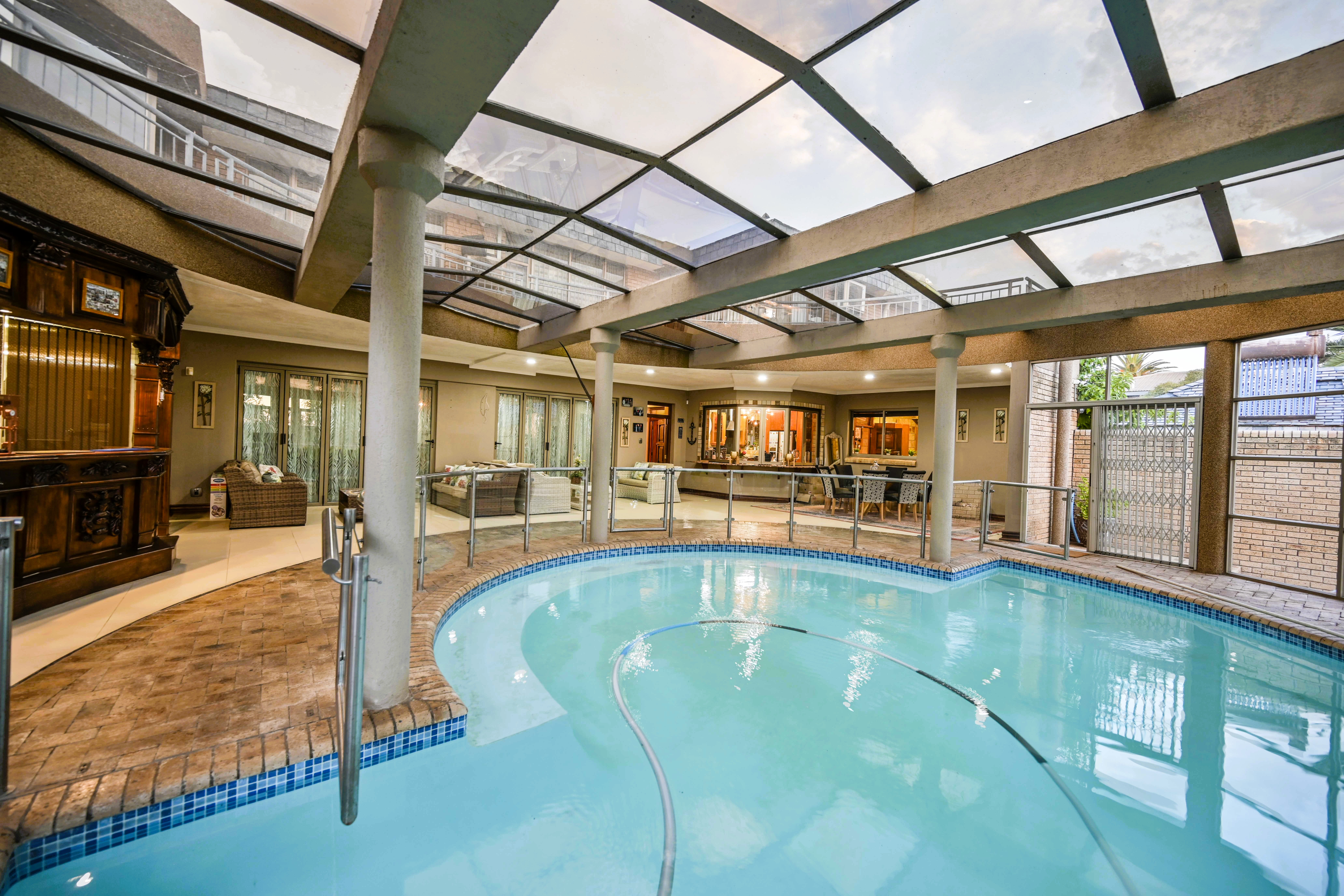 Step into a realm of unparalleled architectural elegance, where soaring ceilings and strategically placed skylights bathe the expansive interiors in a continuous glow of natural light. From the moment you cross the threshold of the inviting entrance hall, the home radiates a sense of sophisticated warmth and executive stature. Designed for those who demand excellence, the ground floor seamlessly integrates a formal lounge that spills out onto manicured gardens with vast, open-plan living areas tailored for high-level entertaining. At the heart of this social hub is a masterpiece kitchen—a chef’s dream equipped with a premium gas stove, a bespoke breakfast nook, and a comprehensive scullery and laundry suite to ensure seamless household management. Designed as an all-encompassing private resort, this estate redefines the concept of home wellness and recreation. Experience the zenith of leisure with a magnificent indoor swimming pool housed under a canopy of glass, allowing for year-round dips regardless of the weather. The entertainment wing is further elevated by a designer bar area featuring an indoor built-in braai, creating the perfect atmosphere for hosting guests. For the active executive, the property is a rare find, boasting its own private gym and a full-sized squash court—ensuring that peak physical performance is just a few steps from your living room. Ascend the bespoke wooden staircase to a sanctuary of rest and refinement on the upper level. The residence offers five palatial bedrooms, each a masterpiece of comfort featuring plush carpeted flooring, sleek modern cabinetry, and individual climate control. Four designer bathrooms serve these suites, including a guest wing with a full ensuite. The primary suite is a true tour de force of luxury, featuring an expansive private balcony, double "his and hers" walk-in dressing rooms, and a spa-like ensuite bathroom centered around a deep-soaking jetted tub—offering a serene escape from the demands of the corporate world. Beyond the aesthetic brilliance lies an infrastructure built for absolute self-sufficiency and peace of mind. This property is a fortress of utility, equipped with a powerful 25 KVA generator, a high-yield borehole, and dual 2500L water storage tanks to ensure uninterrupted luxury. The grounds provide a vast garden for reflection, staff quarters, and extensive parking for an executive fleet. Security is paramount, featuring a state-of-the-art CCTV system and elite-level measures that provide a secure cocoon for your family. This is more than a home; it is an enduring legacy of success and a statement of lifestyle without compromise. Phone Annette Kasselman now to schedule your exclusive viewing appointment