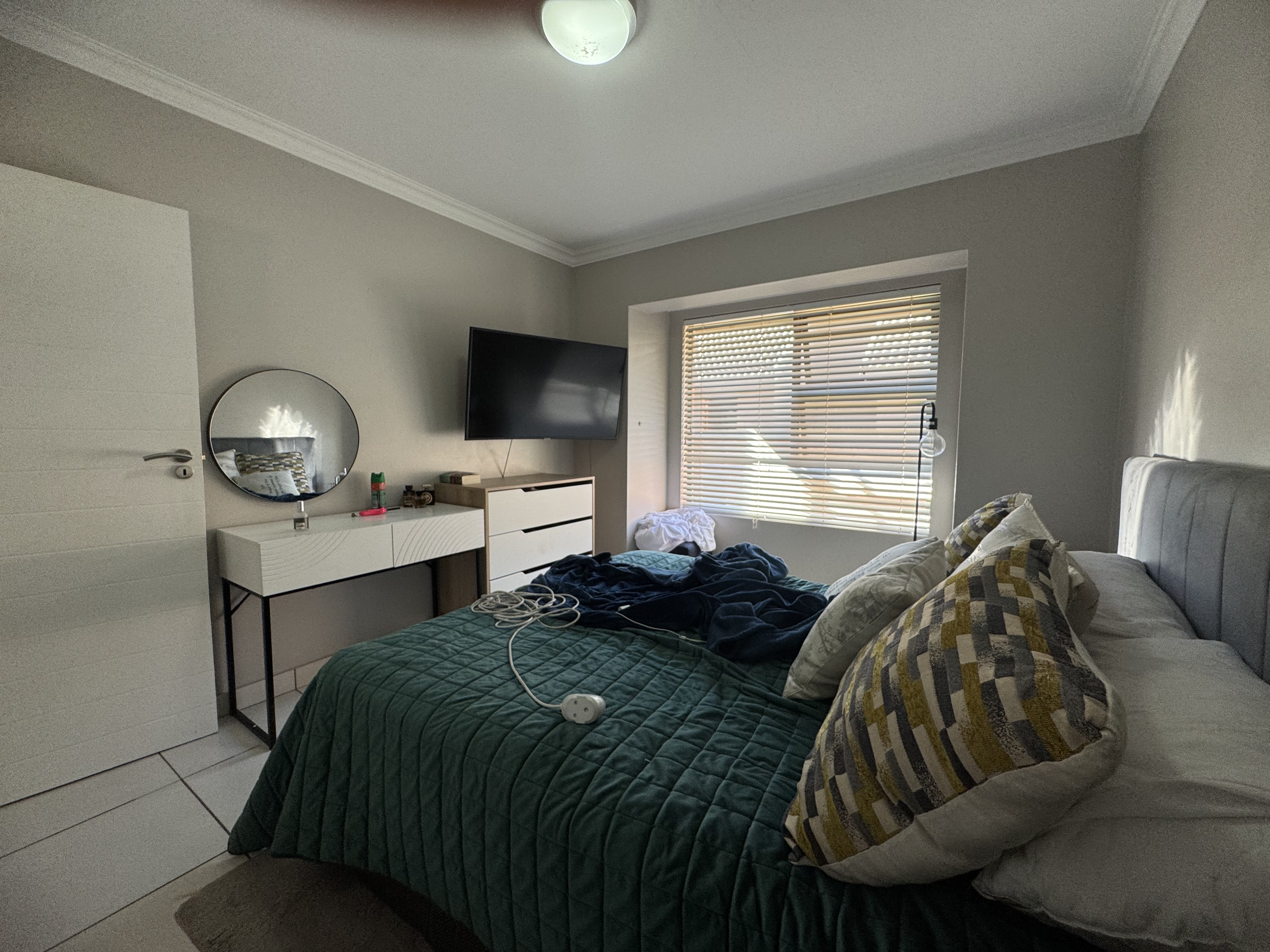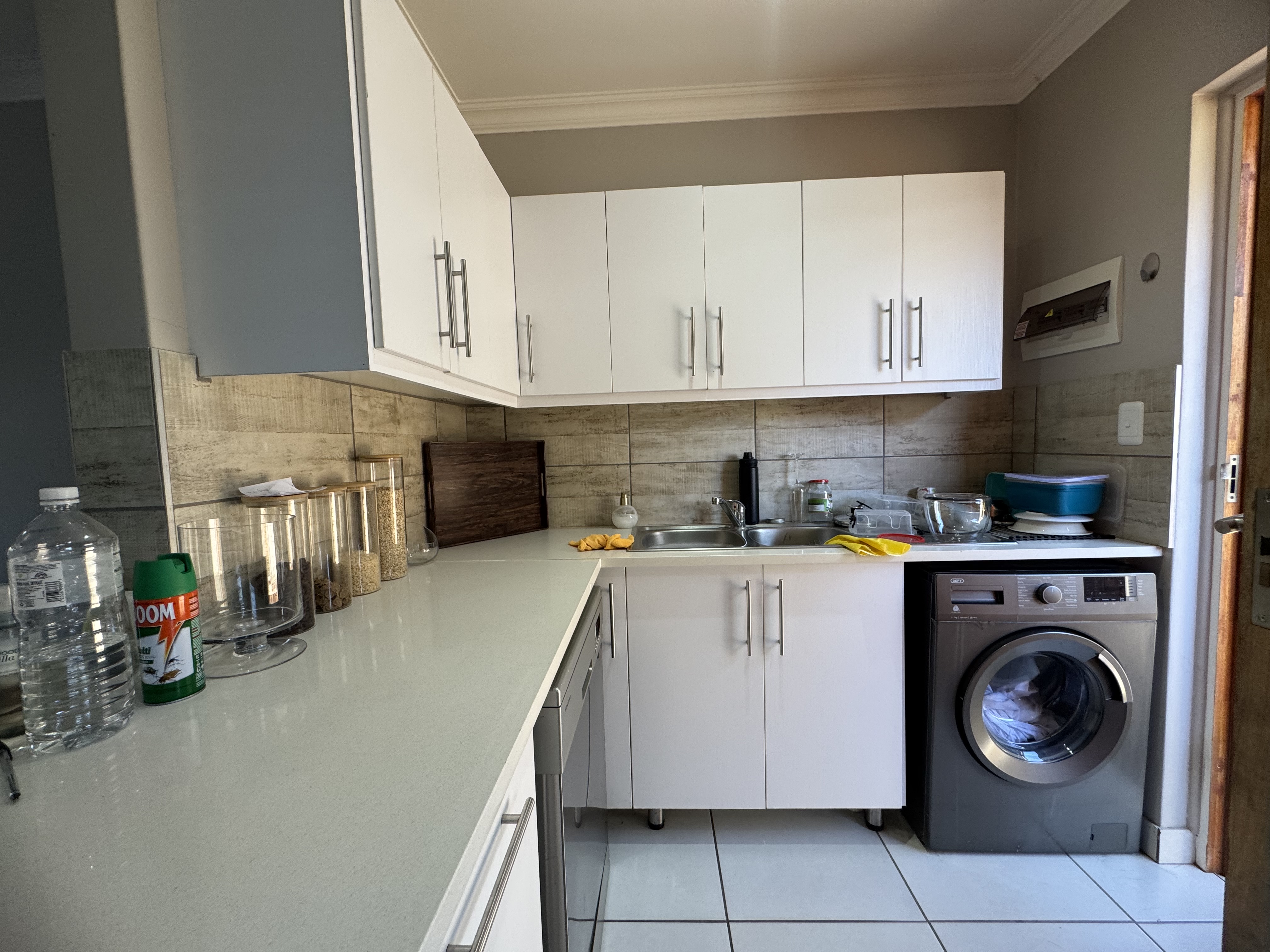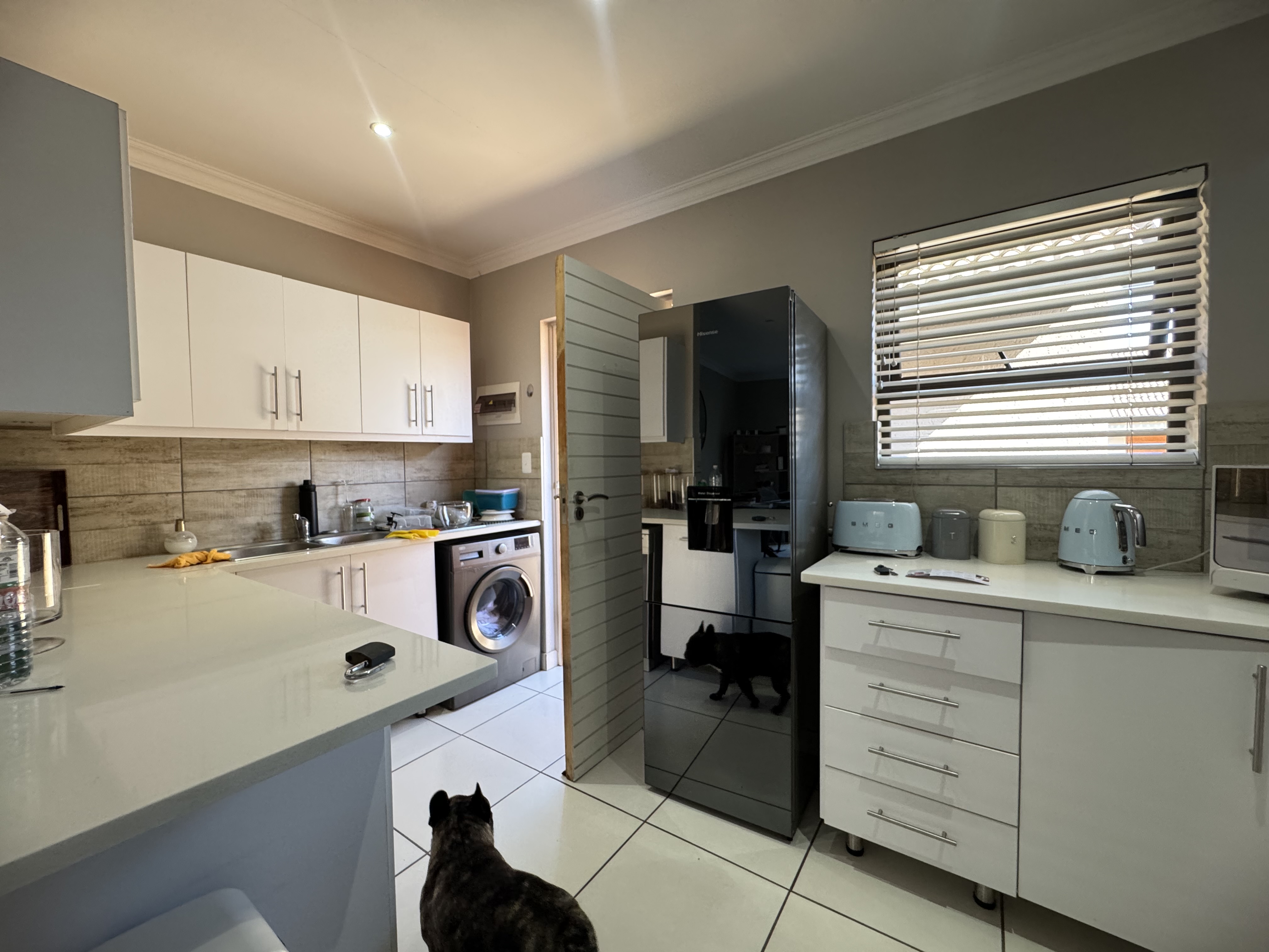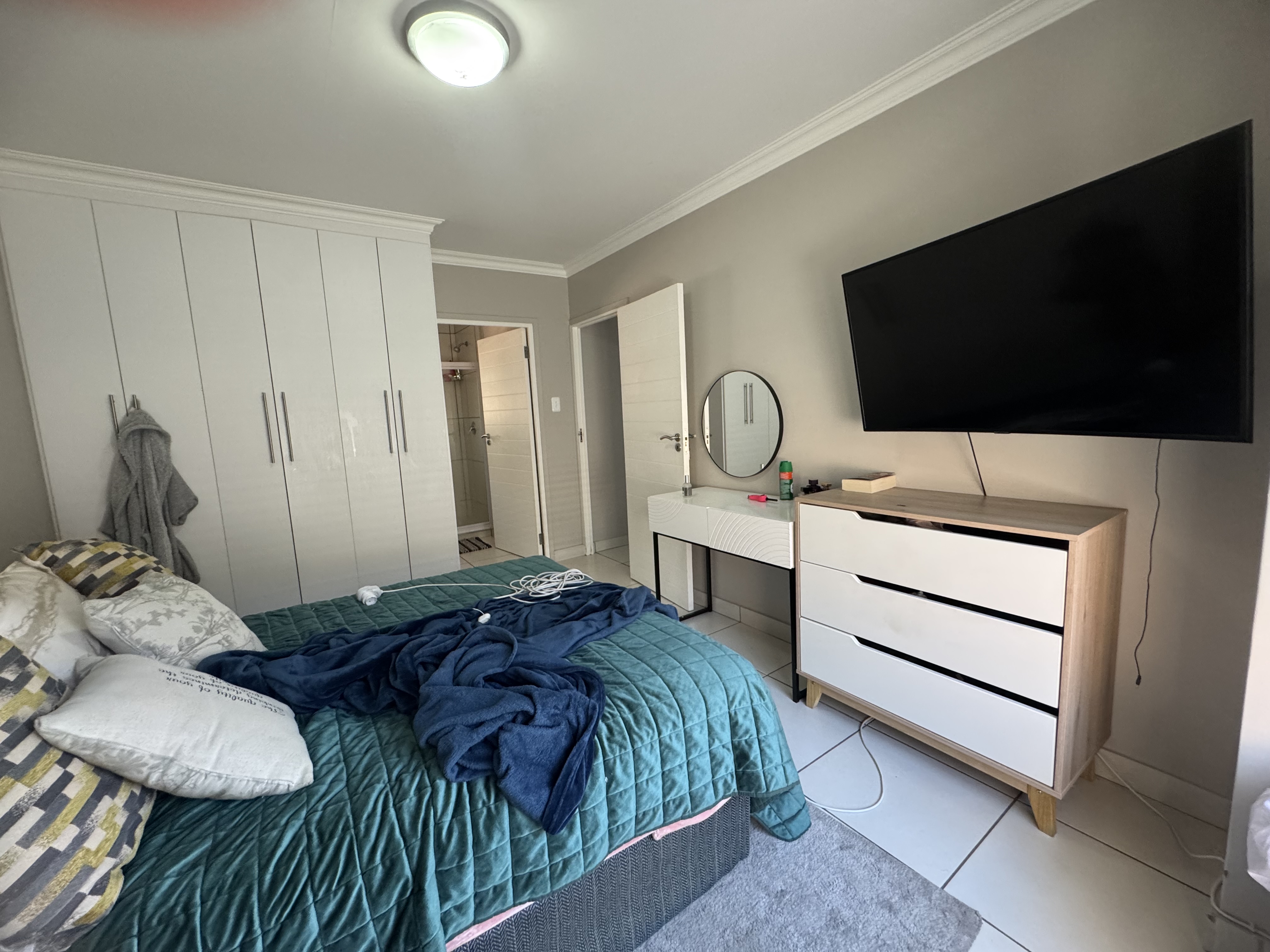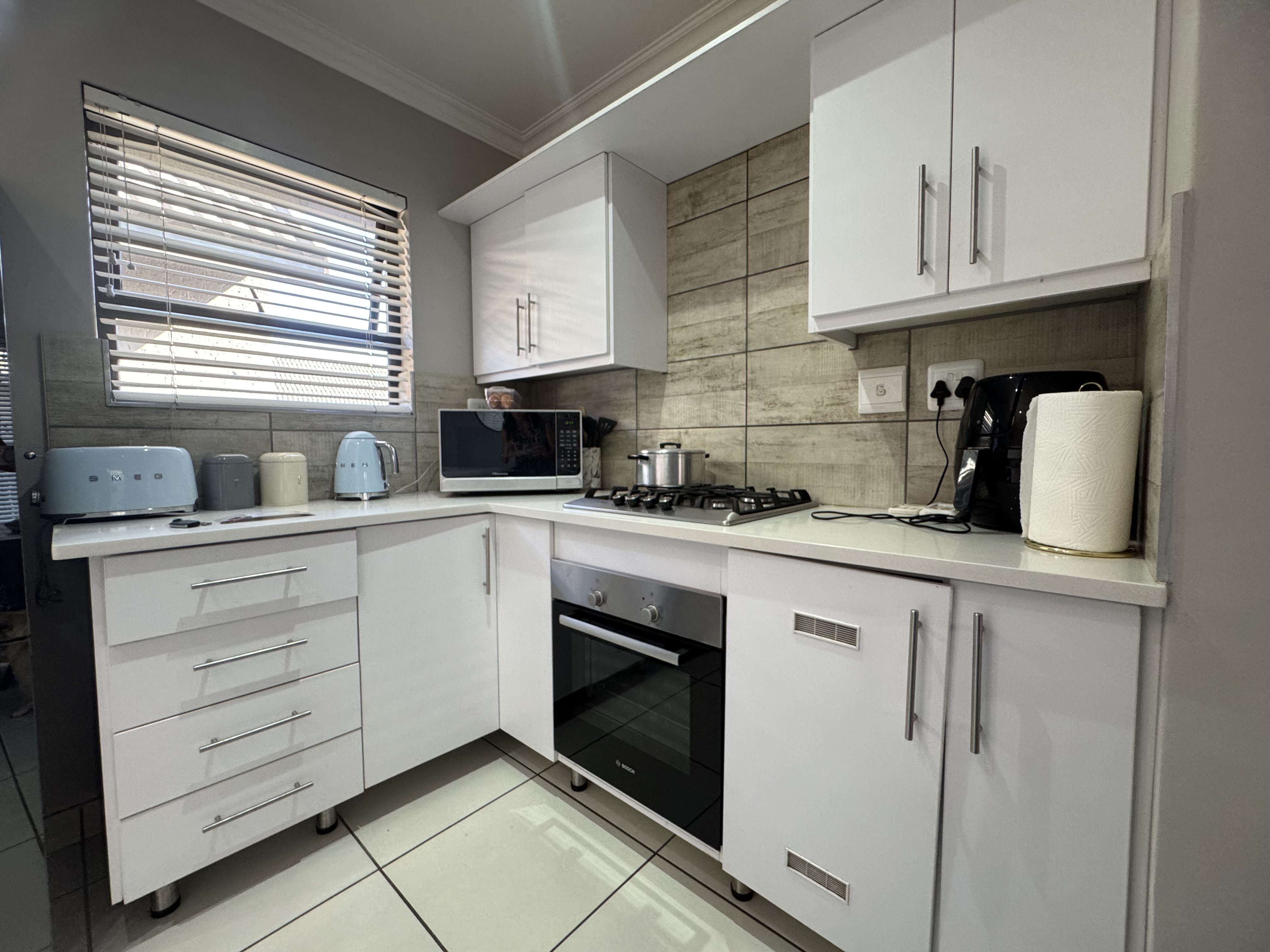 Experience the perfect blend of comfort, security, and modern living in this beautifully designed 2-bedroom home. The open-plan layout seamlessly connects the contemporary kitchen, dining area, and TV room, creating an inviting space ideal for both daily living and entertaining. The kitchen is fitted with a gas stove and electric oven — perfect for culinary enthusiasts.