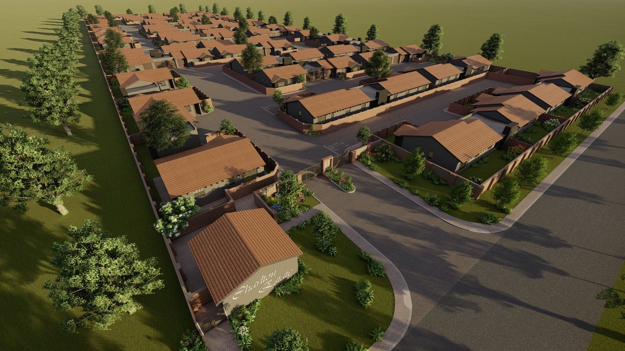 Charlton Estate is a new development in the Heuwelsig area of Bloemfontein, offering modern, secure townhouses for sale. It features both two and three-bedroom units with amenities like open-plan living areas, gas stoves and built-in braai areas. The estate prioritizes security with features such as an electrified perimeter wall, CCTV cameras, and a backup battery system for load shedding.