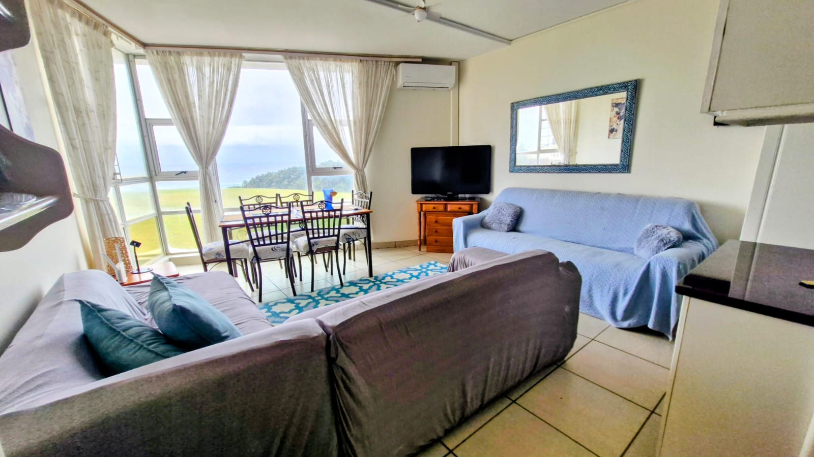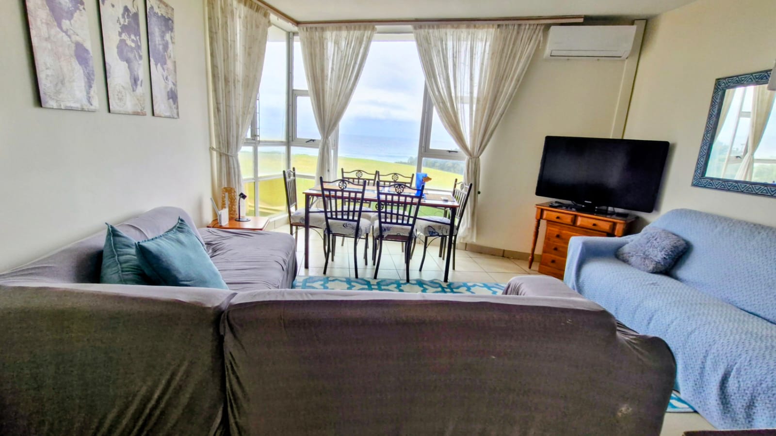 This stunning apartment in the heart of Hibberdene offers everything you need for relaxed coastal living — sold fully furnished and just steps away from the beach! Property Features: Beautiful open-plan kitchen with built-in cupboards, flowing seamlessly into the living and dining area. Air conditioning for year-round comfort. The open-plan living and dining area offers a stunning view of the ocean — perfect for relaxing or entertaining. Inverter system for power convenience. Own security cameras installed for extra peace of mind. Bathrooms: Main bathroom with shower, basin, and toilet. Additional guest toilet with basin. Bedrooms: Bedroom 1: Spacious, featuring two single beds, a bedside table, and built-in cupboards. Main Bedroom: Includes a double bed with two bedside tables, air conditioning, built-in cupboards, and a magnificent ocean view from the window. Communal Features: Sparkling communal swimming pool Well-maintained communal garden Communal braai area and washing line Communal JoJo tank for reliable water backup Beach access for the ultimate seaside lifestyle Location: Situated in beautiful Hibberdene, this apartment is an absolute gem — ideal as a permanent home, holiday getaway, or investment property. Enjoy sea views, convenience, and comfort all in one place!