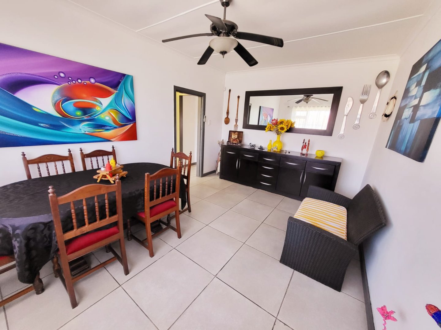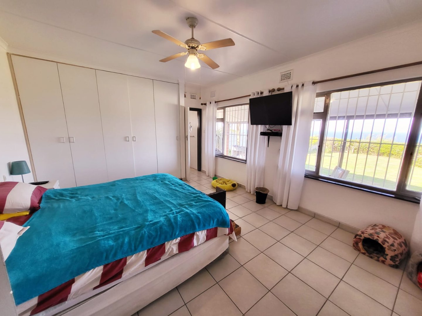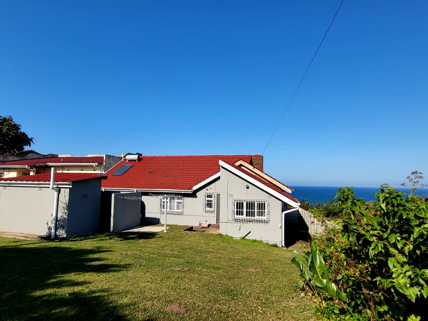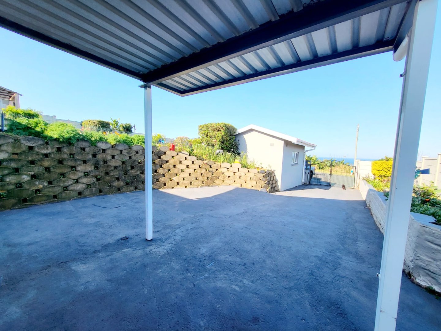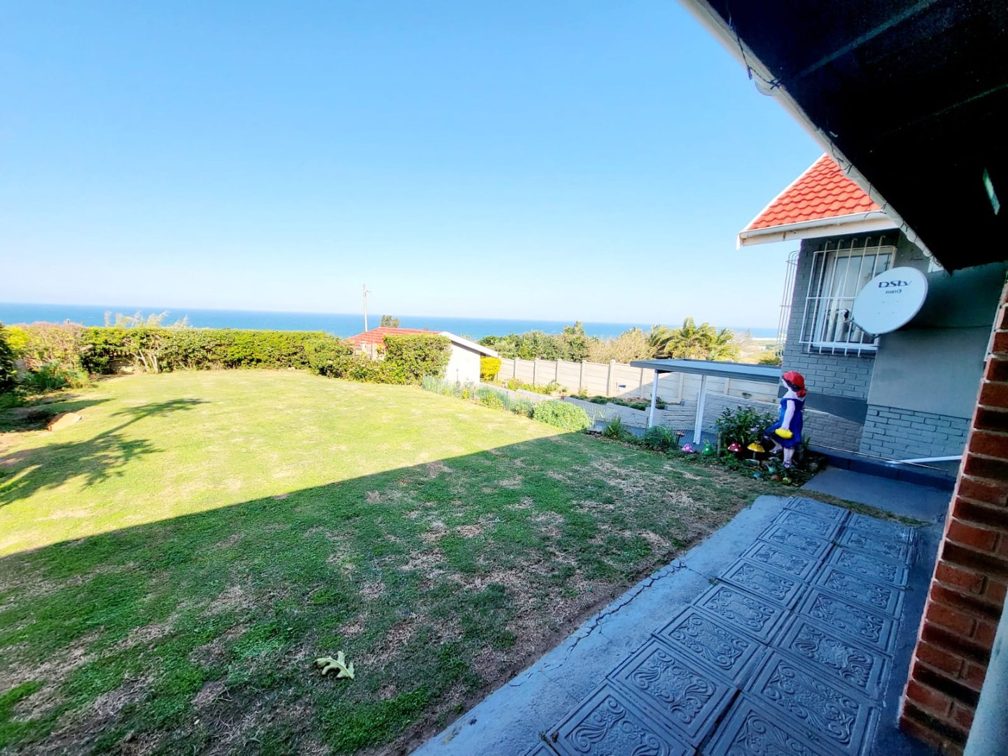 The 3 bedrooms are all large and 2 including the main, have ocean views. The main bedroom has an en-suite bathroom and another full bathroom services the other 2 bedrooms. The entire home is newly tiled and flows right through. The front of the home features a lovely long covered patio with braai, overlooking the garden. There are 2 separate garages plus a carport, the property is fully walled and secure with alarms and beams, there is a solar geyser and 2 water tanks and the garden is neat and well maintained.
