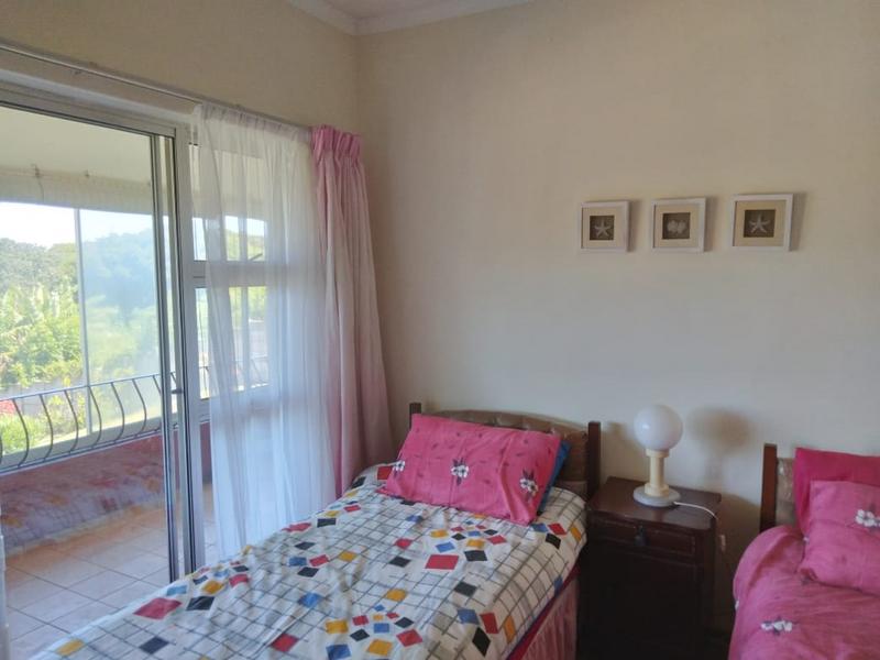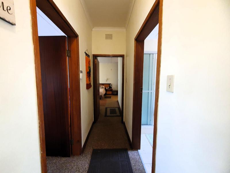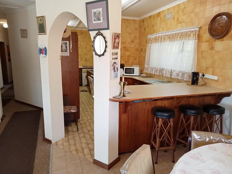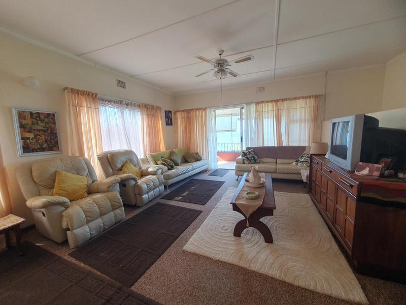 This much-loved home has been in the family for years and is now ready for new owners. .The property is immaculate and has been well-designed. The entrance to the main house is via stairs up to the kitchen which leads to a spacious lounge leading to a covered balcony with panoramic sea view. This balcony area flows through to all bedrooms and lounge where family could meet in the mornings to admire the sea view and enjoy the breeze through opening all sliding windows. The kitchen is fitted with ample cupboards with an eye level oven. There are two generous sized bedrooms with built in cupboards, sharing a bathroom and the main bedroom is en suite with sufficient cupboard space. All with their own private sliding door access to the covered balcony. There is a well designed flat-let attached with separate entrance from the main house by a door with spacious kitchen, bedroom and bathroom. Which could be used as an income generator, flat or office. Ample cemented parking is available or in the single garage. The garden is beautiful and well-maintained and there is place to add a swimming pool. This property is only a walking distance to the main blue flag beach and shops. Call me now to view.