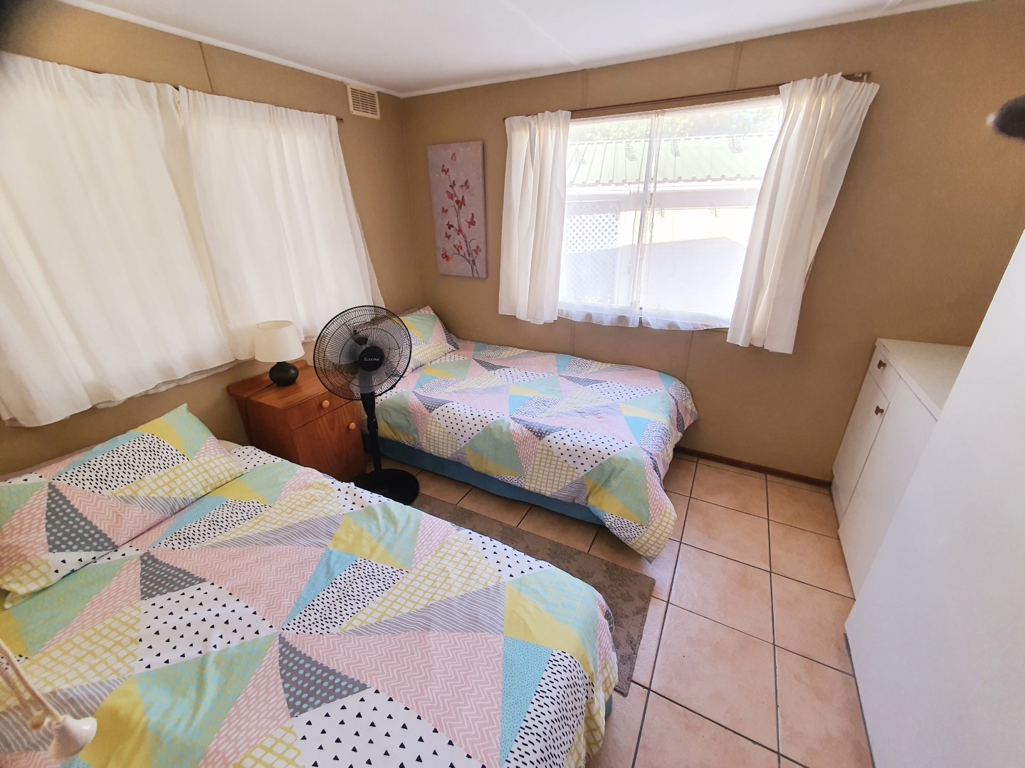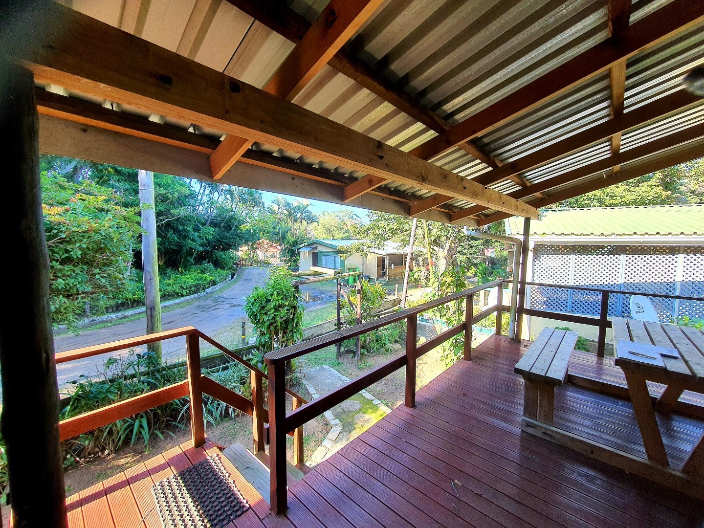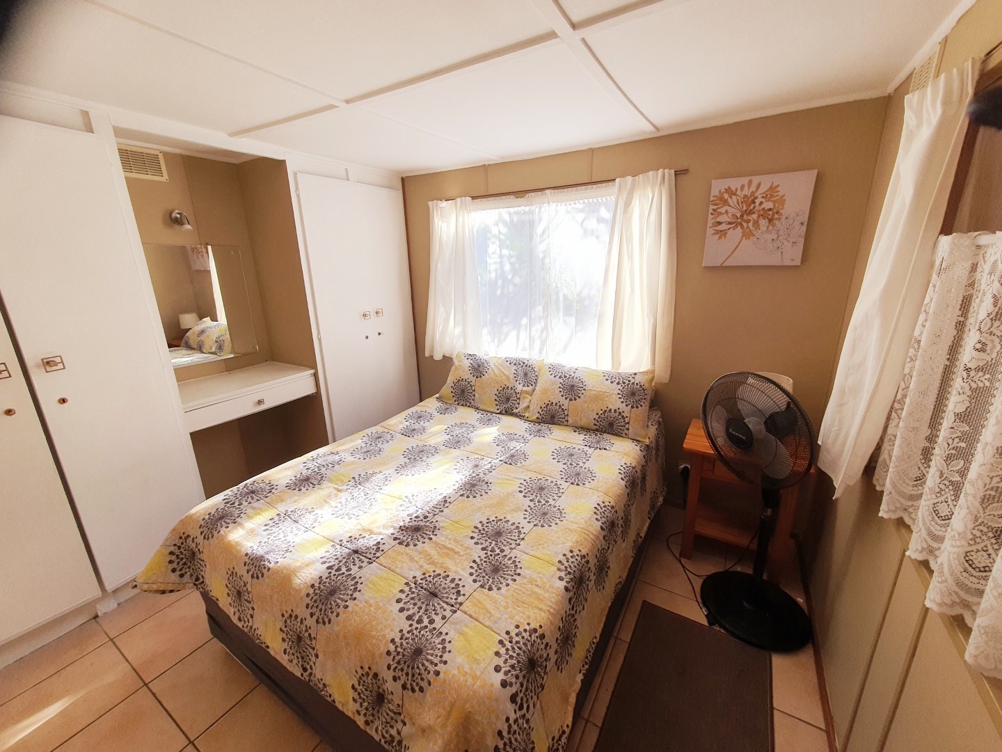 2 bedroom furnished cottage with one bathroom and lovely open plan lounge, which opens to covered deck, perfect for entertaining, dining room and large kitchen which leads to the back enclosed patio, which can be used for an extra bedroom, laundry or hobby room. This opens to a covered patio which overlooks the large back garden area with carport.