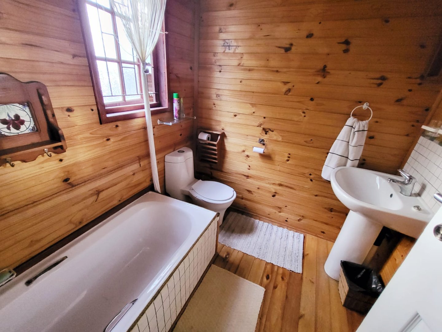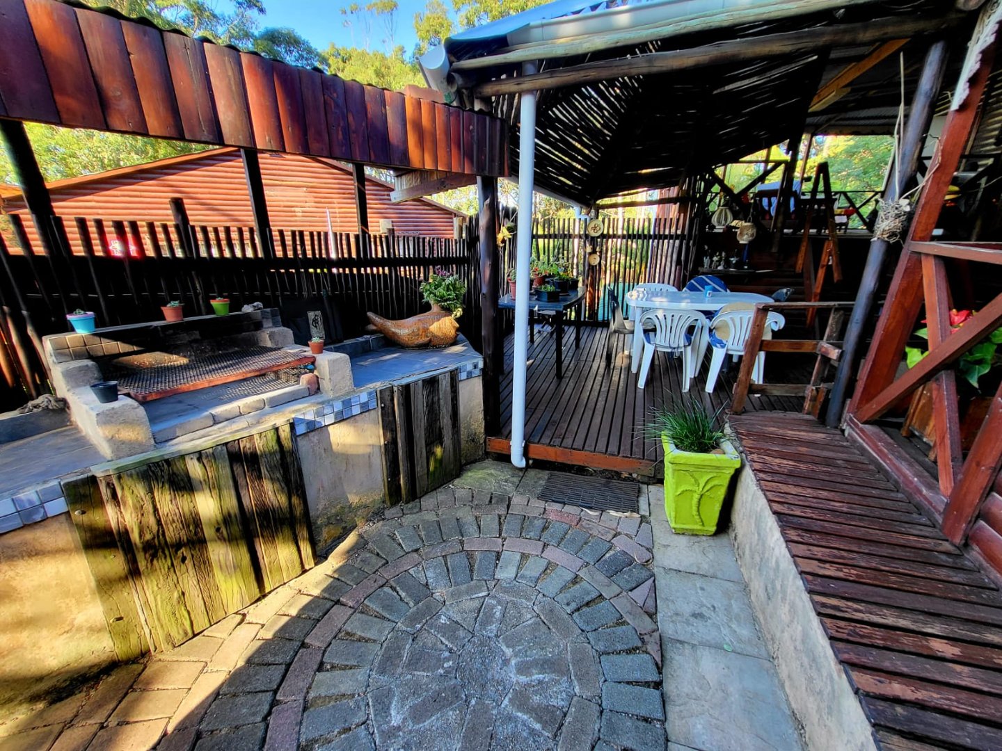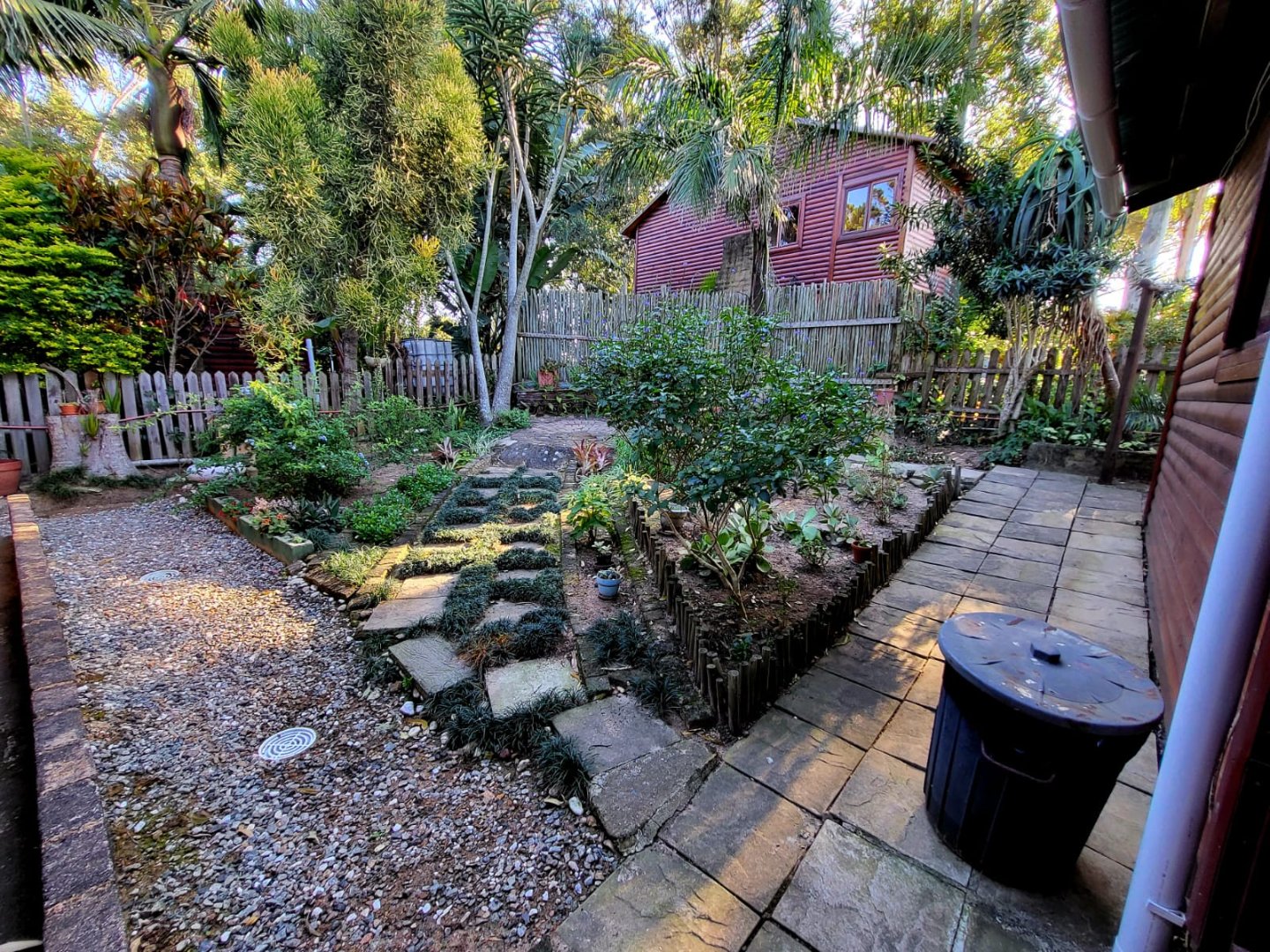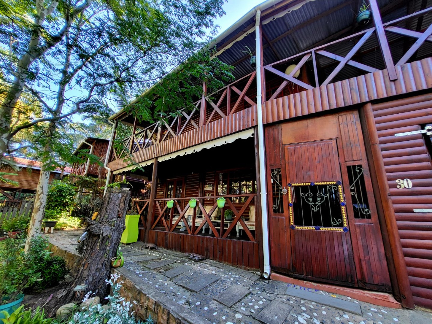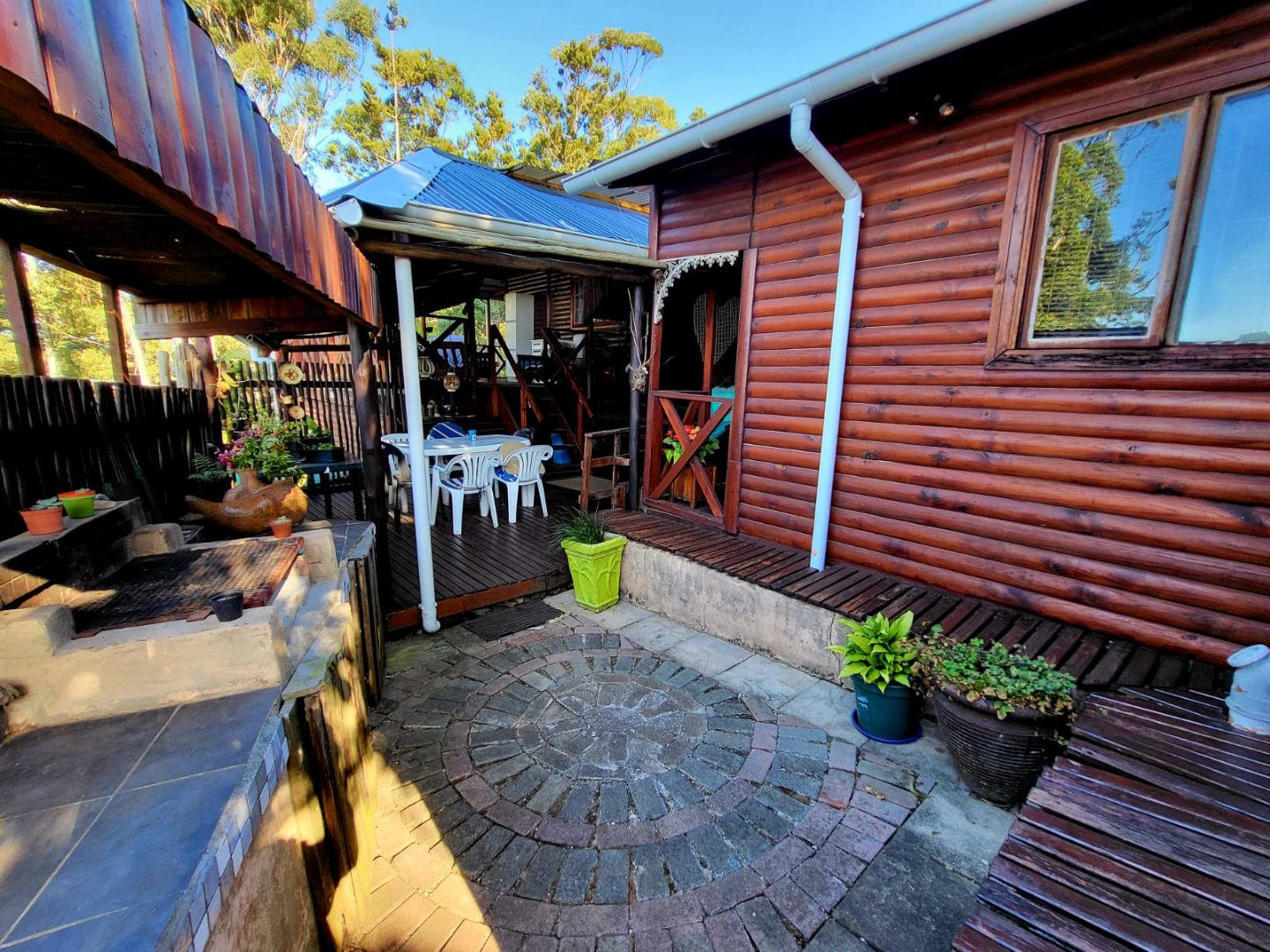 Consisting of a kitchen with laundry, built in cupboards and gas stove/oven, open plan to dining room & lounge with doors leading to a covered patio with beautiful established garden and forest surroundings. Take the wooden stairs up to the 3 bedrooms, 2 bedrooms open to a covered balcony with beautiful views. There are 2 bathrooms, 1 being en-suite.