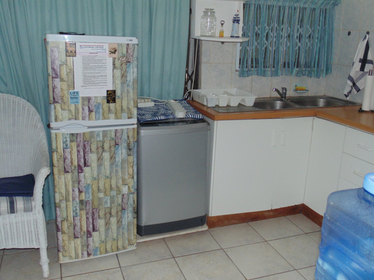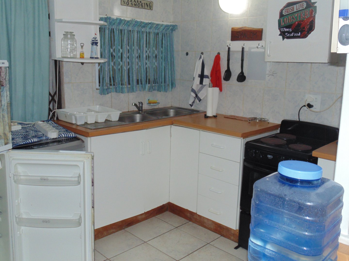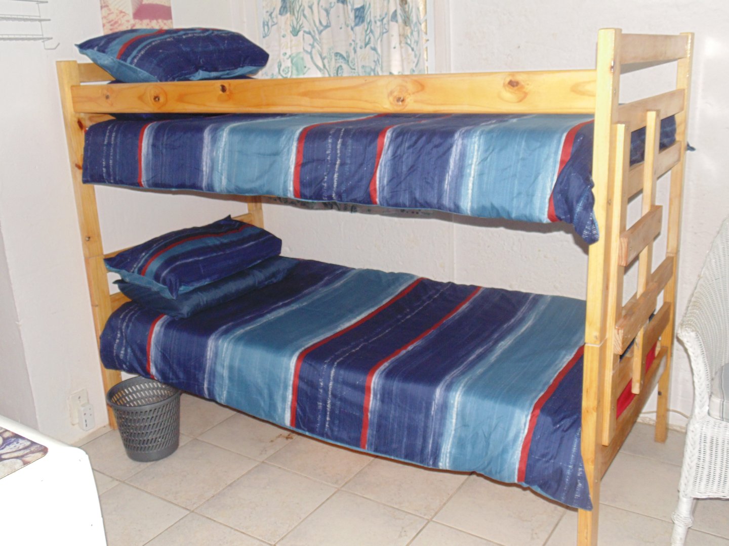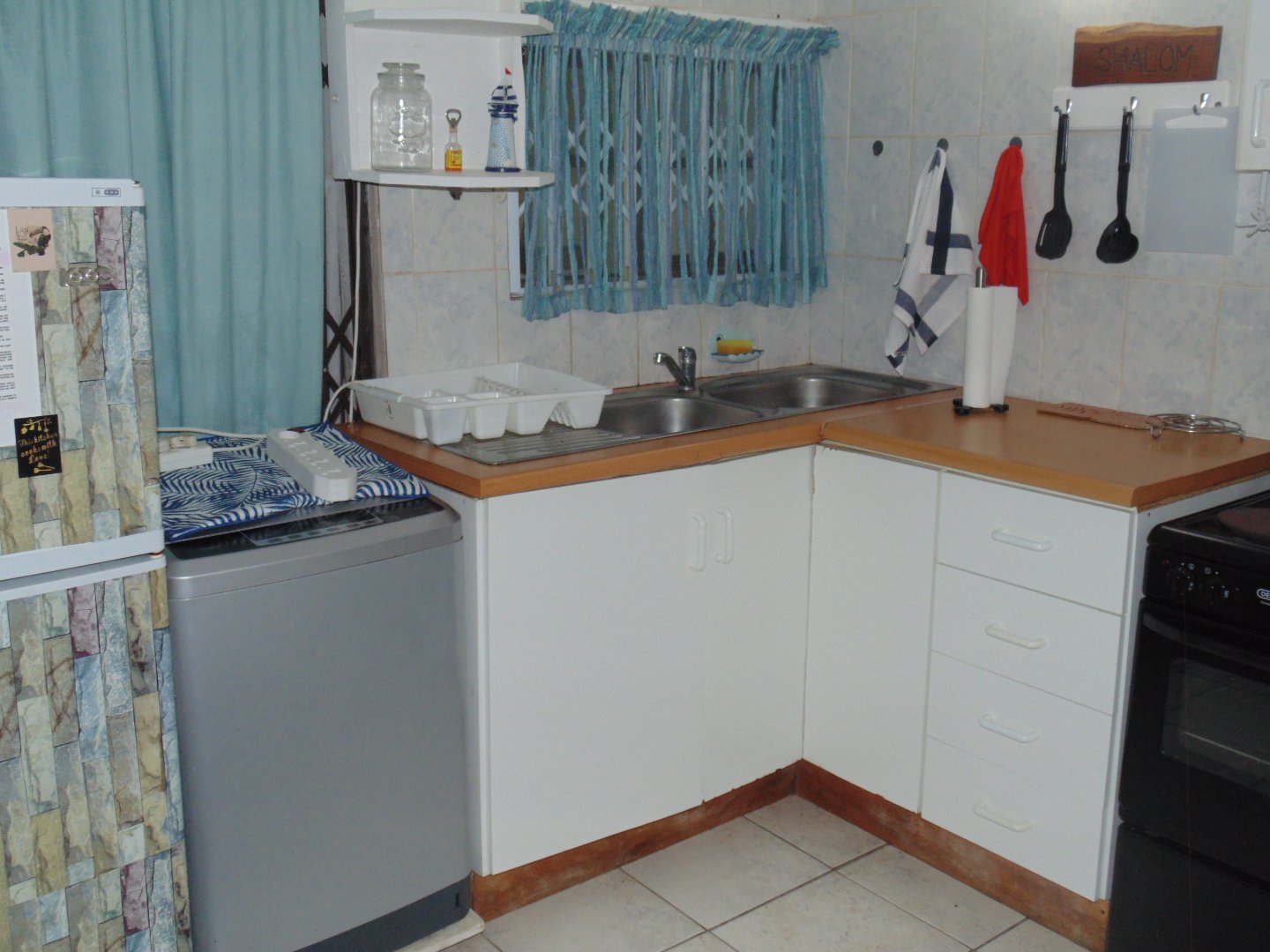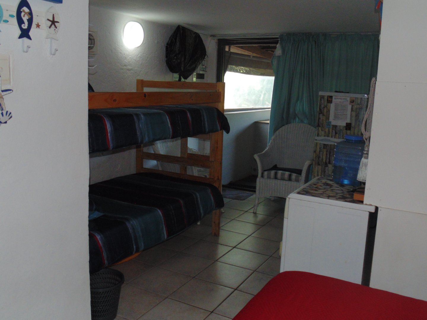 Entertaining area with a Braai neatly tiled. Kitchen with Build in cupboard, bedroom, Queen size Bed, Bathroom with Build in Cupboards and double banker beds. Enough space to move around in the unit. Bathroom with Shower, Toilet and Basin.