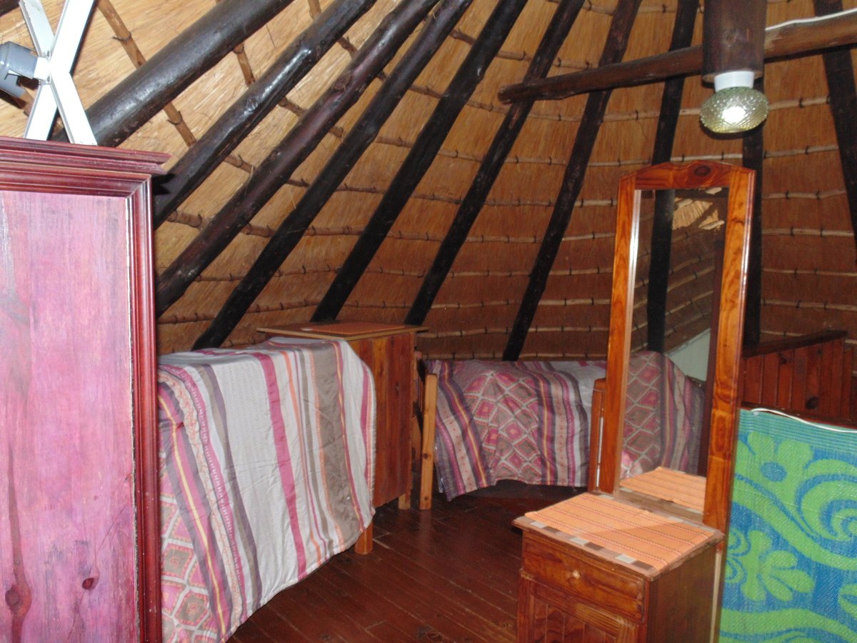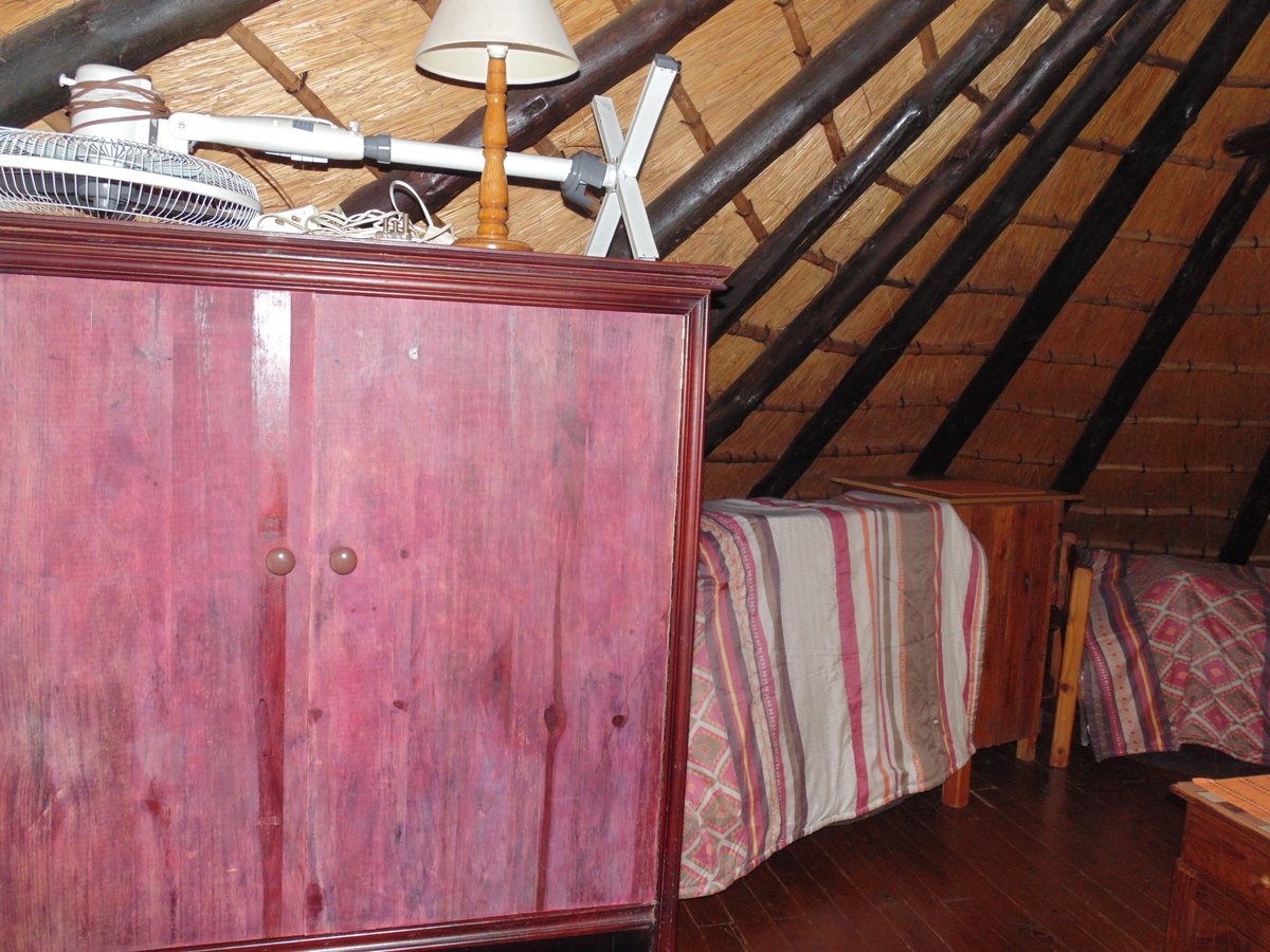 Main Bedrooms downstairs with build in cupboards and a second room which can be used as a family TV room or bedroom with no build in cupboards. Open plan kitchen and a bathroom with shower, toilet and basin. Upstairs is a loft which can be used for a third bedroom or storage space. The roof has been re-thatched and unit has been painted in 2023.