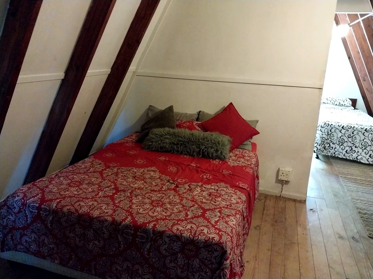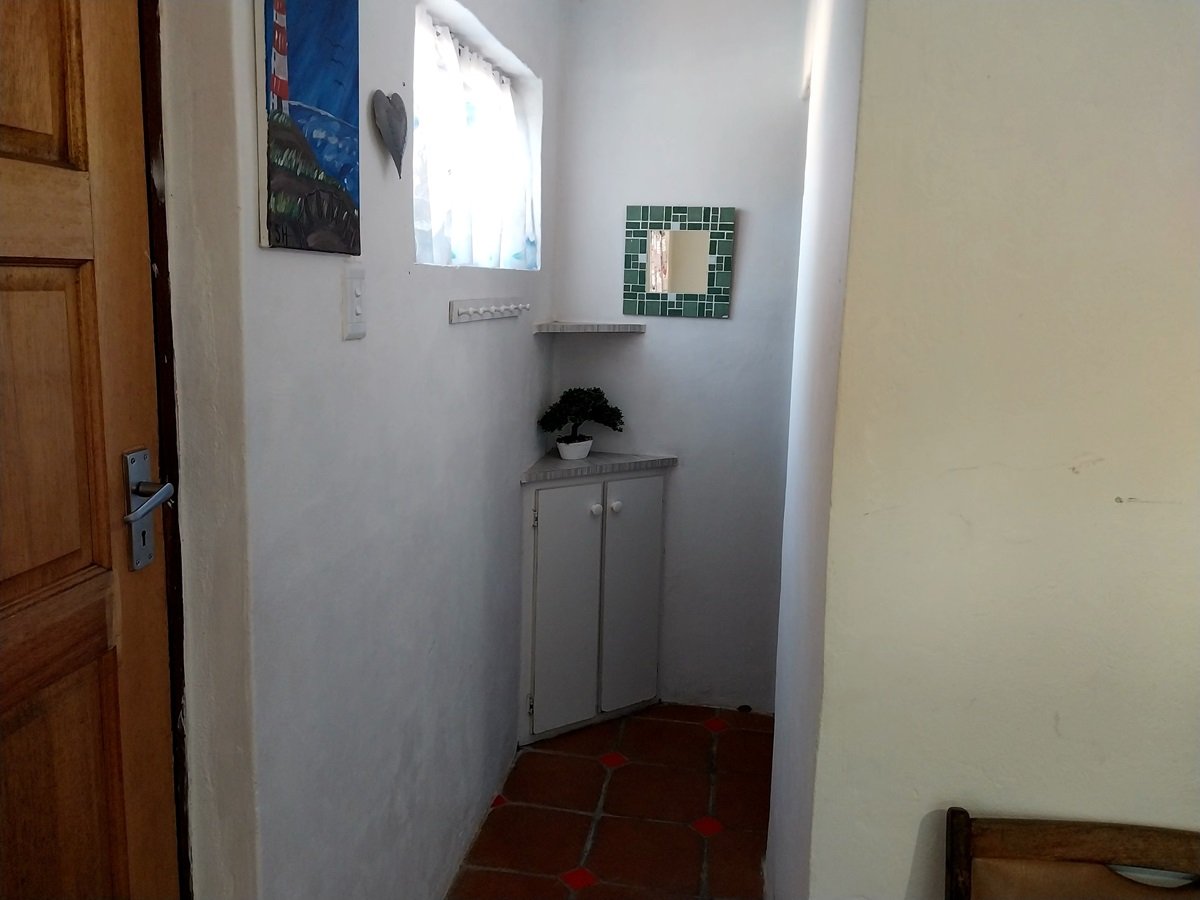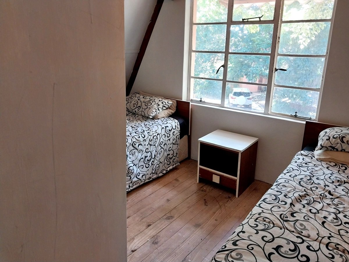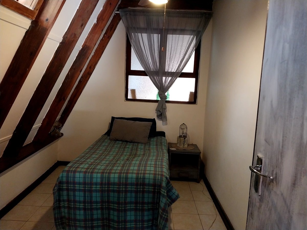 This A-Frame unit is situated in well maintained security complex. With a little TLC you could change this unit into a dream of your choice. There is one bedroom downstairs, Lounge, Bathroom with Bath, toilet and basin before you enter the kitchen. Large kitchen where you have enough space for a table and chairs with a backdoor that lead to the outside area of the unit. 2nd Bathroom with Shower, Toilet and Basin next to the kitchen. 2 Bedrooms upstairs with the deck by the main bedroom. Parking next to the unit with the Communal Swimming pool next to this unit. Very quiet area. The complex got Electric Fence, Security and garden services. Access to the premises with a remote.