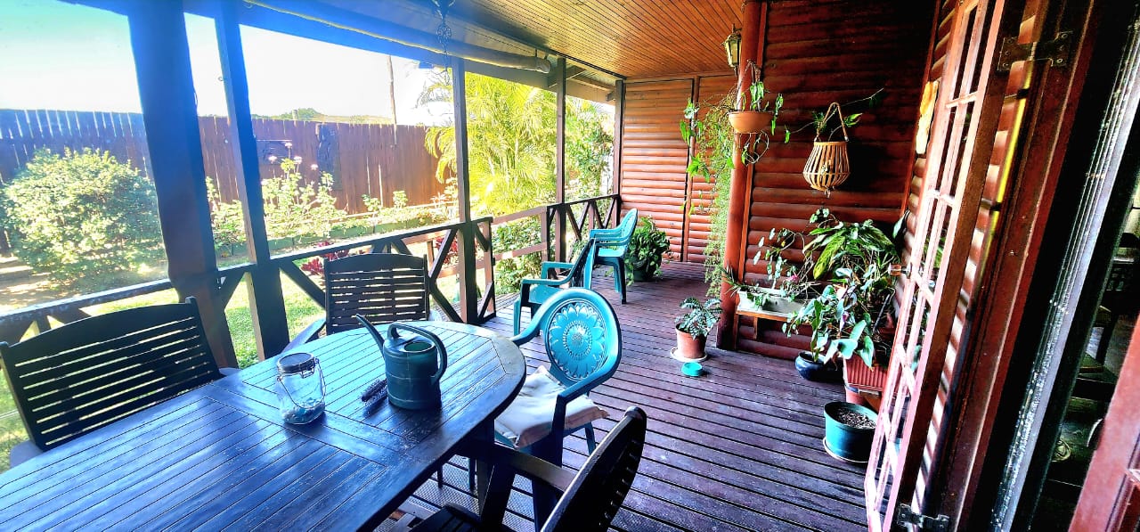 Set in a secure estate in Hibberdene, only 1,2km from the village centre and blue flag beach, with lifeguards, beachfront restaurant and fun park and ski boat launching site. This cosey and quaint log home has been well maintained and consists of an open plan kitchen, (eye level oven and electric hob, scullery and laundry) dining room and lounge, with french doors to the front covered patio (dining room has french doors as well) Off the dining room is a TV room that can easily be converted into a bedroom. The main bedroom is large, has plenty of built in closets and has an ensuite bathroom with shower, toilet and double vanity. The other bedroom is well sized and adjacent is the family bathroom consisting of a bath, basin and toilet. The front patio is large and on the one side is a conservancy and the opposite side is a handy store room. Off the kitchen is a deck, a nice space to enjoy the early morning cup of coffee while listening to the birds. Under the home is a single carport with a shower room, an open space suitable for a workshop or hobby room, plus 2 store rooms as well. There is also a private sitting area under the deck, plus another 2 storage rooms (this bottom area could be changed into a comfortable flat, for the visitors or maybe even holiday rentals. The gardens are secured with picket fencing, well maintained with some lovely shrubs and trees, large lawned areas for the children and dogs to romp around, then to top it, an attractive pool and entertainment area with a lapa. There is an inverter included which can run the essential lighting and TV/PC during power outages. This home is stunning and solid, the perfect location for retirement or permanent living, or even as an income generating holiday home. Please call ANYTIME to chat further and secure a viewing! Matriarch Real Estate powered by Mandated Property Group (Pty)Ltd